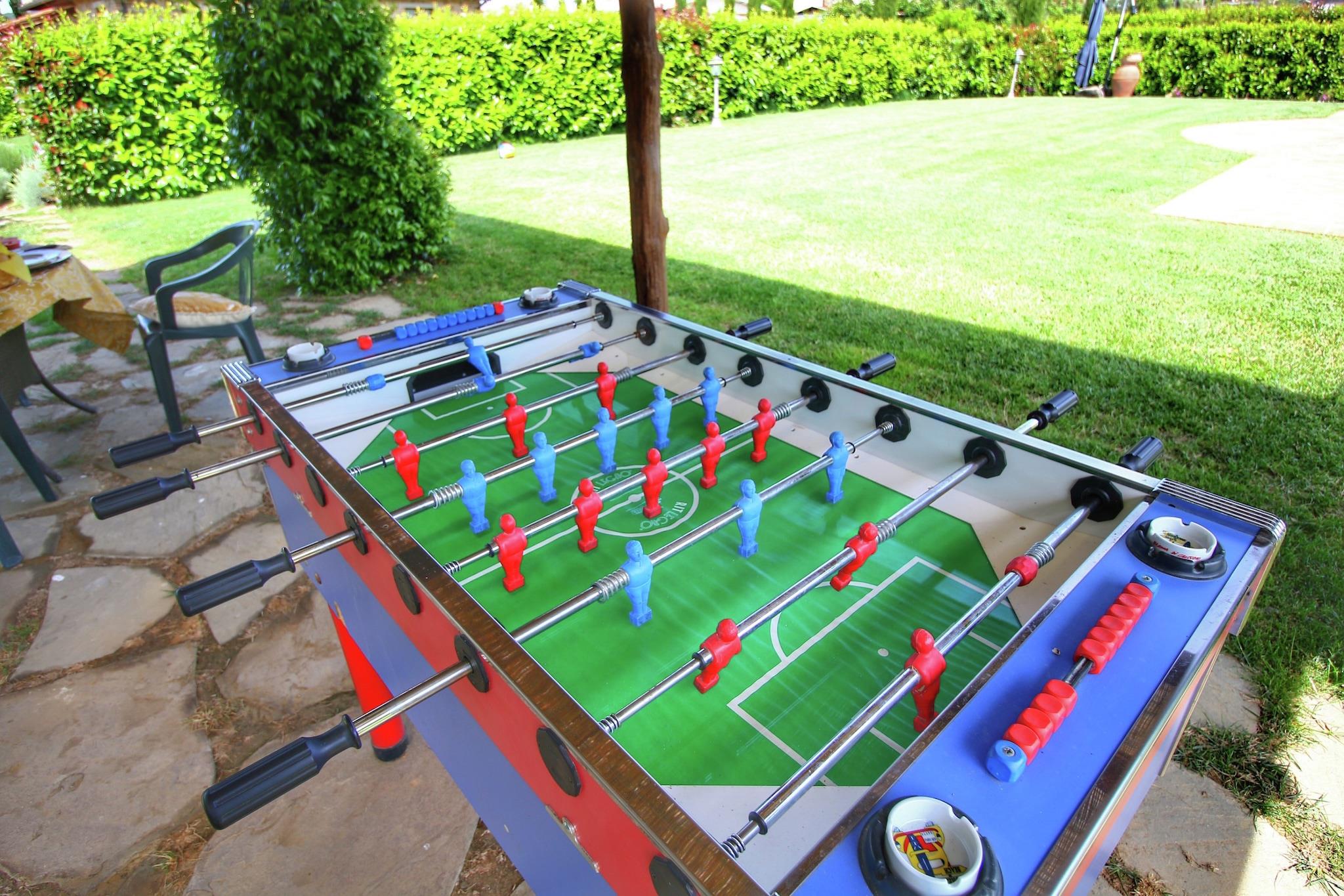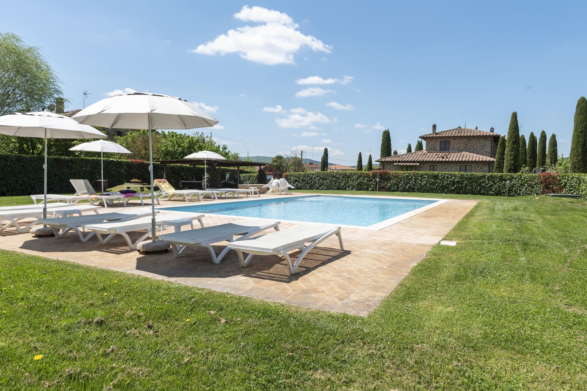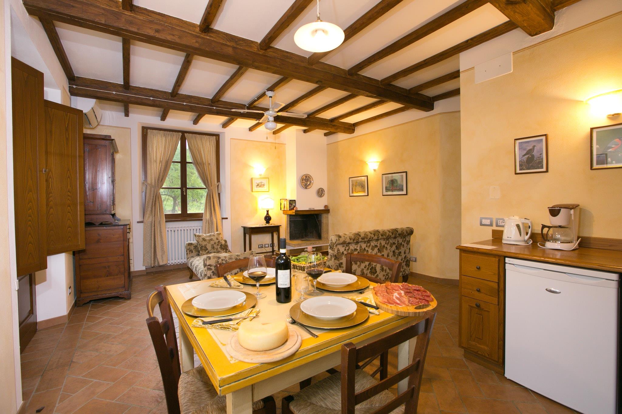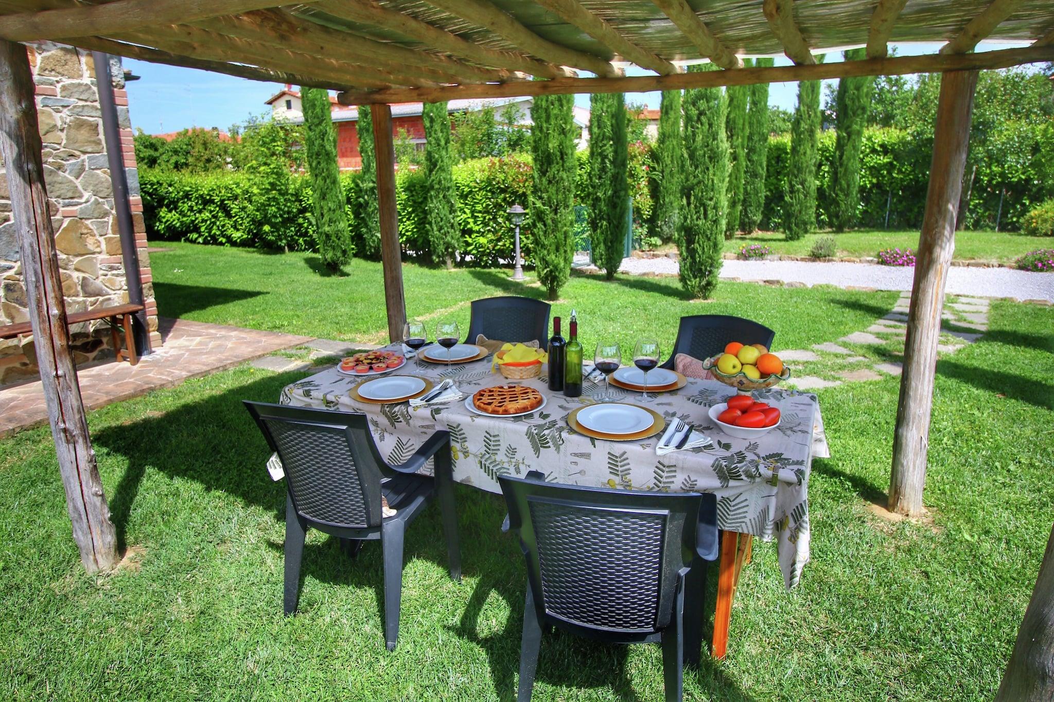 Dieses Landhausapartment in Lucignano bietet ein stilvolles Ambiente für einen entspannten Familienurlaub und ist der ideale Ausgangspunkt, um die Kunst und Natur der Toskana zu entdecken. Nur 1 km vom Stadtzentrum mit seinen eleganten Restaurants entfernt, eignet sich die Unterkunft hervorragend für Tagesausflüge nach Florenz, Siena und Perugia. Die Residenz wurde mit dem -Preis für exzellente Gastfreundschaft und konstant hohe Gästebewertungen ausgezeichnet und garantiert so einen erstklassigen Service für alle Gäste. Das Apartment ist von einem weitläufigen Garten mit Obstbäumen umgeben und verfügt über einen privaten, teilweise umzäunten Außenbereich mit einem Grillplatz, der täglich von den Gastgebern gereinigt wird. Gäste können die ruhige Atmosphäre im Pavillon genießen oder es sich im Wohnzimmer am stimmungsvollen Kamin gemütlich machen. Die Küche ist komplett ausgestattet mit modernen Annehmlichkeiten wie Backofen und Geschirrspüler. Für Familien mit Kindern stehen ein Kinderbett und ein Hochstuhl bereit. Ab dem 1. Juni haben Gäste aller vier Unterkünfte Zugang zum gemeinsamen Salzwasserpool, der an warmen Sommertagen eine willkommene Erfrischung bietet. Um den Aufenthalt noch angenehmer zu gestalten, bietet der Hausbesitzer personalisierte Kochkurse von drei bis vier Stunden an, in denen Gäste klassische italienische Rezepte wie handgemachte Pizza oder traditionelle Lasagne erlernen können. Diese intensiven Erlebnisse hinterlassen einen bleibenden Eindruck, und viele Gäste teilen noch lange nach ihrer Rückkehr Fotos ihrer gelungenen Kochkünste. Ob Sie nun eine Partie Tischfußball spielen oder die nahegelegene mittelalterliche Geschichte erkunden – dieses preisgekrönte Refugium bietet einen authentischen und unvergesslichen Einblick in die toskanische Lebensart.