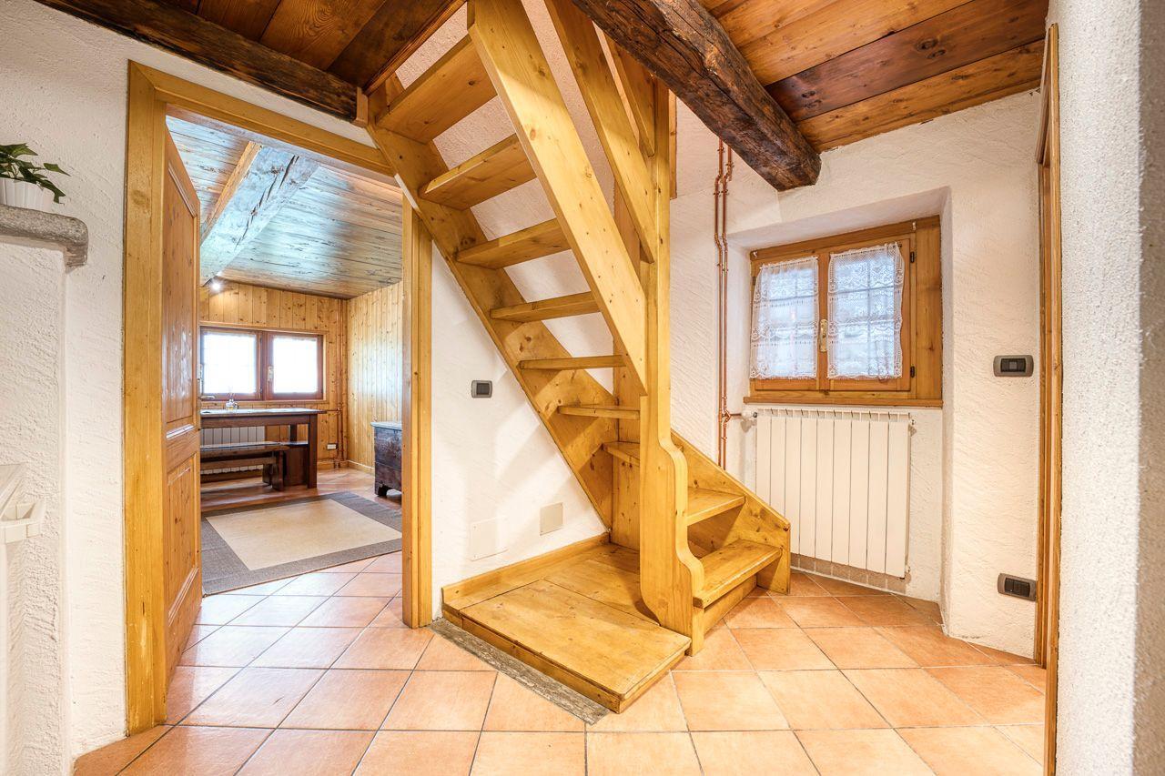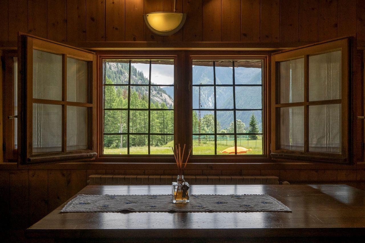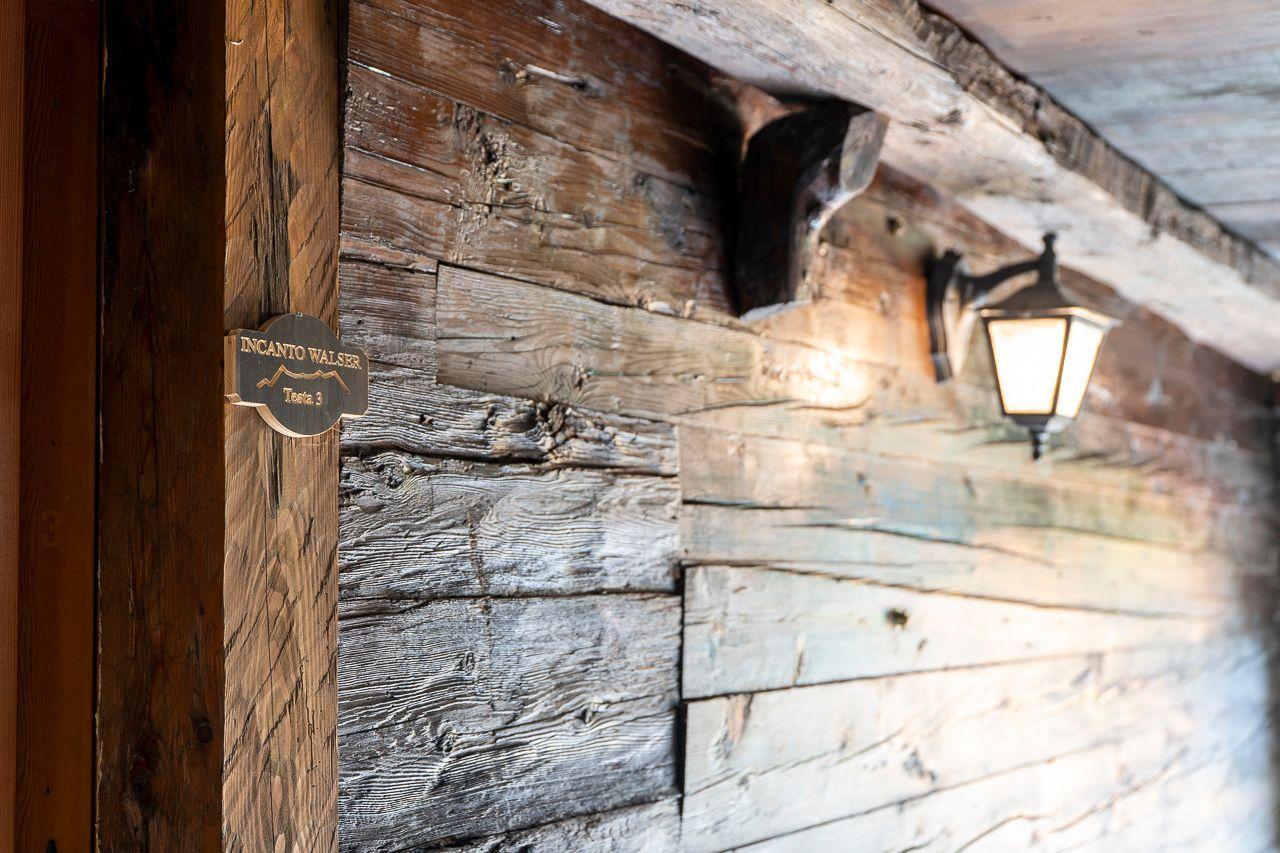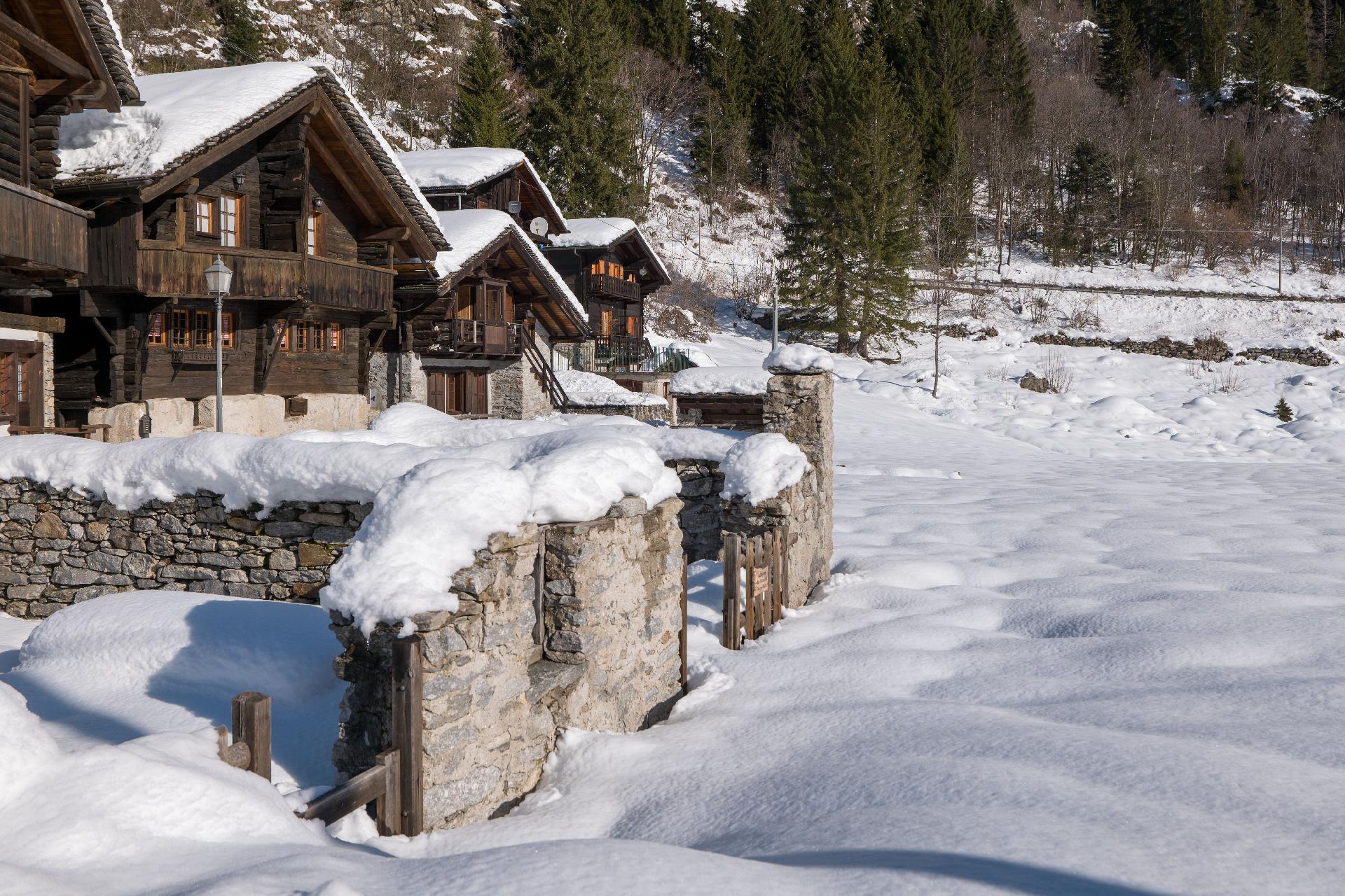 Typische Walser-Architektur: Der untere Teil des Gebäudes ist aus Stein (er wurde normalerweise als Stall für Tiere und/oder als Lagerraum genutzt), während der obere Teil, der aus Holz gebaut wurde, als richtiges Wohnhaus diente.