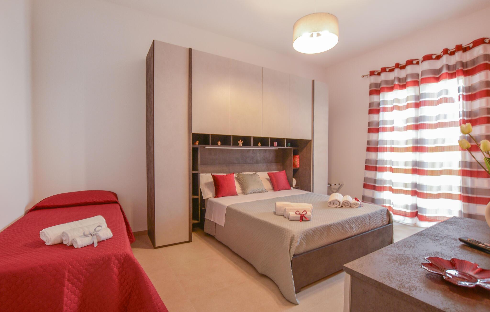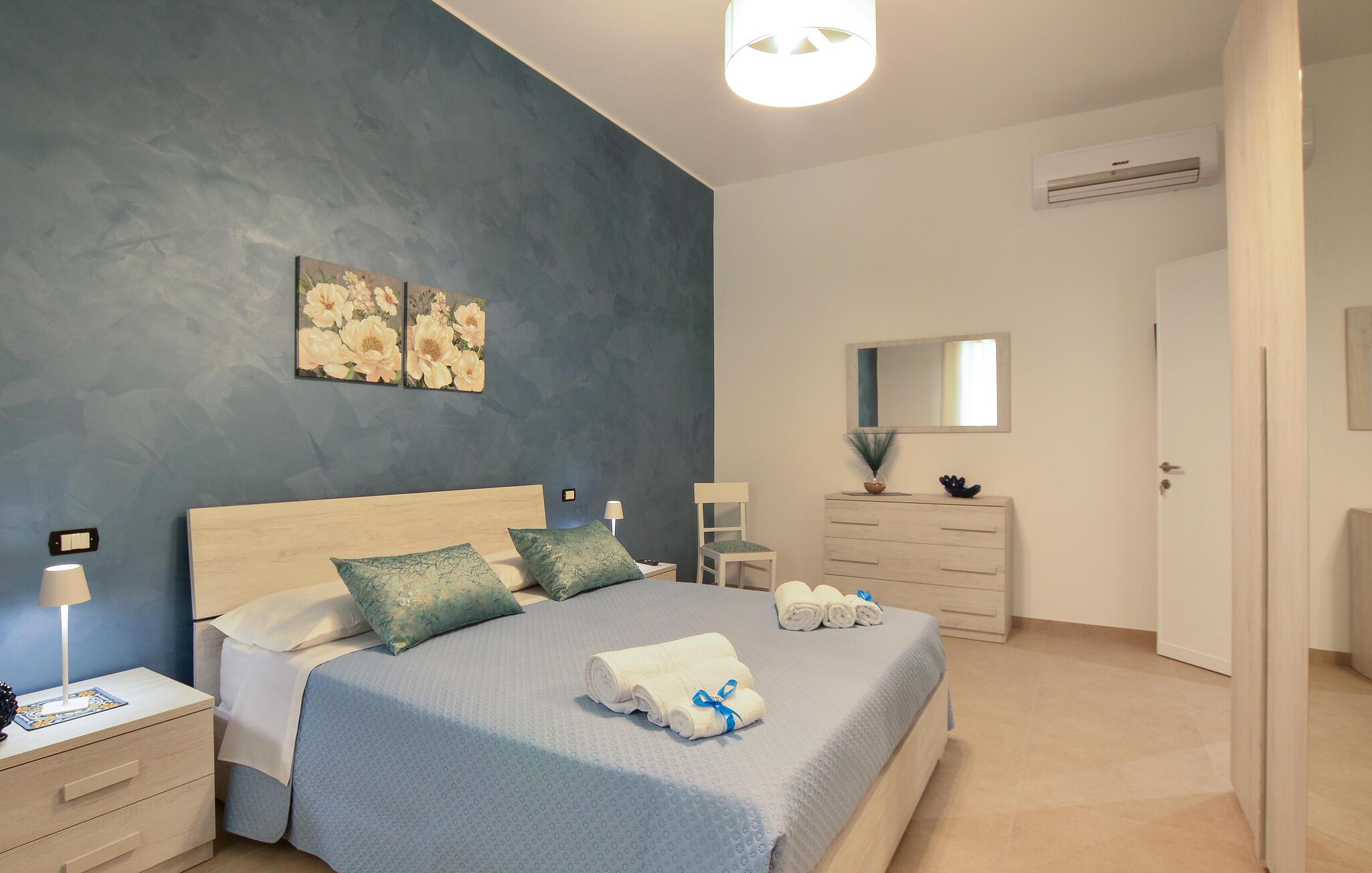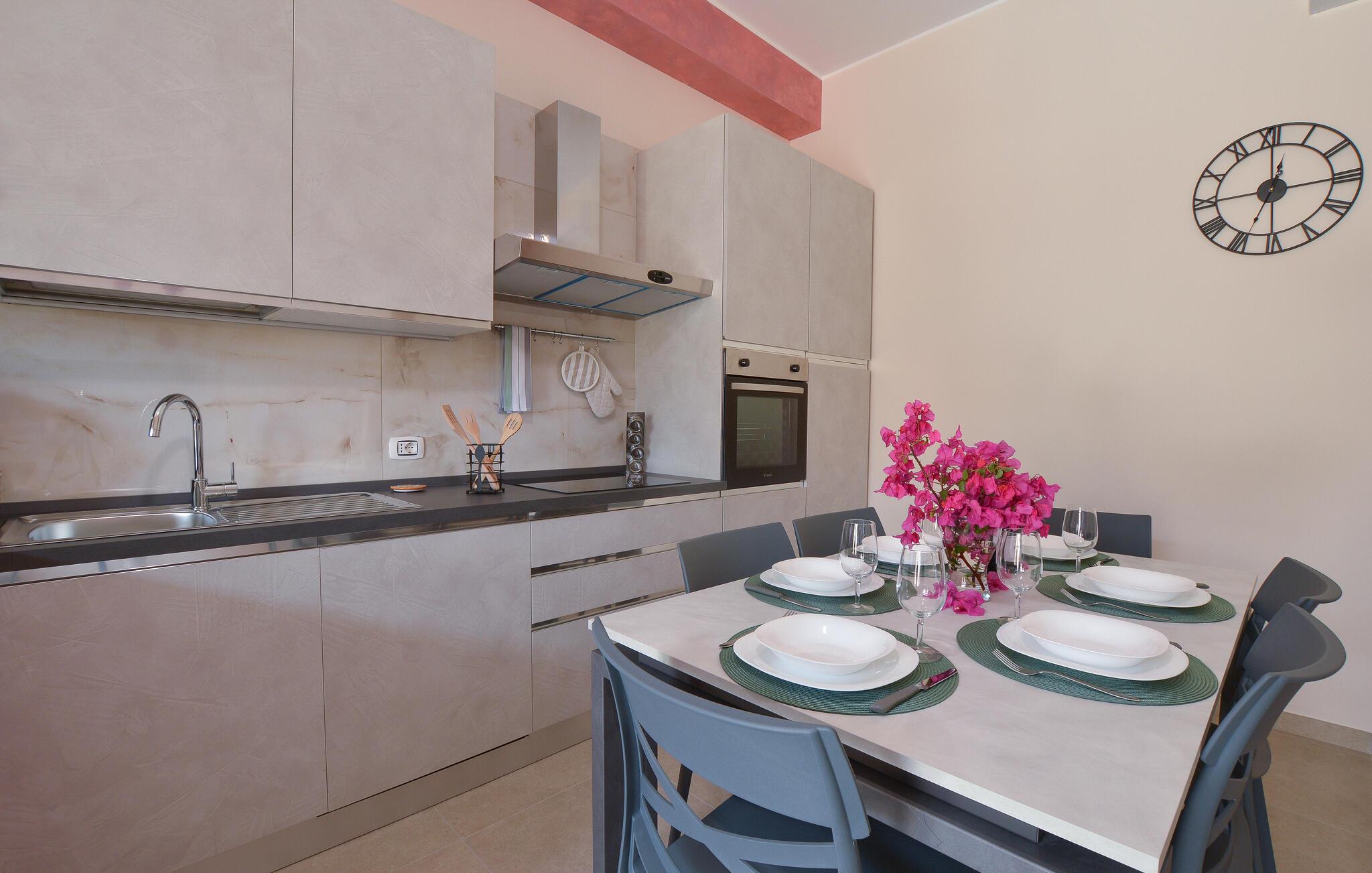 Dieses charmante Ferienhaus in Menfi lädt Sie ein, Ihre Auszeit in stilvollem Ambiente zu genießen. Die geschmackvoll eingerichteten Innenräume, in weichen Farben gehalten, vermitteln sofort ein Gefühl von Geborgenheit. Mit viel Liebe zum Detail dekoriert, bietet das Haus eine Atmosphäre, in der Sie sich rundum wohlfühlen. Es ist der perfekter Rückzugsort, um den Alltag hinter sich zu lassen und unbeschwerte Urlaubstage zu erleben. Kochen Sie gemeinsam oder genießen Sie gemeinsam die moderne Einrichtung.