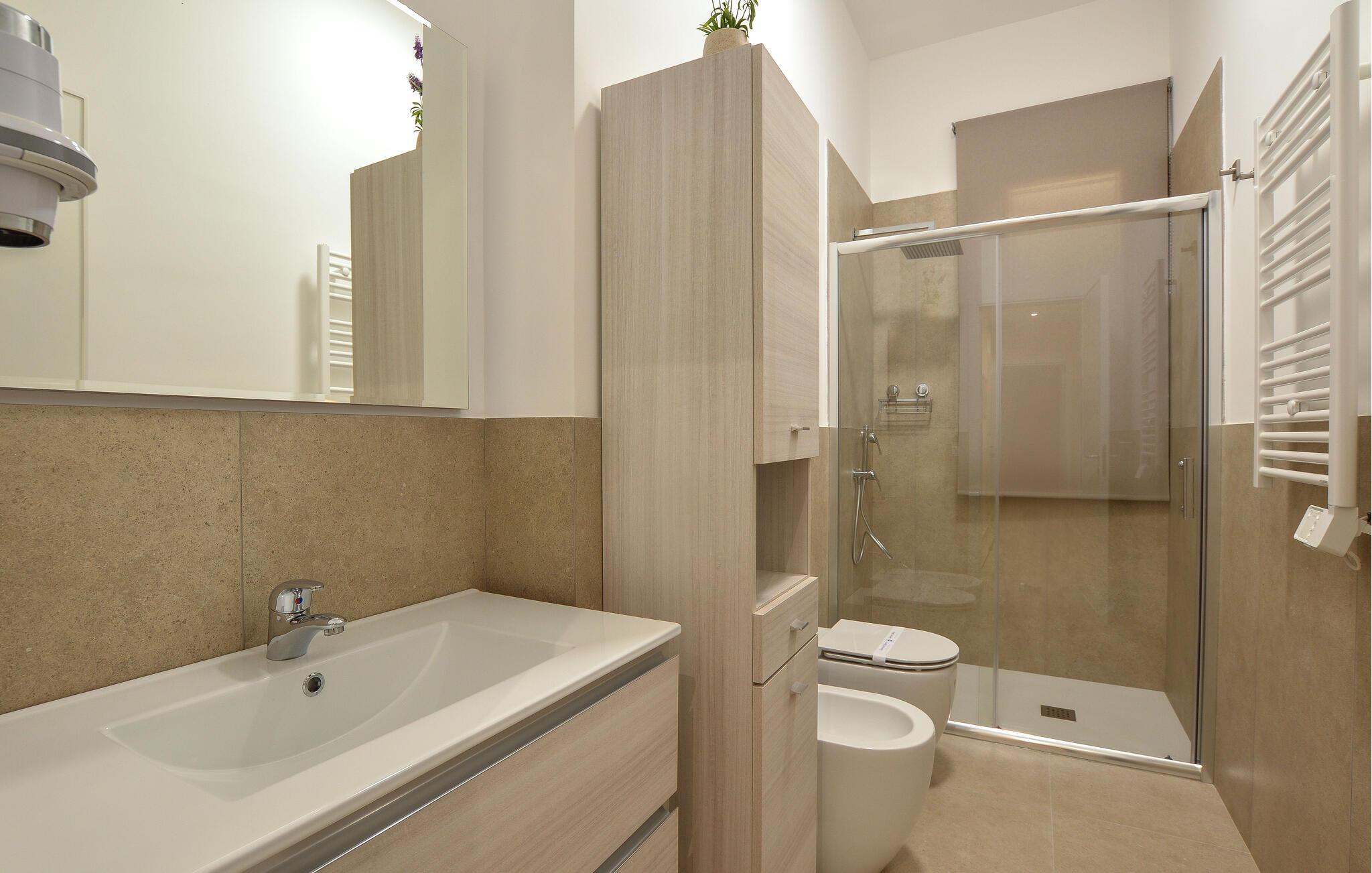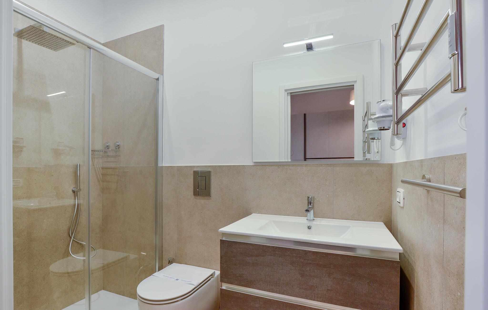 - WC mit warmem und kaltem Wasser, Dusche