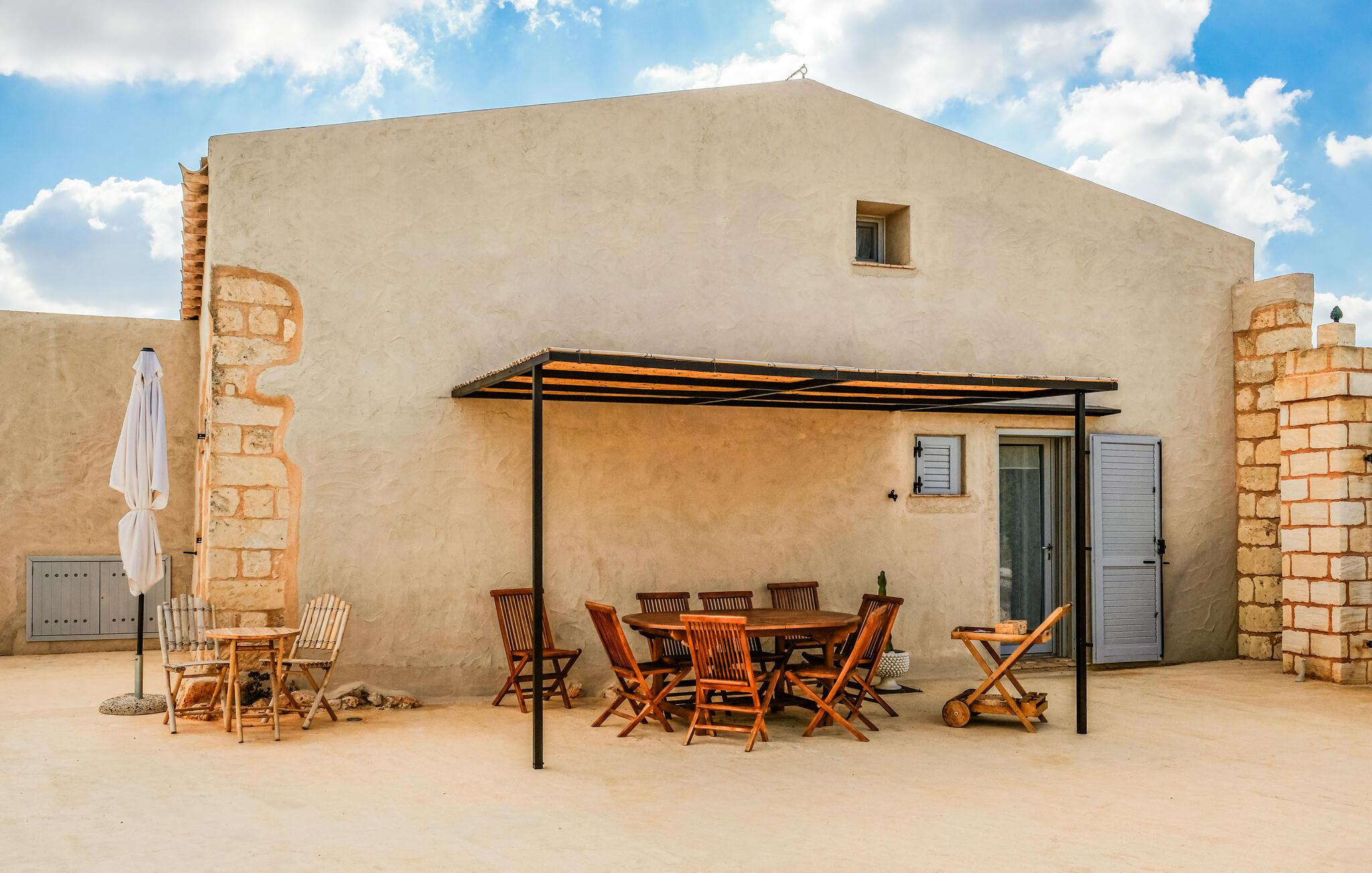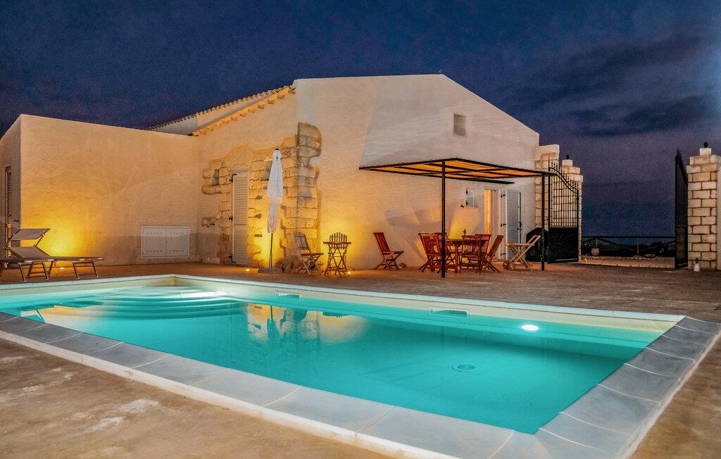 Ziehen Sie ein paar Bahnen im Pool oder entspannen Sie auf den umliegenden Liegen unter schattenspendenden Pergolen. Genießen Sie das herrliche Panorama, das sich von der Villa aus bietet: ein unverbauter 180-Grad-Blick über die lange, unberührte Küste, die sich über bebaute Felder, Weinberge und Olivenhaine bis zum Meer erstreckt und nachts von den Lichtern der Stadt beleuchtet wird. An besonders klaren Tagen können Sie in der Ferne die Umrisse der Insel Pantelleria bewundern.