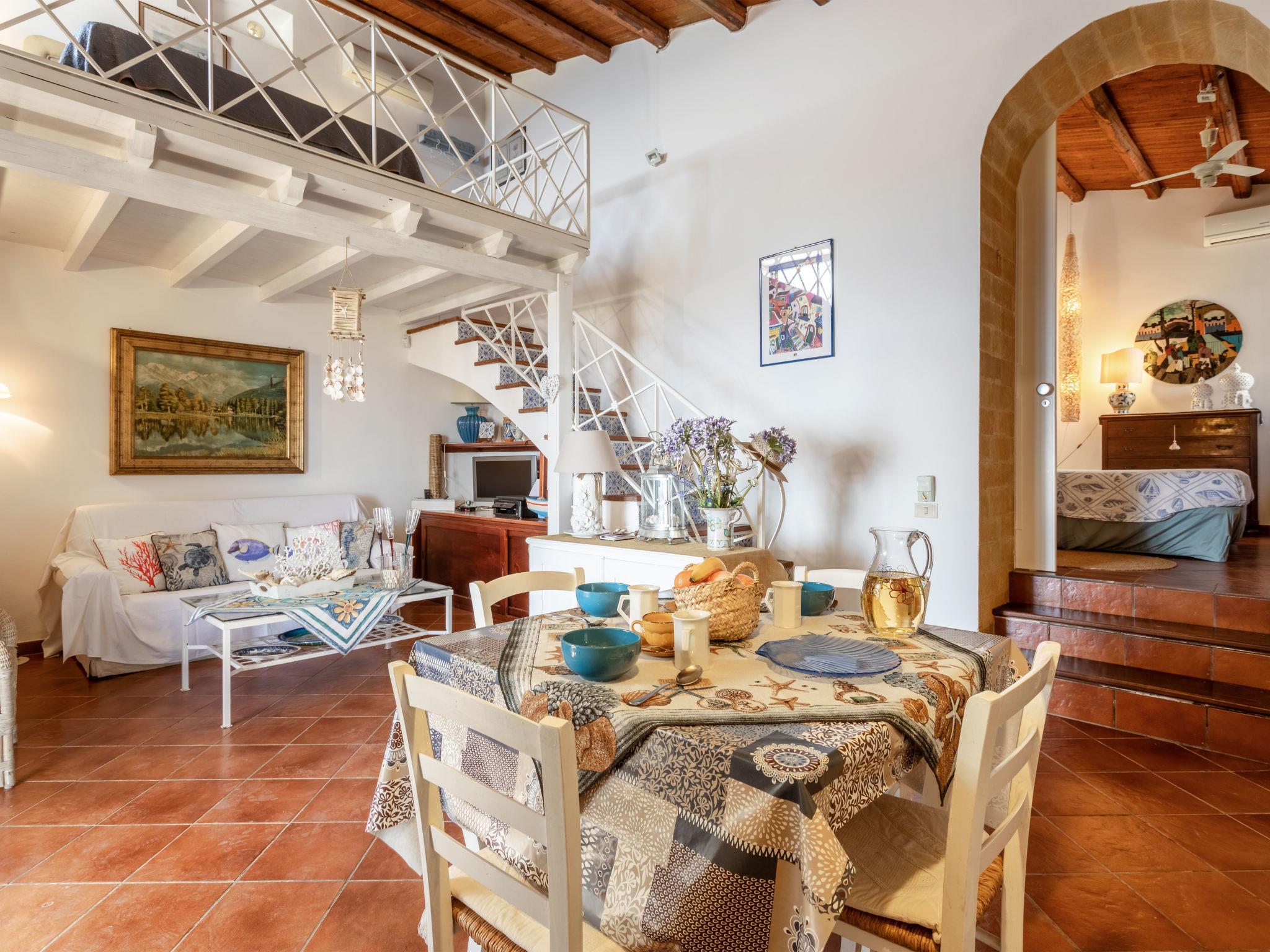 3-Zimmer-Haus 80 m2, im Erdgeschoss, Südlage. Komfortabel und geschmackvoll eingerichtet: Wohn-/Esszimmer mit 1 Doppeldiwanbett und Sat-TV (Flachbildschirm), Klimaanlage, Ventilator und Warmluftheizung. Ausgang zur Terrasse. Galerie, Deckenhöhe 280 - 190 cm mit 1 Doppelbett. 1 Doppelzimmer mit Dusche/WC, Klimaanlage, Ventilator und Warmluftheizung. Kochnische (4 Kochplatten, Backofen, Toaster, Wasserkocher). Dusche/Bidet/WC. Boiler (50 Liter). Grosse Terrasse 40 m2 teilweise überdacht. Terrassenmöbel. Sehr schöne Panoramasicht auf das Meer. Zur Verfügung: Waschmaschine, Bügeleisen, Fliegengitter, Babybett bis 2 Jahre (extra), Haartrockner. Internet (Wireless LAN, gratis). Parkplatz (1 Auto). Anstelle eines abgeschlossenen Schlafzimmers befinden sich manche Schlafplätze in einem offenen Bereich (Galerie, Nische etc.). IT084023C26TLDZR45