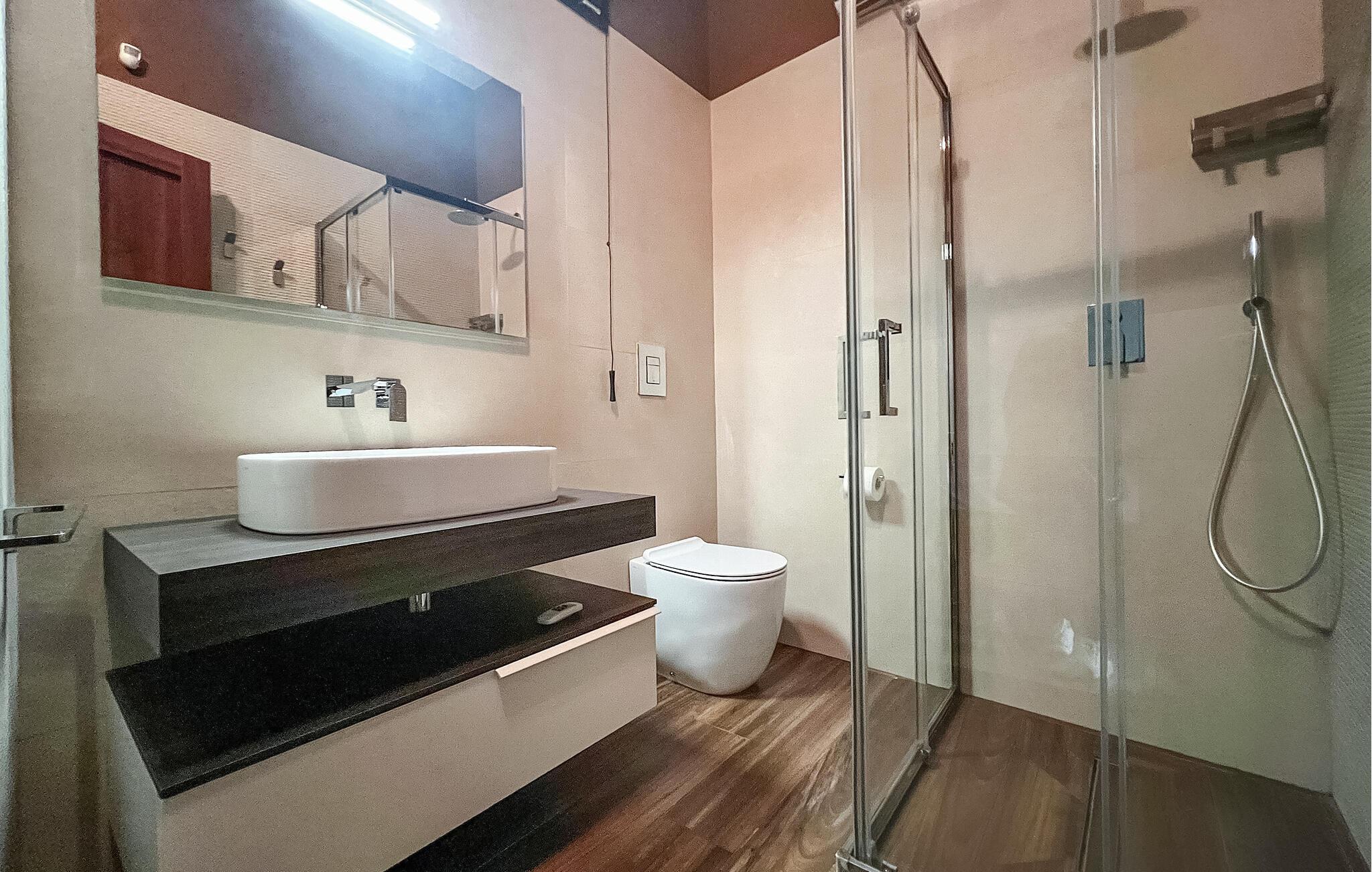 - WC mit warmem und kaltem Wasser, Dusche
