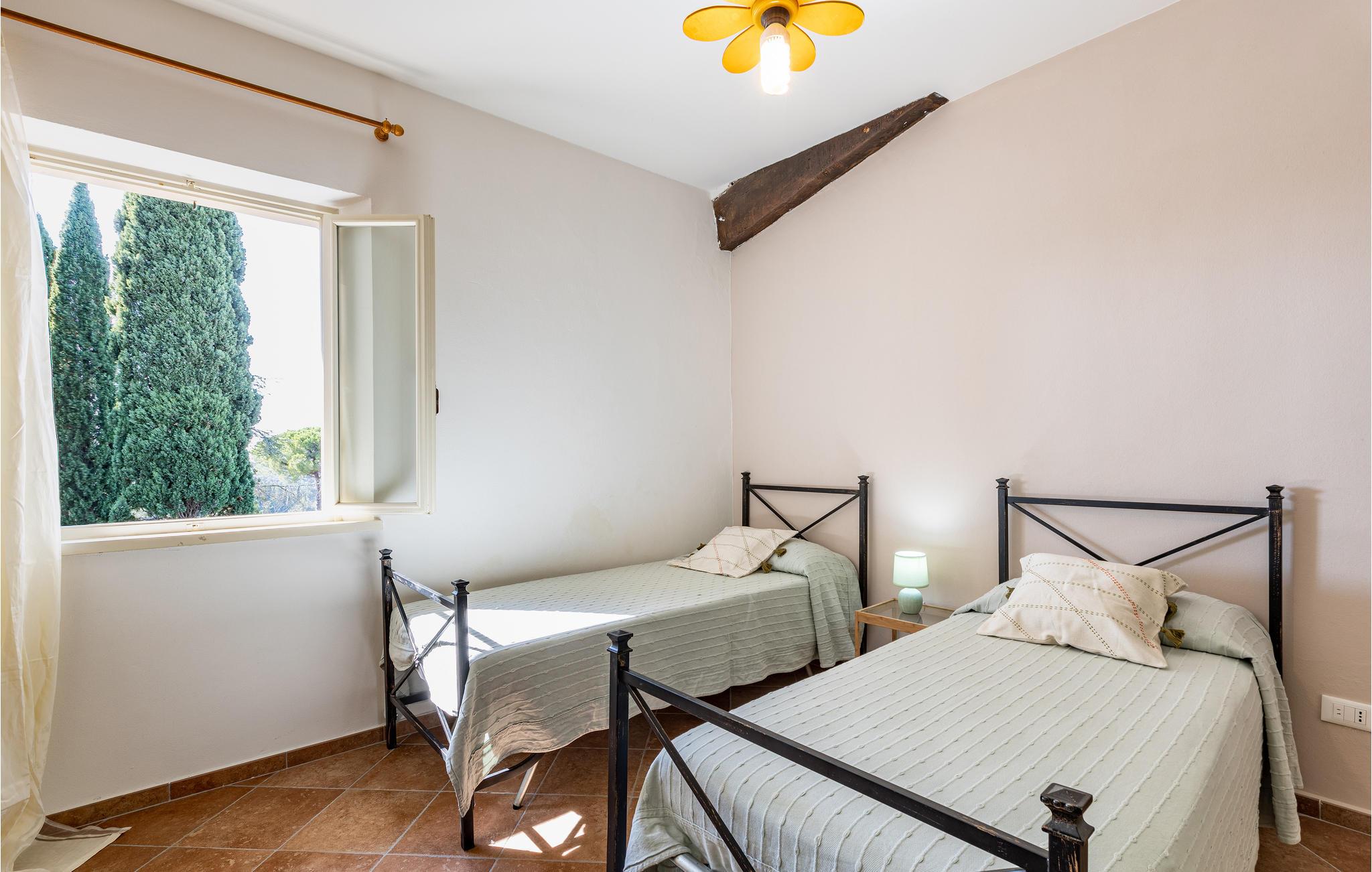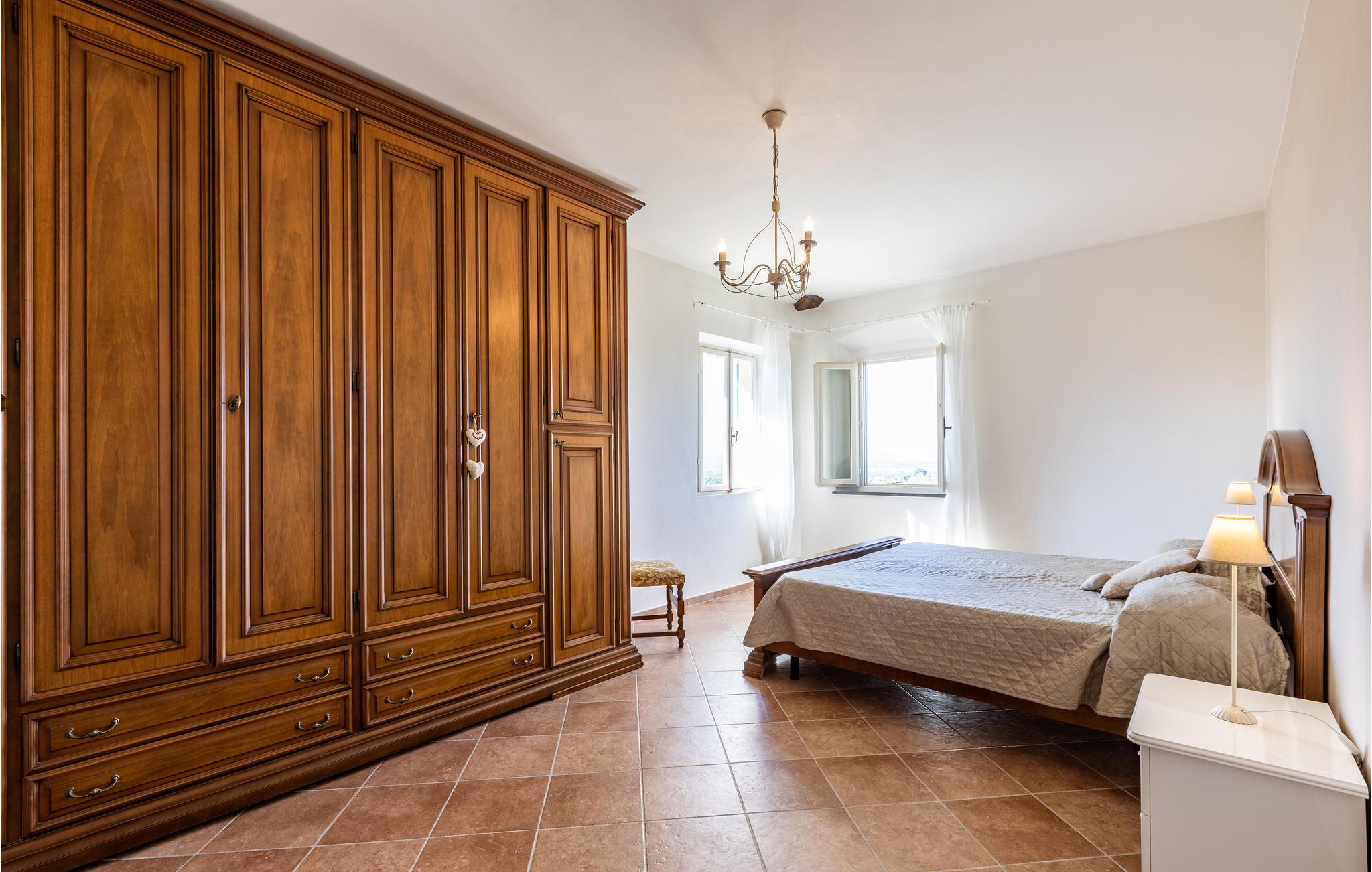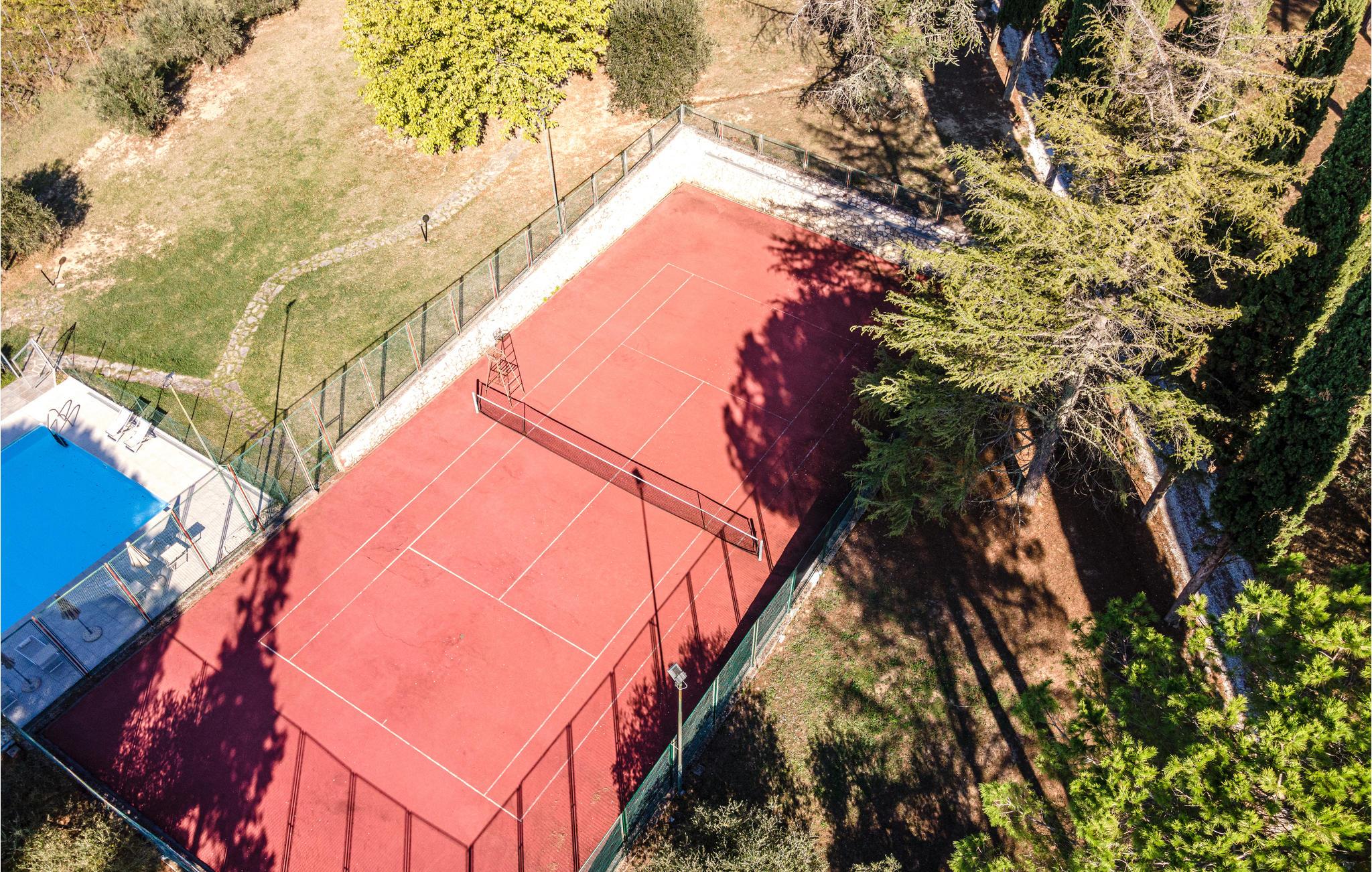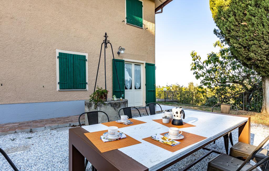 Ferienhaus mit Pool und Tennisplatz, beide zur gemeinschaftlichen Benutzung, in Palaia, in der Provinz Pisa. Das Haus verfügt über eine Terrasse mit schönem Ausblick auf die Hügellandschaft um Pisa und auf die Weinberge, die einige der bedeutendsten toskanischen Weine erzeugen. Die Strände von Marina di Pisa befinden sich in 45 km Entfernung, wohingegen die Stadt Pisa mit ihrem berühmten schiefen Turm und auch der Flughafen von Pisa ca. 30 km entfernt liegen. Die Kunststädte Lucca, Florenz und Siena sind jeweils 56 km, 64 km und 90 km entfernt. Den Außenbereich teilen Sie mit den Gästen einer weiteren Ferienwohnung, daher stehen Pool und Tennisplatz sowie Spielplatz und Tischtennis zur gemeinschaftlichen Nutzung zur Verfügung.