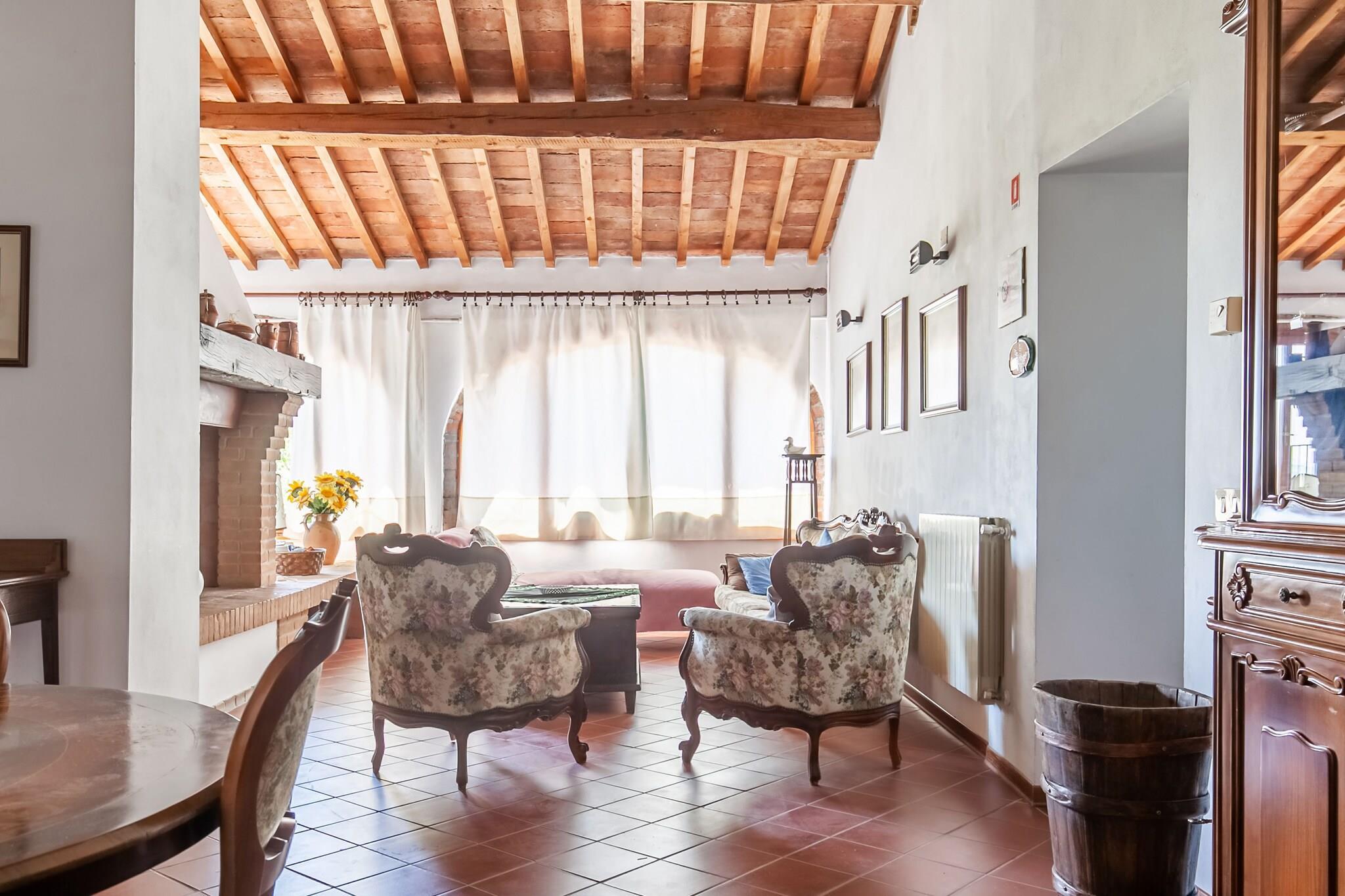 Diese einladende Villa im ersten Stock in der Strada Comunale di Montelopio 48 in Fabbrica, Peccioli, ist ideal für Familien. Sie verfügt über ein helles Wohnzimmer, eine offene Küche mit Herd, Backofen und Kühl-Gefrierkombination, ein Doppelzimmer und ein Badezimmer mit Dusche und Bidet. Klimaanlage, Zentralheizung und die gemeinsame Waschmaschine sorgen für ganzjährigen Komfort. Im Außenbereich erwarten Sie eine Terrasse, ein privater Garten, ein Grill, Sonnenliegen, ein Sonnenschirm und ein Parkplatz. Den Gästen steht außerdem ein Gemeinschaftspool (12 x 6 m, Mai–September) zur Verfügung. Kinderbetten sind auf Anfrage erhältlich, und Fahrräder für Erkundungstouren in der Umgebung stehen zur Verfügung. Die Villa ist für entspanntes Wohnen in der Gruppe konzipiert und bietet Gemeinschaftsräume und private Rückzugsorte. Der offene Wohn- und Küchenbereich lädt zu geselligen Morgen- und Abendstunden ein, während Schlafzimmer und Garten ruhige Ecken bieten. Die Terrasse und die Gartenmöbel laden zu Mahlzeiten im Freien ein, und der Pool bietet kühle Erfrischung unter der toskanischen Sonne. Nur 100 m von Waldwegen und 2,5 km von den Restaurants von Peccioli entfernt können die Gäste die toskanische Küche in erstklassigen Lokalen wie IlGrano e l’Uva und Osteria del Borgo genießen.