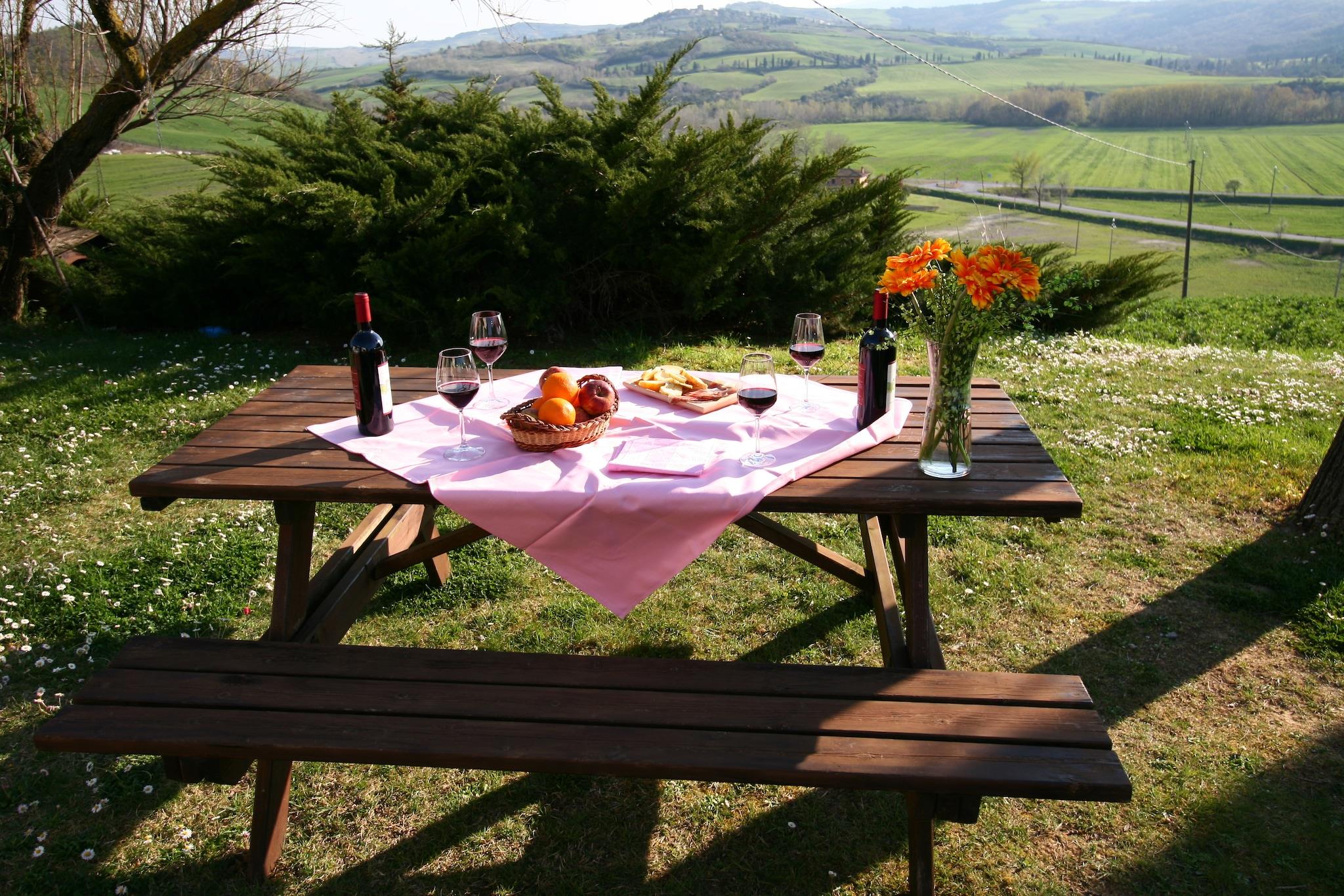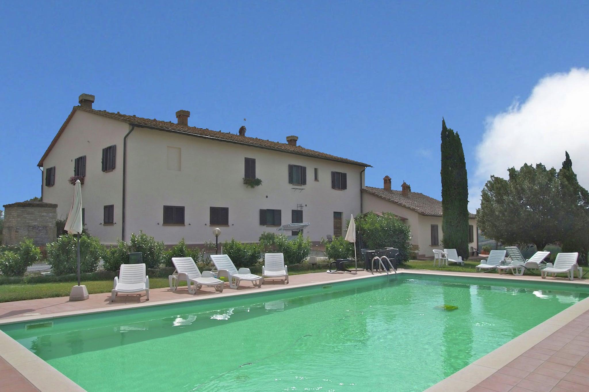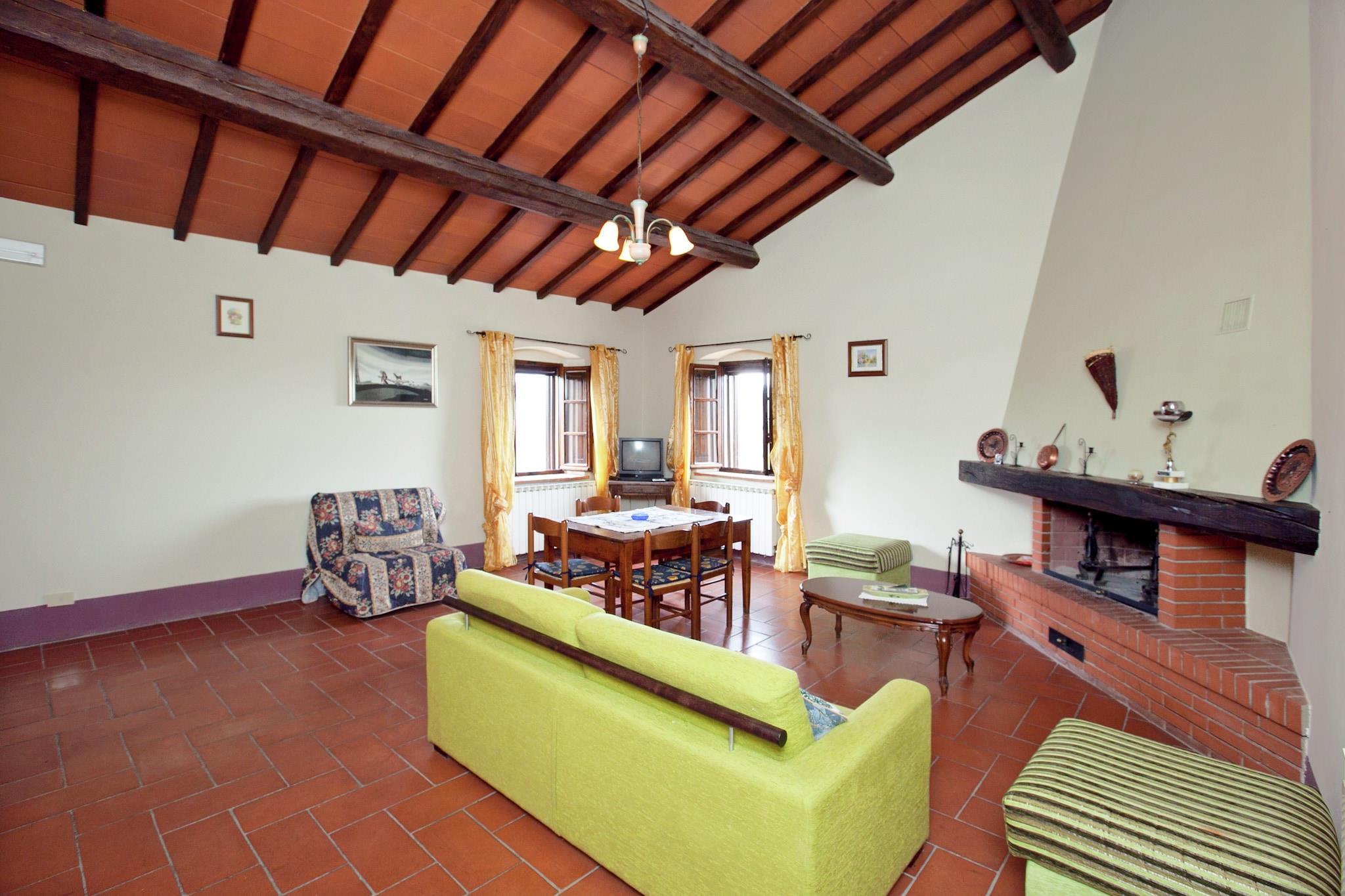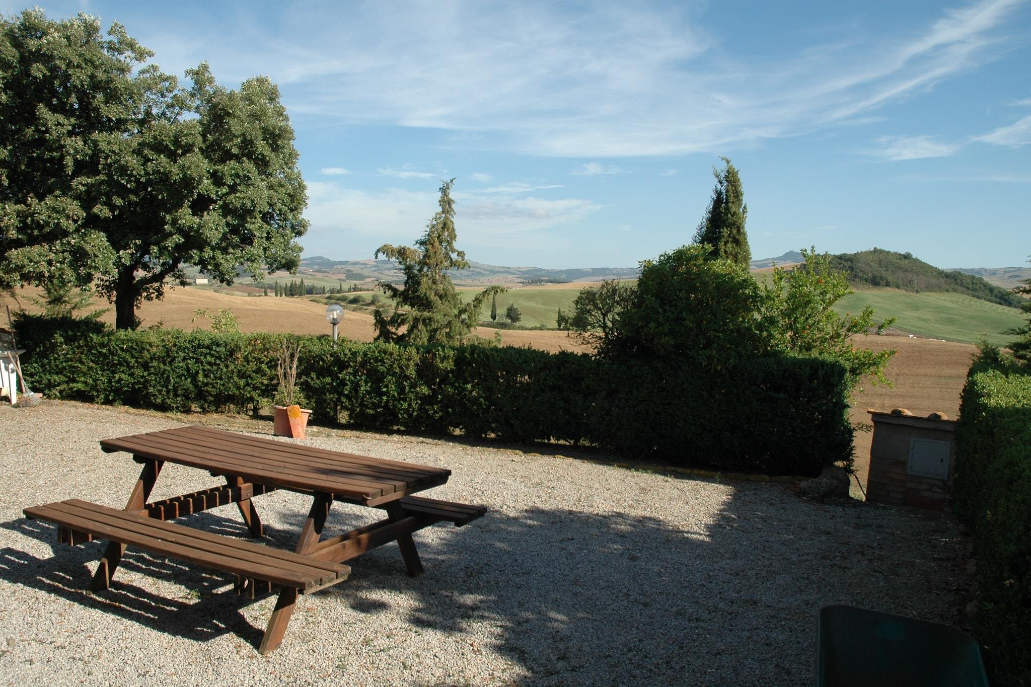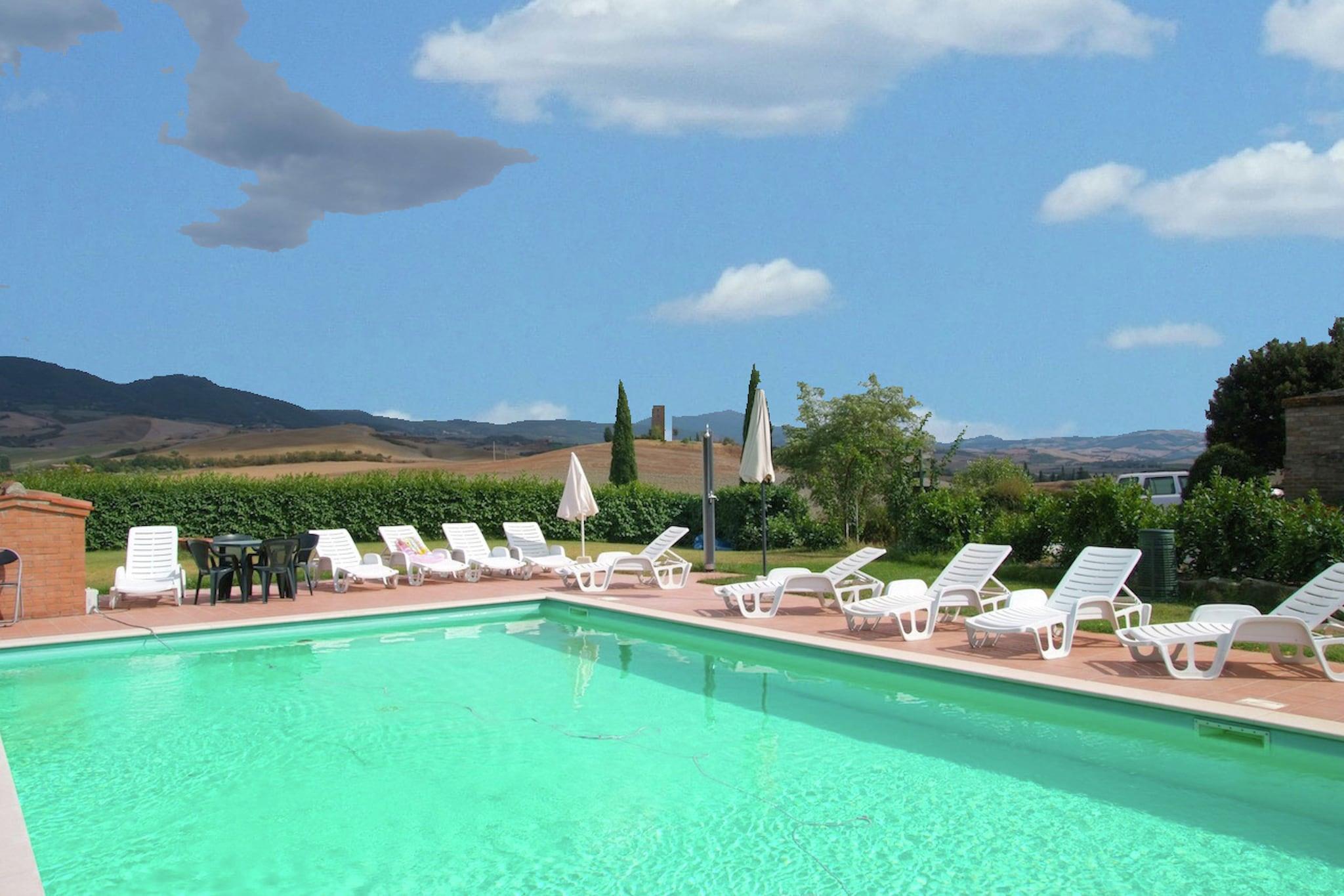 In den ruhigen Hügeln von Pienza gelegen, bietet dieses haustierfreundliche Apartment einen ruhigen Rückzugsort für bis zu sechs Gäste. Es befindet sich im ersten Stock und verfügt über eine geräumige Küche mit Kamin und Fernseher, zwei gemütliche Schlafzimmer – eines mit Doppelbett und Einzelschlafsofa, das andere mit Doppel- und Einzelbett – sowie zwei moderne Badezimmer mit Dusche und Bidet. WLAN und Zentralheizung sorgen ganzjährig für einen komfortablen Aufenthalt. Im Freien erwartet Sie eine private Terrasse und ein gemeinschaftlich genutzter Garten mit Gartenmöbeln – ideal zum Entspannen in der toskanischen Sonne. Ein 12 × 6 m großer Pool, geöffnet von Juni bis September, lädt in den wärmeren Monaten zu einem erfrischenden Bad ein. Ein privater Parkplatz trägt zusätzlich zum Komfort bei und erleichtert die Erkundung der Region. Das Apartment liegt nur 10 km von der Renaissancestadt Pienza entfernt, die für ihre beeindruckende Architektur und ihren Pecorino-Käse bekannt ist. Zu den nahegelegenen Sehenswürdigkeiten zählen die Hügel des Val d'Orcia, Montepulciano (berühmt für seinen Wein) und die bezaubernden Thermalbäder von Bagno Vignoni. Besuchen Sie La Porta oder die Trattoria Latte di Luna in den nahegelegenen Städten und genießen Sie authentische toskanische Küche. Mit Waldwegen, einem See und kulturellen Sehenswürdigkeiten in unmittelbarer Nähe ist dieser Aufenthalt ideal für Familien oder Freunde, die Natur, Geschichte und Komfort in einer wunderschönen Umgebung suchen.