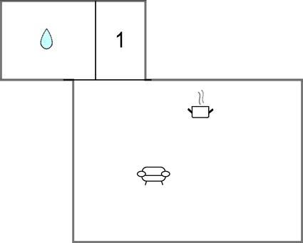 Badezimmer 3m2 (nr. 1) - WC. Warmes und kaltes Wasser. Handdusche und Badewanne