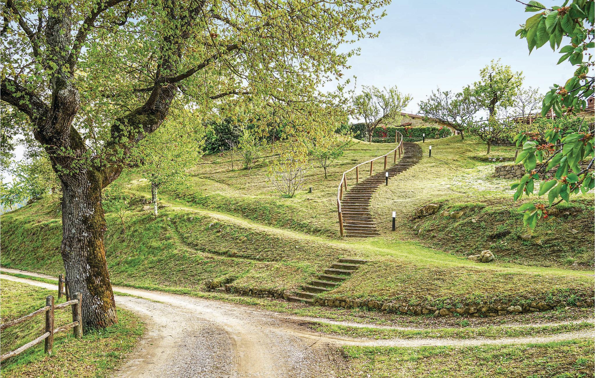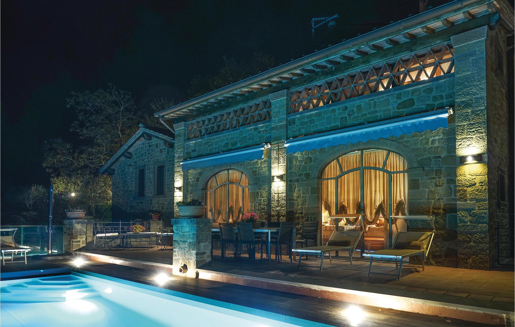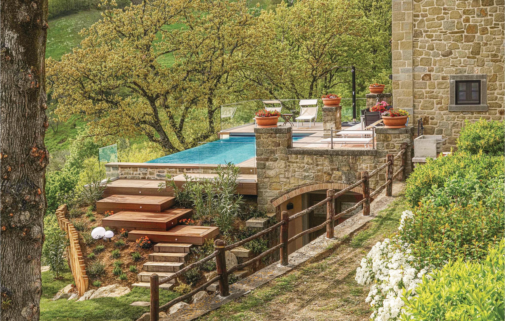 Etwa 5 km von Poppi, in malerischer Hügellage, liegt dieses hübsche Landhaus mit Pool in einzigartiger Panoramalage. Der ehemalige Heuschober wurde besonders liebevoll restauriert und eingerichtet, so dass Sie hier zum einen die rustikale Atmosphäre vergangener Zeiten als auch modernen Stil und Komfort genießen können. Direkt vor dem großen hellen Wohnzimmer betreten Sie die komfortabel möblierten Terrassen, die den Pool mit Überlaufrand zum Mittelpunkt haben – ein perfektes Ambiente zum Entspannen, Schmökern und den Sonnenuntergang bei einem Gläschen Rotwein zu genießen. An das Haus schließt sich ein gepflegter Olivenhain an, wo sich auch ein Spielbereich für die Kleinen befindet – weitere Spiele wie Tischtennis, Tischfußball, Boccia u.a. stehen den Gästen gemeinsam mit denen der benachbarten ITA046 zur Verfügung. Garage auf Anfrage. Ein Paradies zum Entspannen, aber auch für Trekking und Exkursionen zu den Städtchen und Burgen des Casentino-Naturparks. Eine der imposantesten Burgen finden Sie gleich im mittelalterlichen Poppi, einem reizenden Städtchen, wo es Ihnen gefallen wird, einen Cappuccino am Morgen, einen Aperitif am Abend – oder umgekehrt – einzunehmen. Gute Trattorien bieten lokale Gerichte, z.B. mit Steinpilzen oder Trüffel. Besuchen Sie den Zoo von Poppi! Entdecken Sie Arezzo (45 km) mit seiner sehenswerten Altstadt - z.B. beim Bummeln durch den Corso, beim Besichtigen der sehenswerten Kathedrale, der romanischen Pieve, der Kirche San Francesco mit dem berühmten Freskenzyklus von Pero della Francesca - und natürlich beim Aperitif auf der Piazza Grande! Zahlreiche Trattorien bieten lokale Köstlichkeiten. Im Juni und September finden auf der Piazza Grande die traditionellen Reiterspiele des Saracino statt; an jedem ersten Wochenende im Monat wird die ganze Altstadt vom großen nationalen Antiquitätenmarkt bunt belebt. Unasphaltierte Zufahrt 300 m.