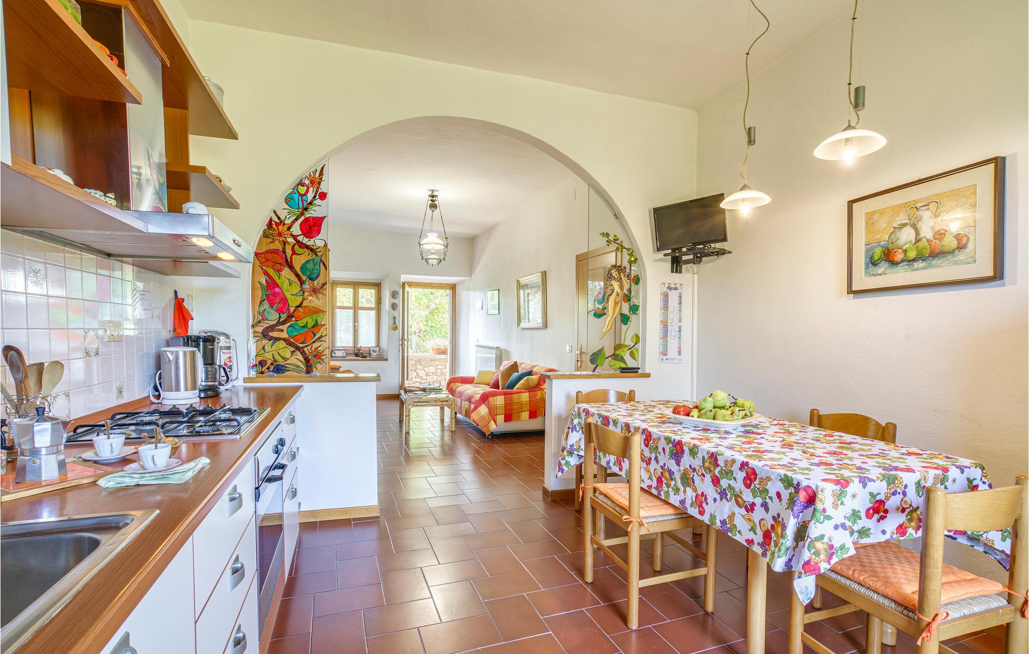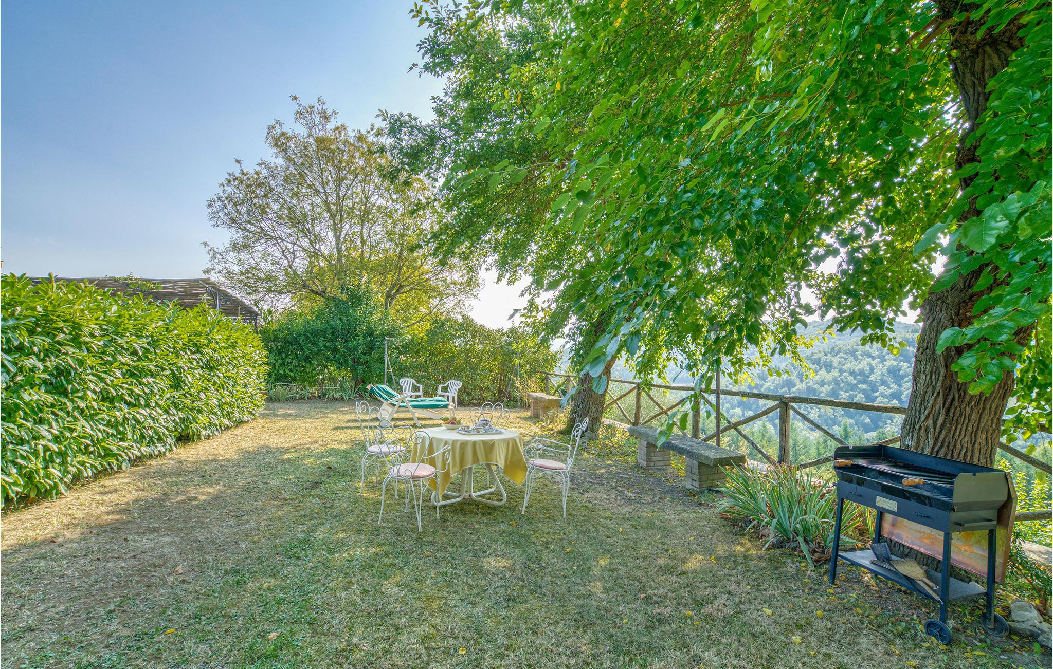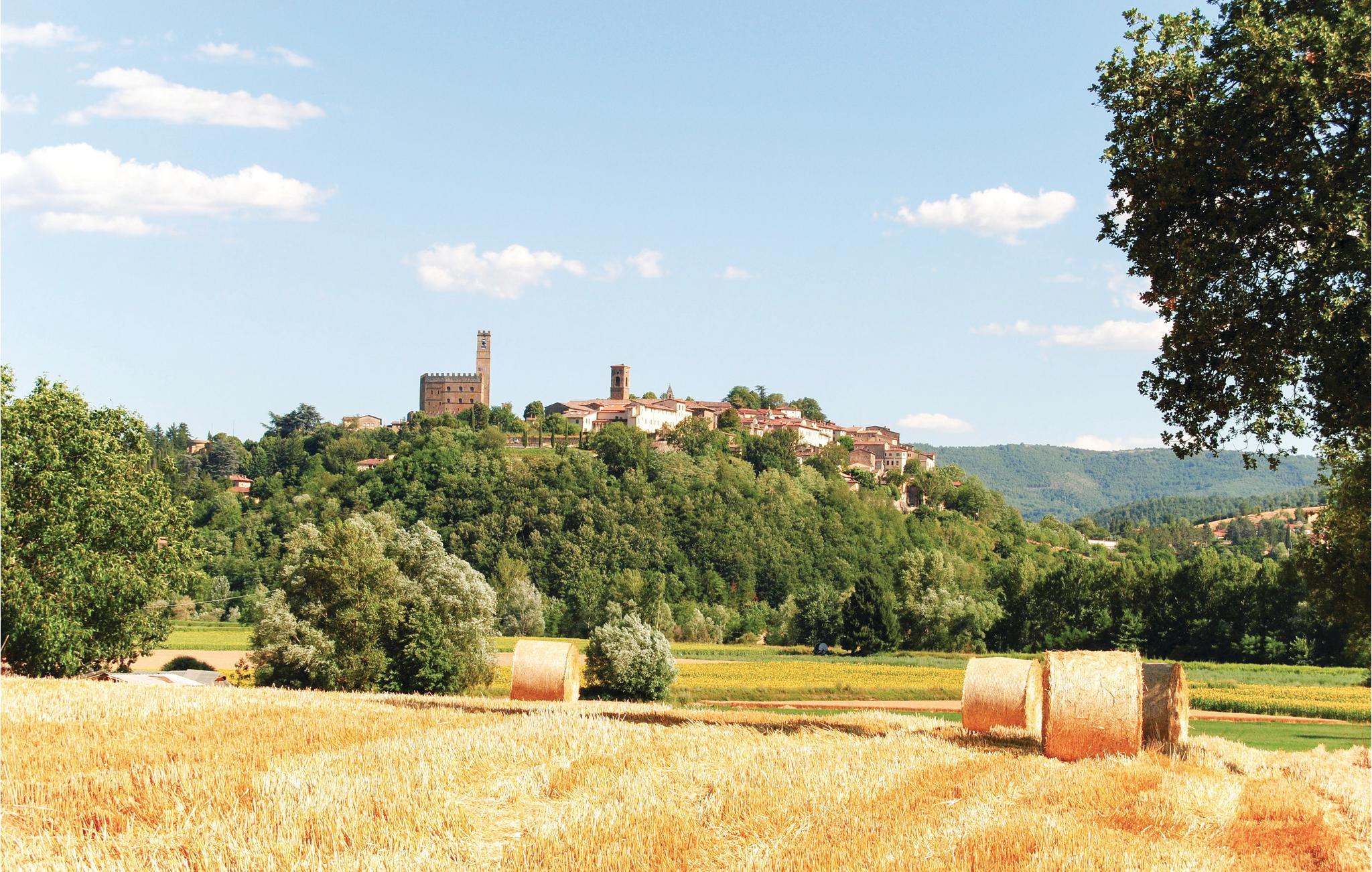 Etwa 4 km von Poppi liegt diese freundliche Ferienwohnung mit Loggia in einem kleinem Borgo im Casentino. Großes, gemütliches Wohnzimmer mit Kaminofen und offener Wohnküche, zwei Schlafzimmer, Bad. Zu beiden Seiten der Wohnung steht Ihnen ein privates Gartengrundstück zur Verfügung, mit Sitzplatz und Liegestühlen und einem einmaligen Panoramablick über das Tal auf die Burg von Poppi. Carport, Barbecue. Ideal zum Entspannen, Golfen (4 km) ,Wandern und Biken im Naturpark des Casentino. Besichtigen Sie die Burgen der Gegend und das beeindruckende Kloster La Verna (35 km). Babybett auf Anfrage. Die charmanten Städte Arezzo (40 km) und Florenz (50 km) erreichen Sie innerhalb einer Stunde Fahrt; bei Poppi (4 km) Geschäfte aller Art, Trattorien, Bars, kulturelle Veranstaltungen.
