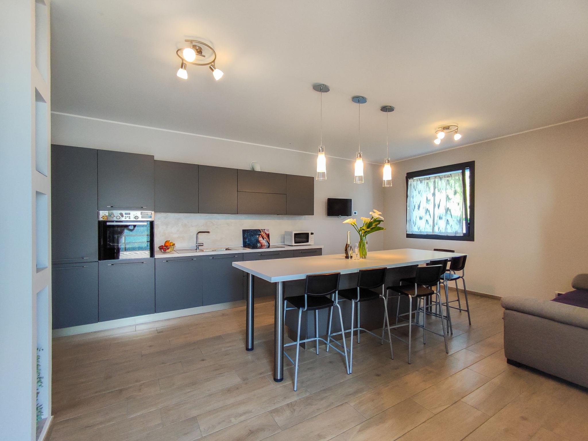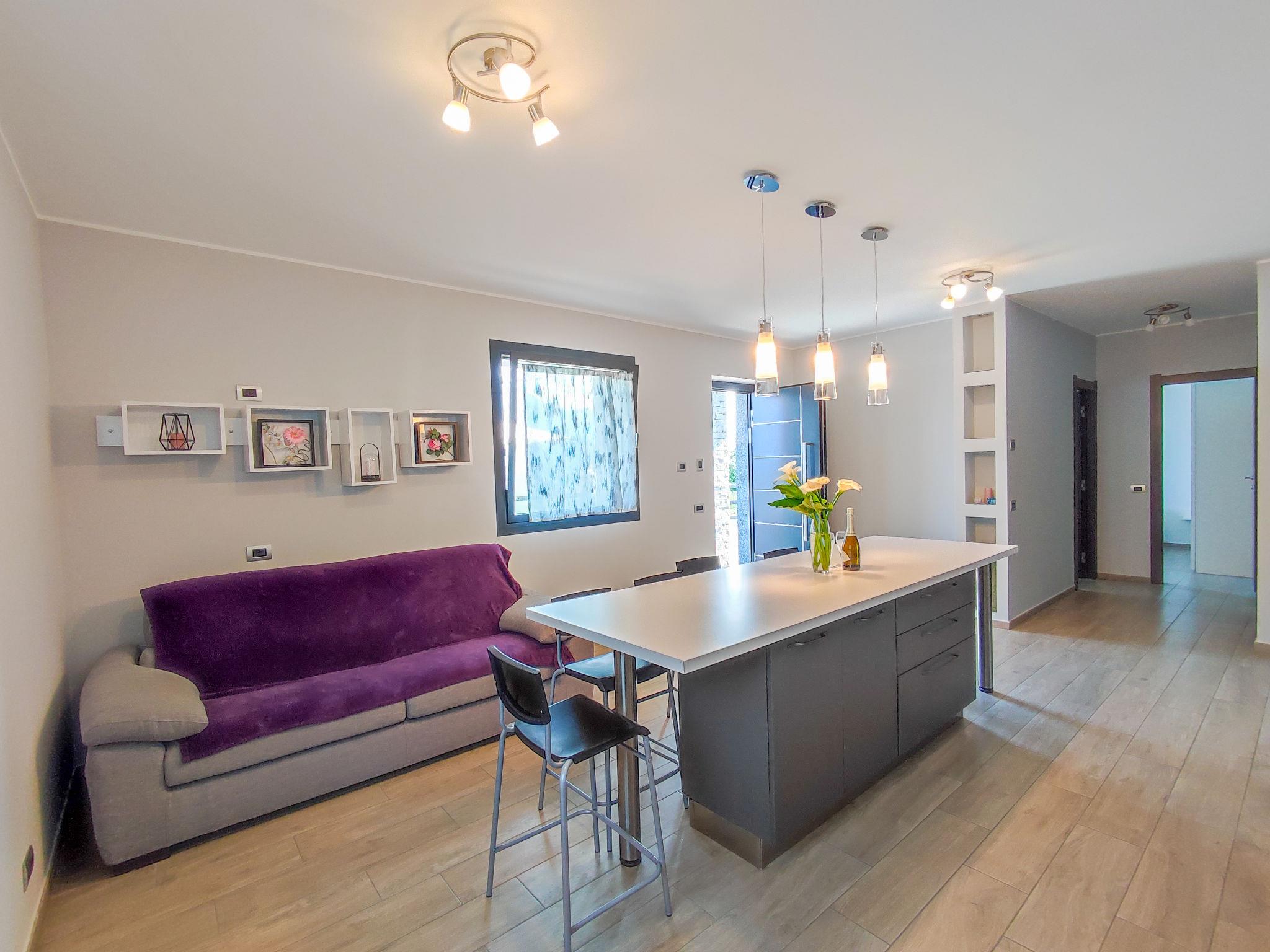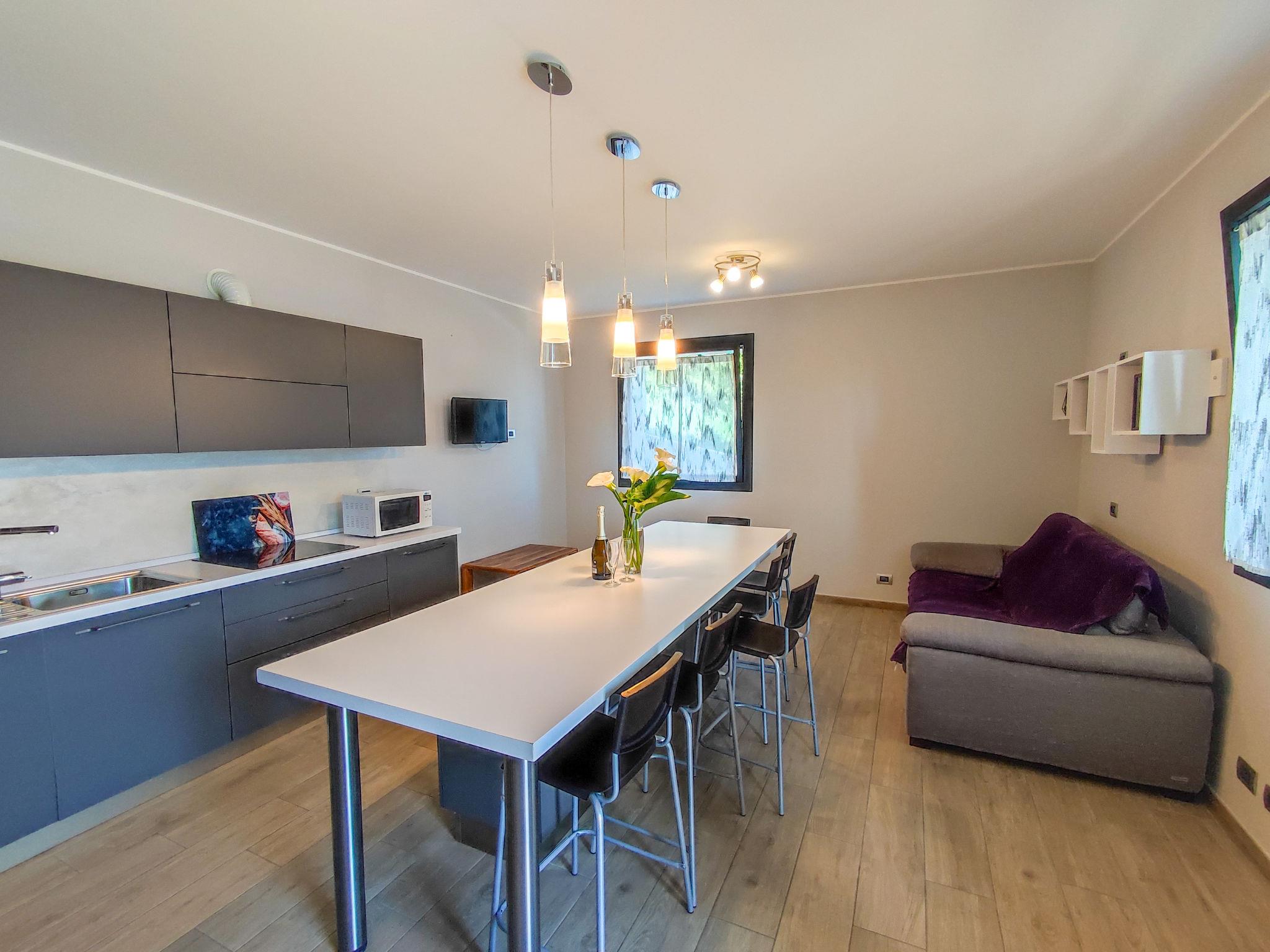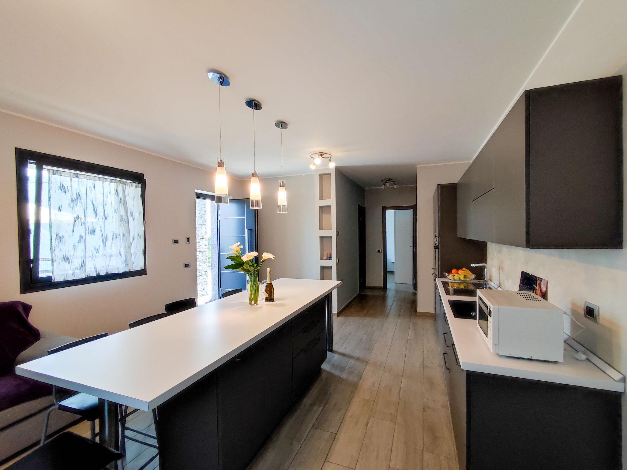 3-Zimmer-Wohnung 70 m2, im Erdgeschoss. Modern und stilvoll eingerichtet: Wohn-/Esszimmer mit TV. Ausgang zur Terrasse. 1 Doppelzimmer. 1 Zimmer mit 1 x 2 Etagenbetten. Offene Küche (Backofen, Geschirrspüler, 4 Induktionskochplatten, Mikrowelle, Tiefkühler, elektrische Kaffeemaschine). Ausgang zur Terrasse. Dusche/Bidet/WC, Hydromassage-Dusche. G-Heizung, Fussbodenheizung. Natursteinboden. Grosse Terrasse 100 m2 teilweise überdacht. Terrassenmöbel, Liegestühle (2). Herrliche Panoramasicht auf den See, die Berge und das Tal. Zur Verfügung: Kinderhochstuhl, Babybett bis 2 Jahre. Internet (Wireless LAN, gratis). Parkplatz (2 Autos). Bitte beachten: Nichtraucher-Unterkunft. Eigener Eingang. IT013077C2IL6KWHWQ