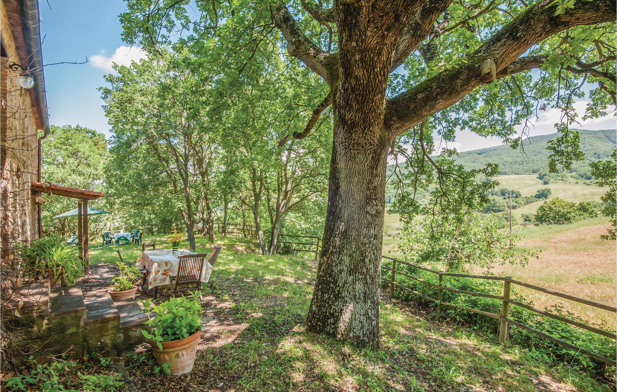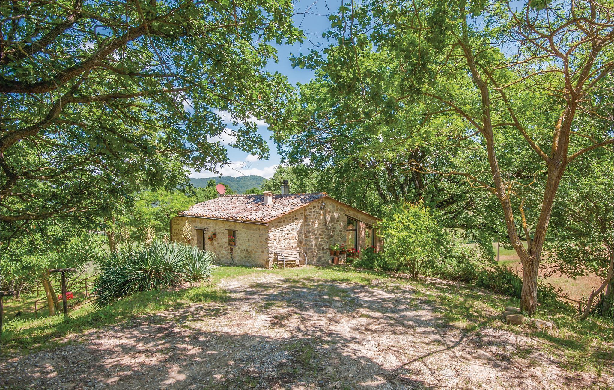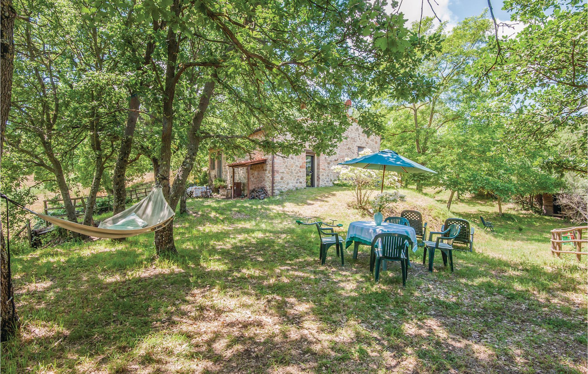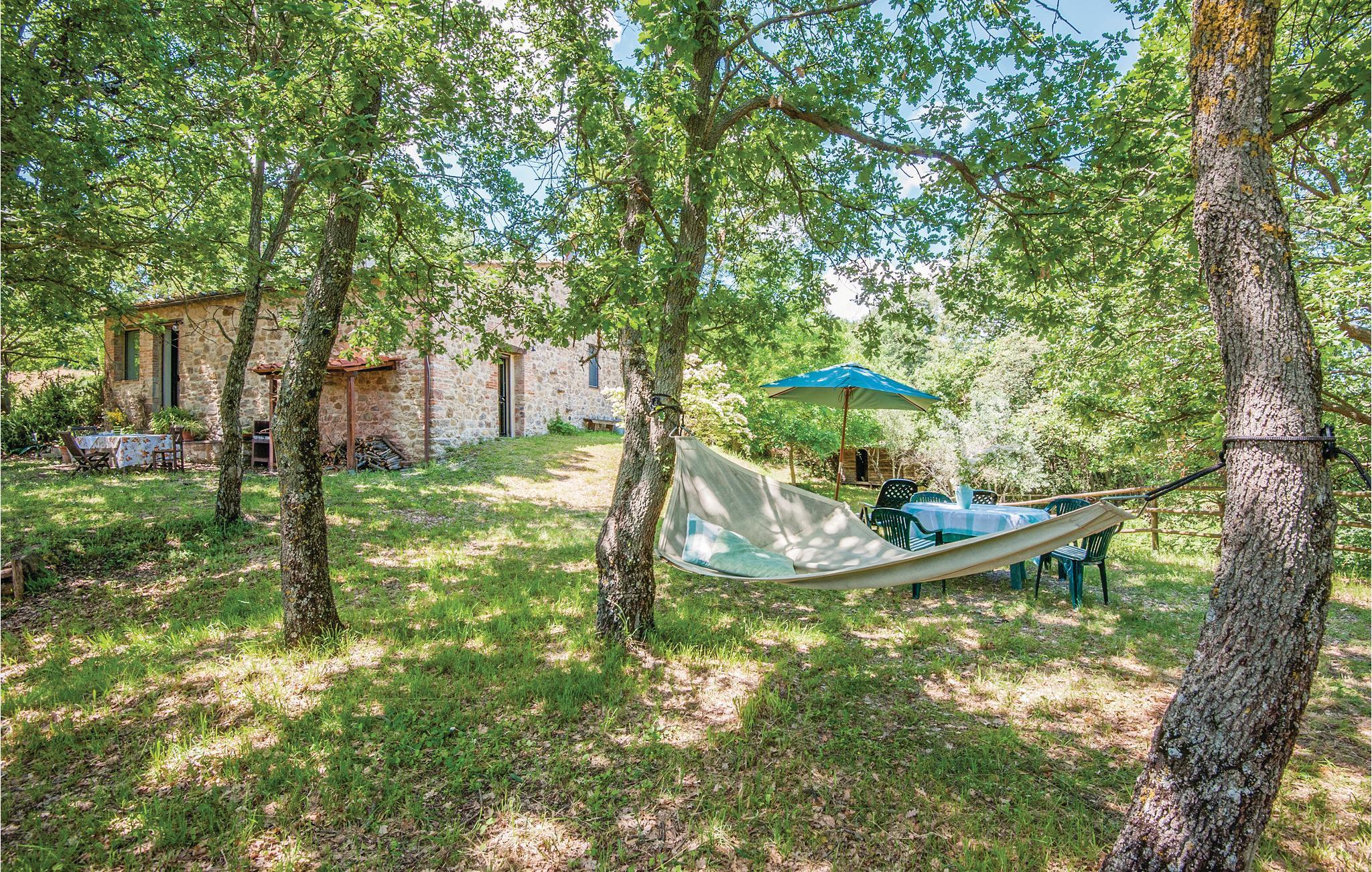 Traditionelles Ferienhaus aus Stein auf einem Hügel in unmittelbarere Nähe von Radicondoli, in der Provinz Siena. Dieser kleine mittelalterliche Ort gehört zu italienischen Ortschaften die von antiken Stadtmauern umgeben sind, befindet sich auf einem Hügel, und der Panoramablick den man von hier genießt ist über die bewaldete toskanische Hügellandschaft. Das Haus hat eine gemütliche Atmosphäre und sowohl vom Doppelzimmer als auch vom Wohnraum genießt man einen schönen Panoramablick auf die umliegende Landschaft. Im Wohnraum stehen Ihnen sowohl eine Schlafcouch als auch eine offene Galerie (mit Oberlicht), die Mittels einer Holzleiter zugänglich ist und auf der sich ein weiterer Schlafplatz befindet, zur Verfügung. Das Haus ist von einem Naturgrundstück mit Olivenbäumen umgeben und ist ein idealer Ort um sich zu erholen und zum entspannen. Der Außenbereich ist mit Tisch, Stühlen, Liegestühlen, Sinnenschirm und Grill ausgestattet, sodass Sie Ihre Mahlzeiten, von morgens bis abends im Freien genießen können. Hier können Sie Ihr Lieblingsbuch auf der Hängematte lesen, während die Kinder ungestört im Garten spielen. Es ist ein exzellenter Ausgangspunkt für Ihre Tagesausflüge nach Siena (48 km), Florenz (78 km) und San Gimignano (39 km), sowie zur weltberühmten und einzigartigen Abtei San Galgano (ca. 30 Autominuten), wo sich das geheimnisvolle Schwert im Fels befindet. Zufahrt zur Haus über einen Schotterweg.