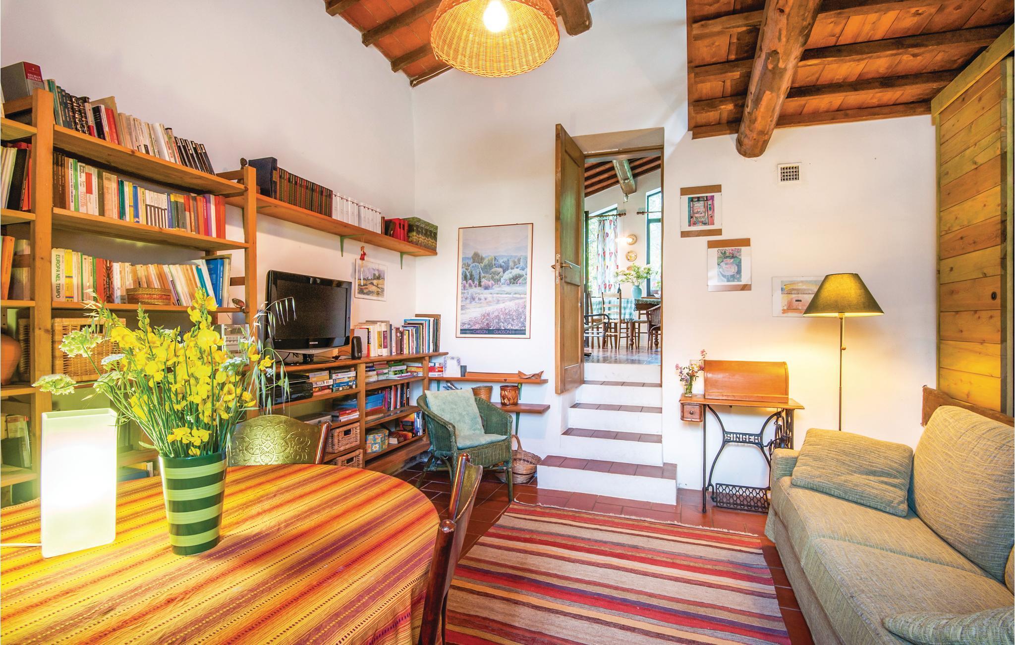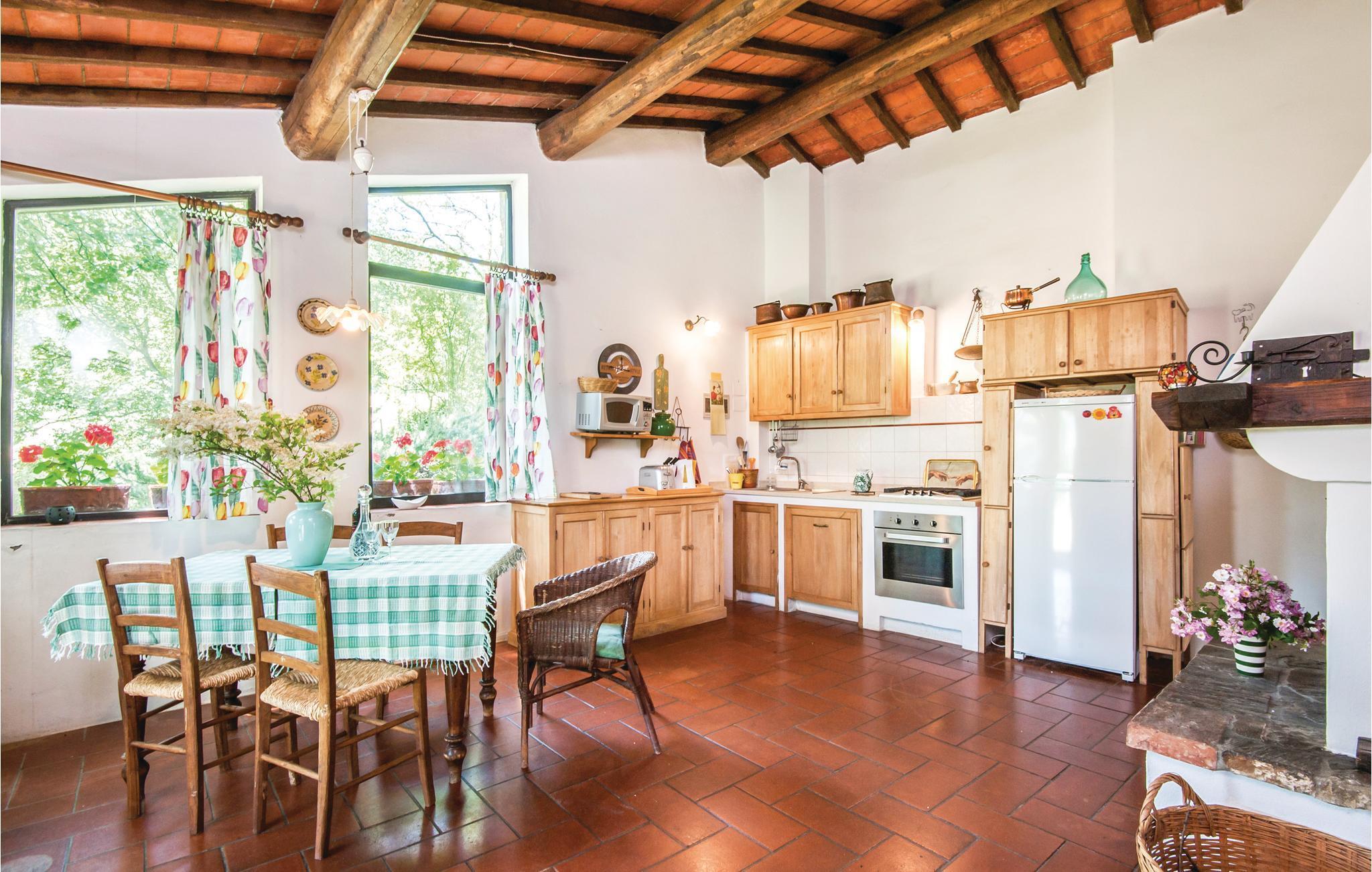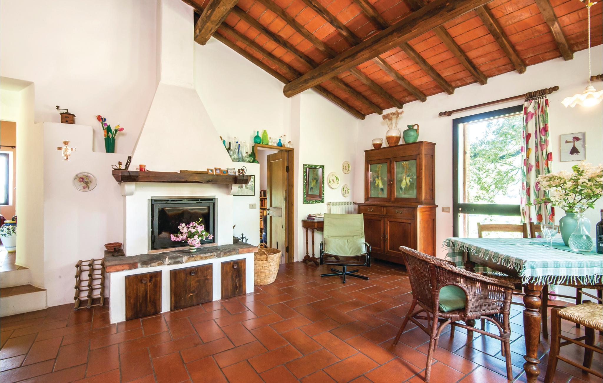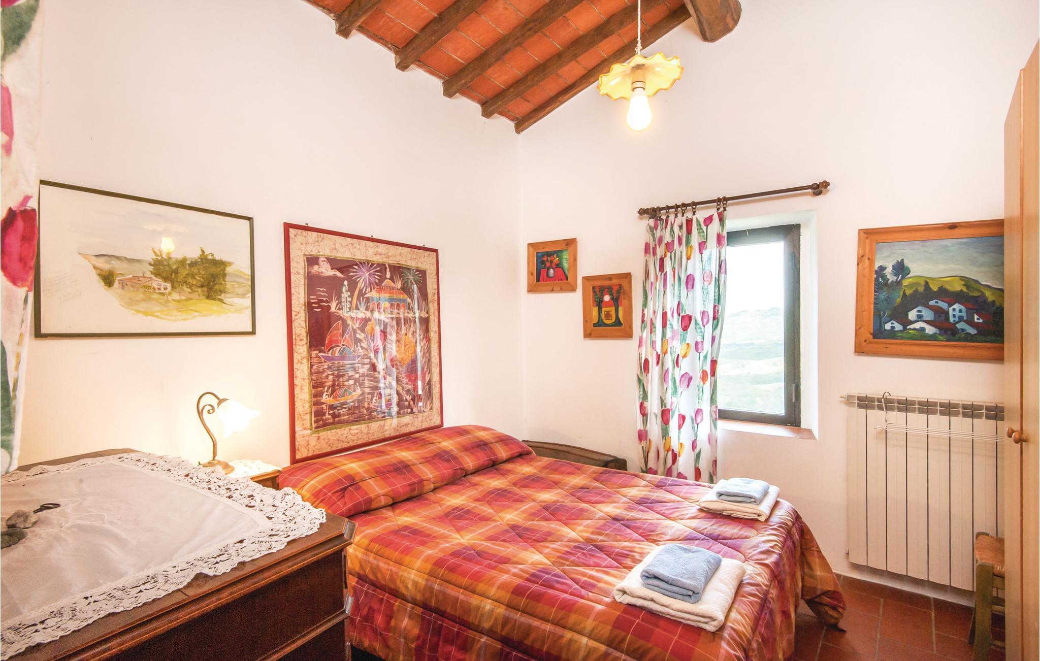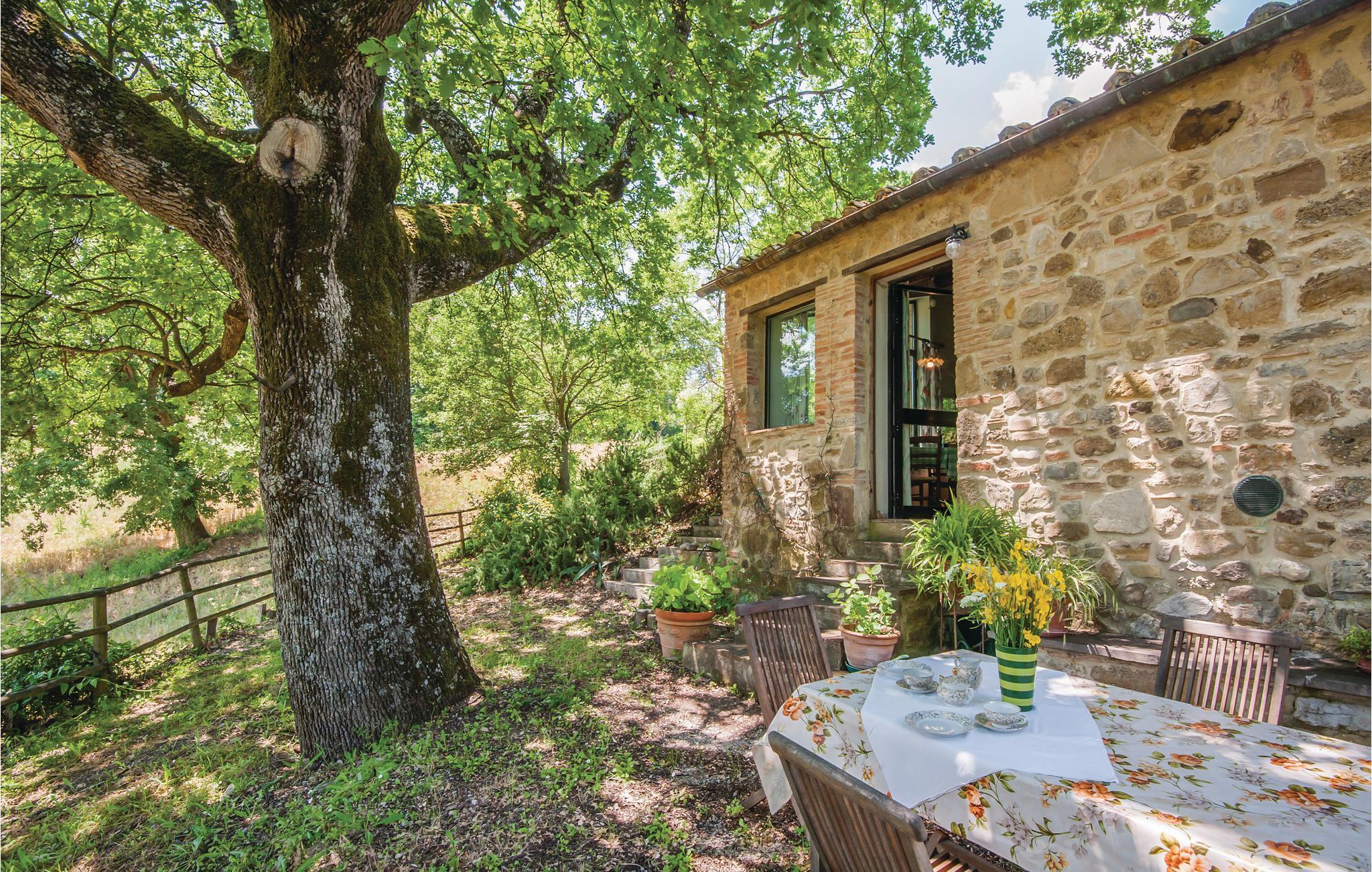 Traditionelles Ferienhaus aus Stein auf einem Hügel in unmittelbarere Nähe von Radicondoli, in der Provinz Siena. Dieser kleine mittelalterliche Ort gehört zu italienischen Ortschaften die von antiken Stadtmauern umgeben sind, befindet sich auf einem Hügel, und der Panoramablick den man von hier genießt ist über die bewaldete toskanische Hügellandschaft. Das Haus hat eine gemütliche Atmosphäre und sowohl vom Doppelzimmer als auch vom Wohnraum genießt man einen schönen Panoramablick auf die umliegende Landschaft. Im Wohnraum stehen Ihnen sowohl eine Schlafcouch als auch eine offene Galerie (mit Oberlicht), die Mittels einer Holzleiter zugänglich ist und auf der sich ein weiterer Schlafplatz befindet, zur Verfügung. Das Haus ist von einem Naturgrundstück mit Olivenbäumen umgeben und ist ein idealer Ort um sich zu erholen und zum entspannen. Der Außenbereich ist mit Tisch, Stühlen, Liegestühlen, Sinnenschirm und Grill ausgestattet, sodass Sie Ihre Mahlzeiten, von morgens bis abends im Freien genießen können. Hier können Sie Ihr Lieblingsbuch auf der Hängematte lesen, während die Kinder ungestört im Garten spielen. Es ist ein exzellenter Ausgangspunkt für Ihre Tagesausflüge nach Siena (48 km), Florenz (78 km) und San Gimignano (39 km), sowie zur weltberühmten und einzigartigen Abtei San Galgano (ca. 30 Autominuten), wo sich das geheimnisvolle Schwert im Fels befindet. Zufahrt zur Haus über einen Schotterweg.