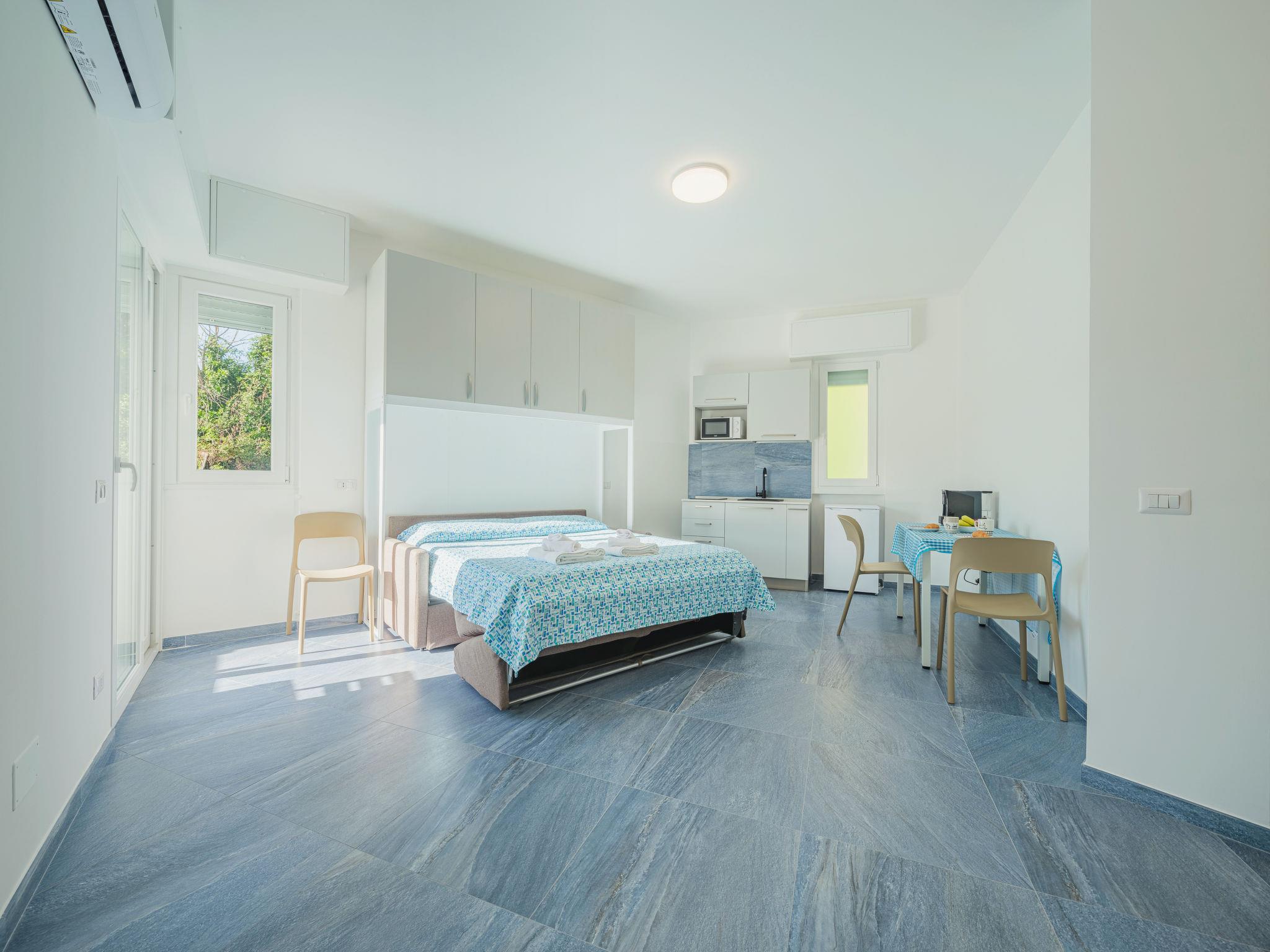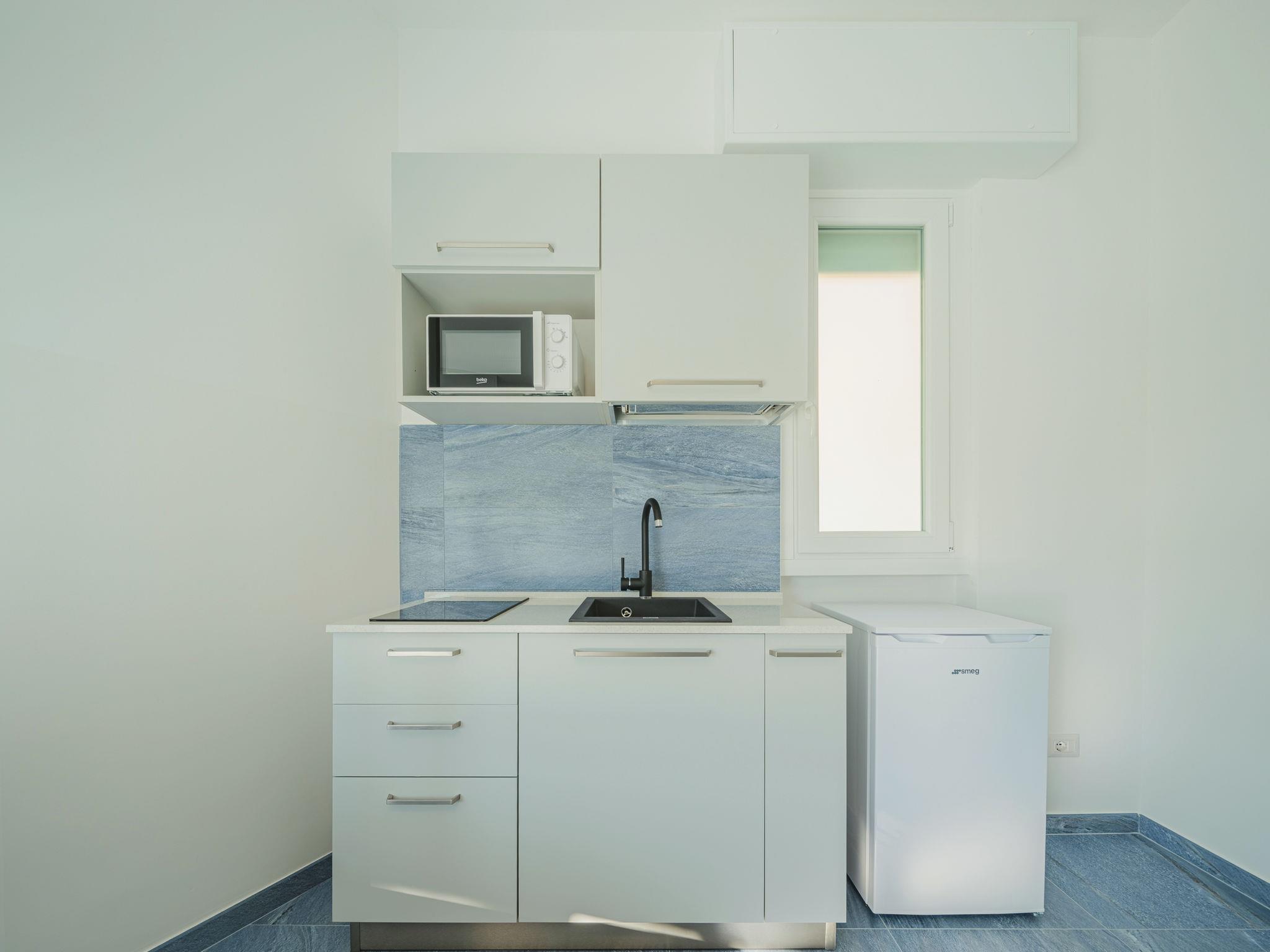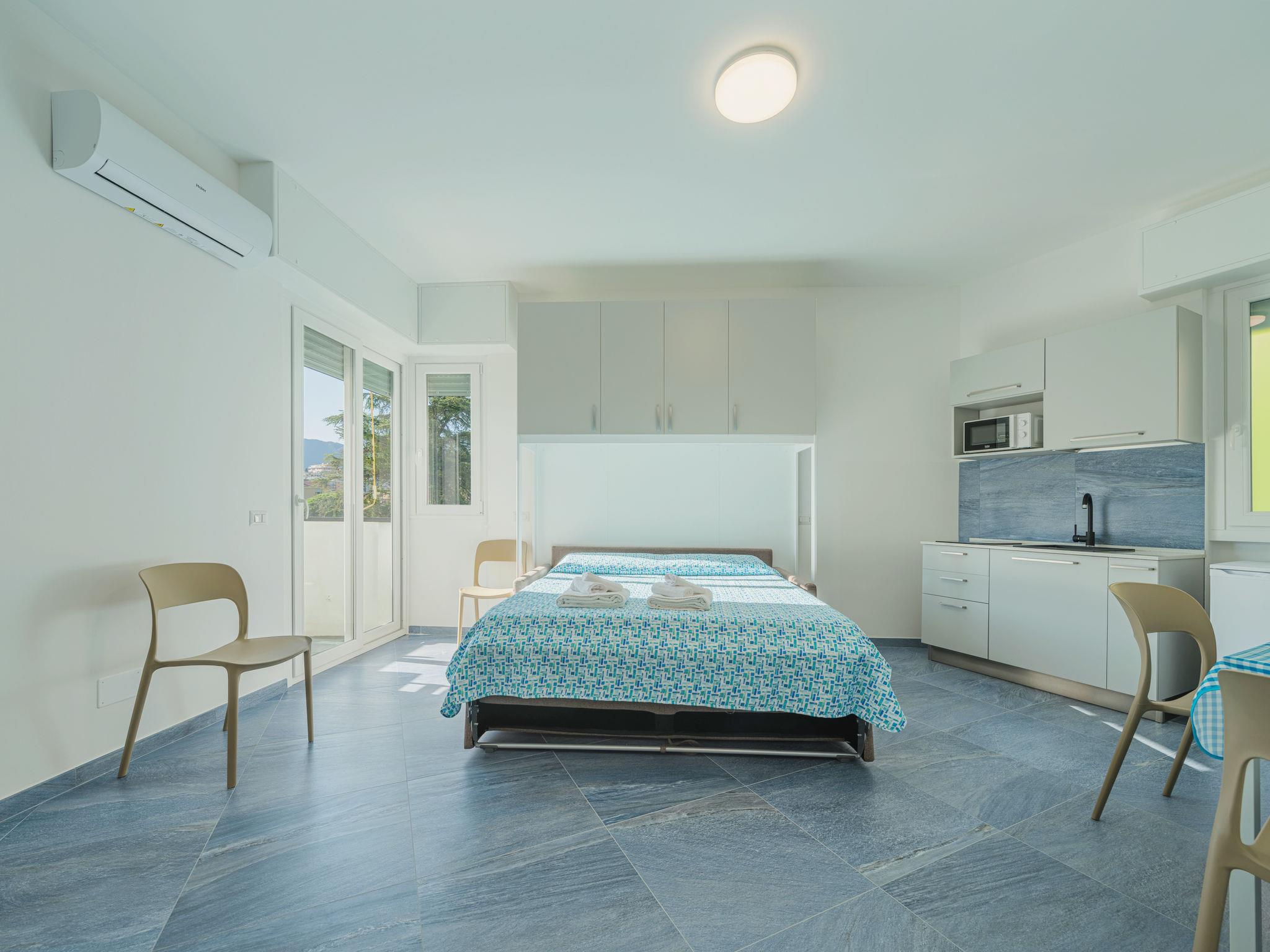 "Azul", 1-Zimmer-Studio 26 m2 im 2. Stock. Vollständig renoviert im Jahre 2023: Studio mit 1 Doppeldiwanbett, TV und elektrischem Rollladen. Ausgang zum Balkon. Kochnische (2 Induktionskochplatten, Mikrowelle, elektrische Kaffeemaschine, Kapseln für die Kaffeemaschine (2/day) gratis). Dusche/Bidet/WC. Klimaanlage, Warmluftheizung. Balkon 2 m2. Balkonmöbel. Zur Verfügung: Waschmaschine, Haartrockner. Internet (Wireless LAN, gratis). Bitte beachten: Rauchmelder, Feuerlöscher. IT010046C222Z7DK62