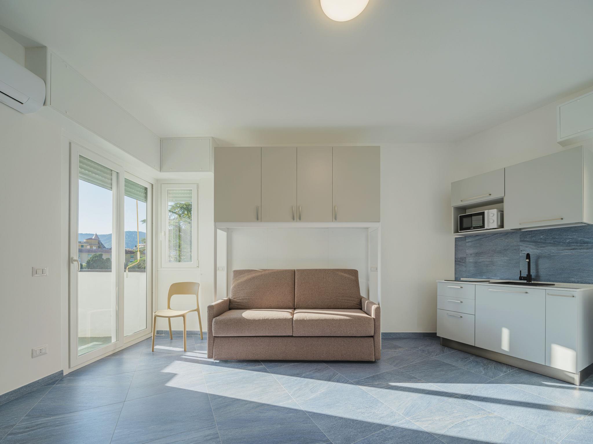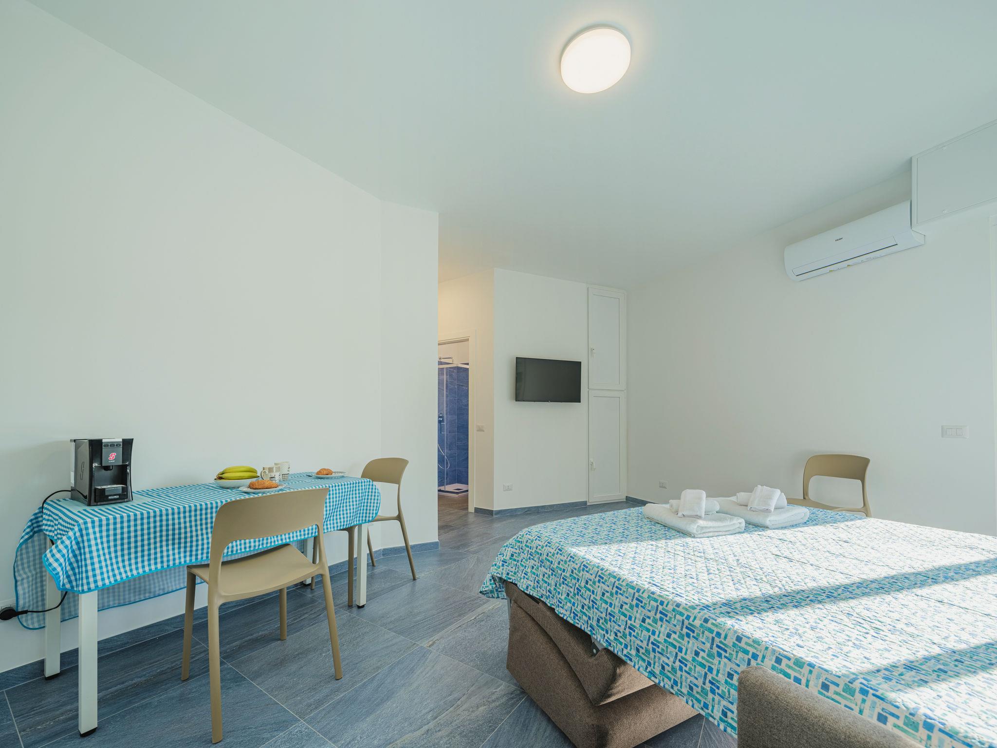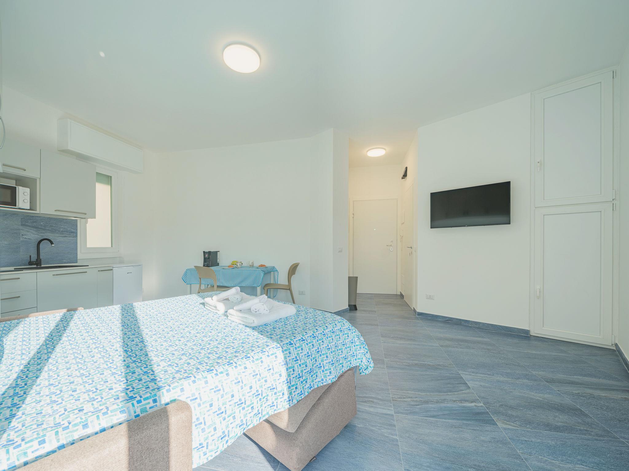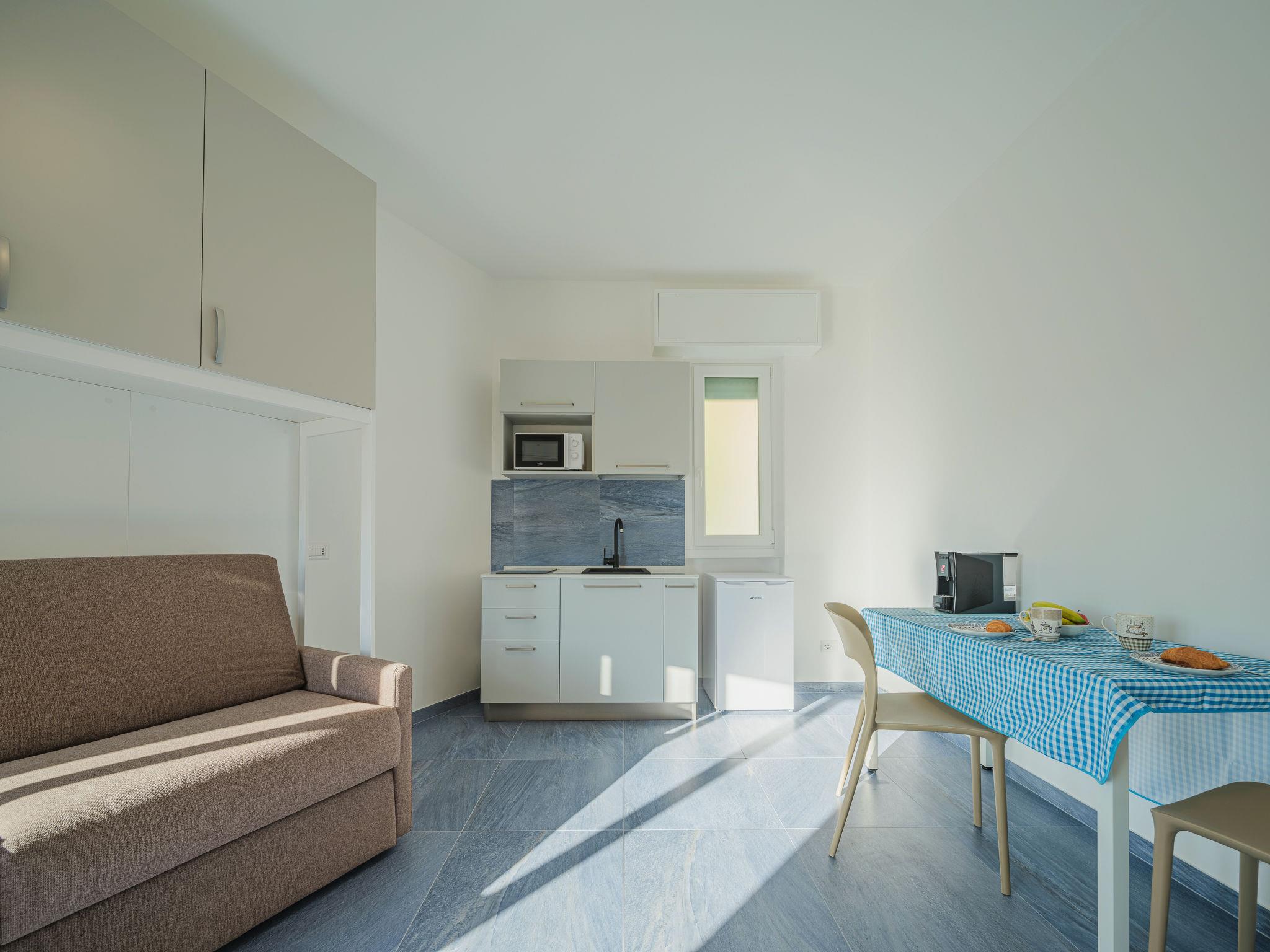 "Azul", 1-Zimmer-Studio 26 m2 im 2. Stock. Vollständig renoviert im Jahre 2023: Studio mit 1 Doppeldiwanbett, TV und elektrischem Rollladen. Ausgang zum Balkon. Kochnische (2 Induktionskochplatten, Mikrowelle, elektrische Kaffeemaschine, Kapseln für die Kaffeemaschine (2/day) gratis). Dusche/Bidet/WC. Klimaanlage, Warmluftheizung. Balkon 2 m2. Balkonmöbel. Zur Verfügung: Waschmaschine, Haartrockner. Internet (Wireless LAN, gratis). Bitte beachten: Rauchmelder, Feuerlöscher. IT010046C222Z7DK62