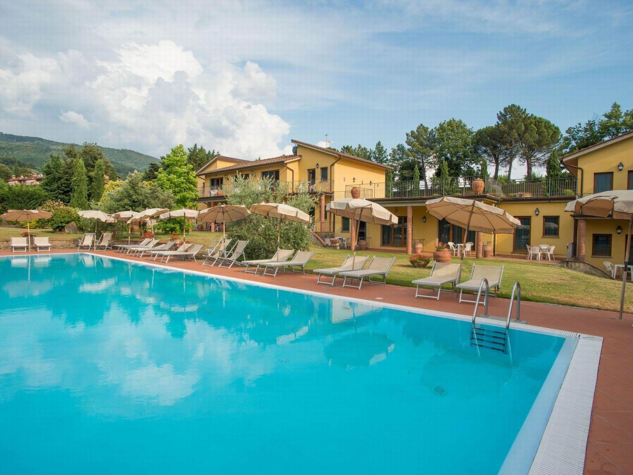 Die Anlage besteht aus 43 komfortablen Wohnungen und bietet zahlreiche Annehmlichkeiten und Unterhaltungsmöglichkeiten für die Gäste. Dazu gehören ein großer Garten, ein Schwimmbad (ca. 20 x 8 m, geöffnet von April bis Oktober), ein Kinderbecken, ein Grillplatz, eine Reitschule, ein Tennisplatz, ein Kinderspielplatz, eine Tischtennisplatte, ein Billardtisch, eine Waschküche, Fahrräder sowie Wein- und Ölverkostungen.'oliva e un ristorante.