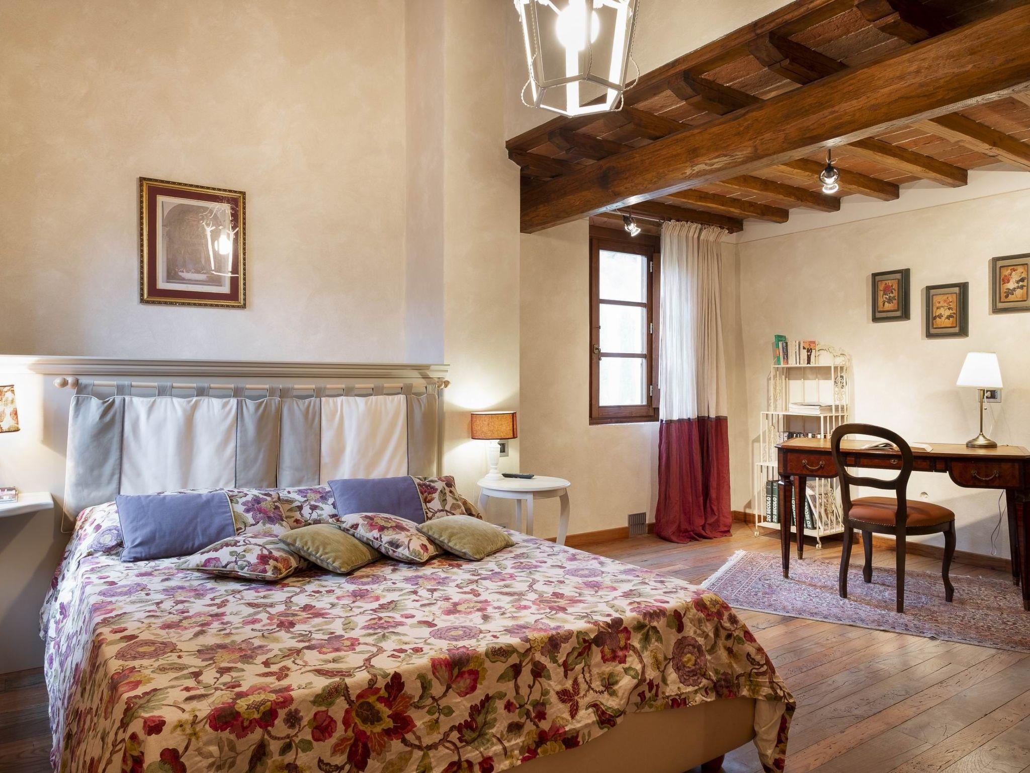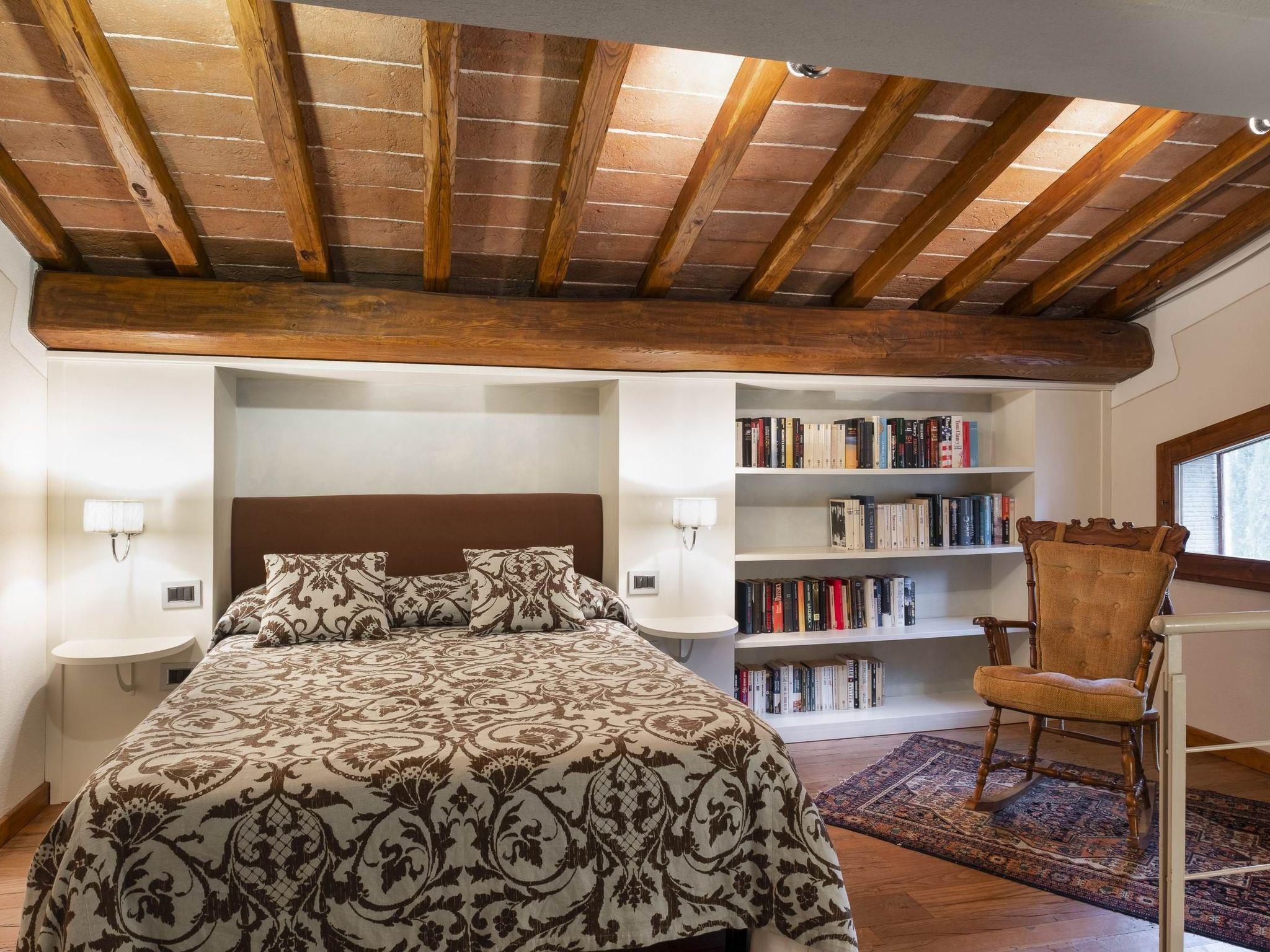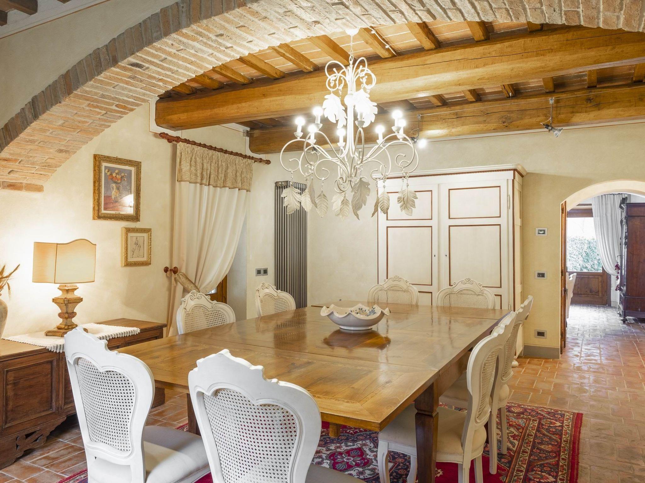 Die Villa ist ein typisch toskanisches Landhaus, dessen Stil die Einfachheit des Landlebens widerspiegelt. Die Holz- und Ziegelböden, die schmiedeeisernen Betten, die großen Sofas, die Gewölbedecken und die Bögen werden Ihre Aufmerksamkeit erregen. Alles Details, in die Sie sich verlieben werden.