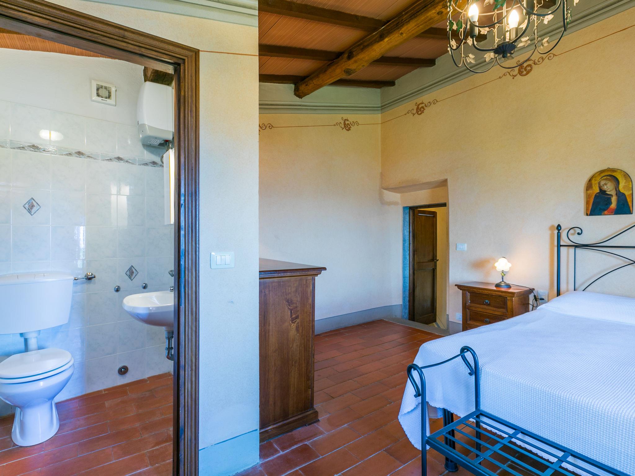 Borgo Stoppi, gelegen auf 600 m ü.M., am Fusse des Castello Poggio alla Regina, war seit dem 11. Jh. im Besitz des Grafen Guidi, ging später an andere Besitzer über und wurde im 14. Jh. zur bedeutendsten Siedlung des mittelalterlichen Gebietes der "Curia del Castiglione" und landwirtschaftliche Hauptstadt der umliegenden Bergregion, mit eigenem Rathaus und grossem Wochenmarkt. Die alten Häuser des Weilers (insgesamt 8 Wohneinheiten) wurden sehr sorgfältig restauriert, was die Schönheit dieses faszinierendes Ortes im Laufe der Jahrhundert auf hervorragende Weise unterstreicht: alte Zypressen, Eichen, Buchen, Pinien und Kastanienbäume sind stille Zeugnisse von der Natur und die Tiere wie Wildschweine, Hasen, Eichhörnchen, Fasane und div. Eulen können in der Umgebung auch beobachtet werden. Von der, mit Olivenbäumen bewachsenen, Terrasse, die eines der besten und unverfälschten Olivenöle der Region hervorbringt, können Sie ein herrliches Panorama über das Arnotal und die Chianti-Hügel geniessen. Residenz "Borgo Stoppi", 600 m.ü.M.. 2.5 km vom Zentrum von Reggello, 30 km vom Zentrum von Firenze, 35 km vom Zentrum von Arezzo, ruhige, sonnige, erhöhte Lage, 70 km vom See, in einer Sackgasse, im Grünen. Zur Mitbenutzung: Grundstück 5'000 m2, Schwimmbad (6 x 12 m, 150 cm tief, saisonale Verfügbarkeit: 22.Mai. - 08.Okt. Öffnungszeiten Schwimmbad: 08:00-21:00). Aussendusche. Heizung vor Ort zu zahlen, Heizung nur verfügbar von 01.Nov. - 07.Apr.. Steile Zufahrt bis zum Haus (800 m Naturweg). Parkplatz auf dem Grundstück. Einkaufsgeschäft 2.5 km, Lebensmittelgeschäft 2.5 km, Supermarkt 2.5 km, Restaurant 2.5 km, Bar 2.5 km, Café 2.5 km, Bushaltestelle 3.5 km, Bahnstation "Figline Valdarno" 10 km, Badesee "Lago di Bilancino" 70 km. Nahe gelegene Sehenswürdigkeiten: Firenze 40 km, Siena 86 km, Arezzo 64 km, Abazzia di Vallombrosa 16 km. Bitte beachten: Fahrzeug empfohlen. Geeignet für Familien. Das Foto ist nur ein Hausbeispiel.