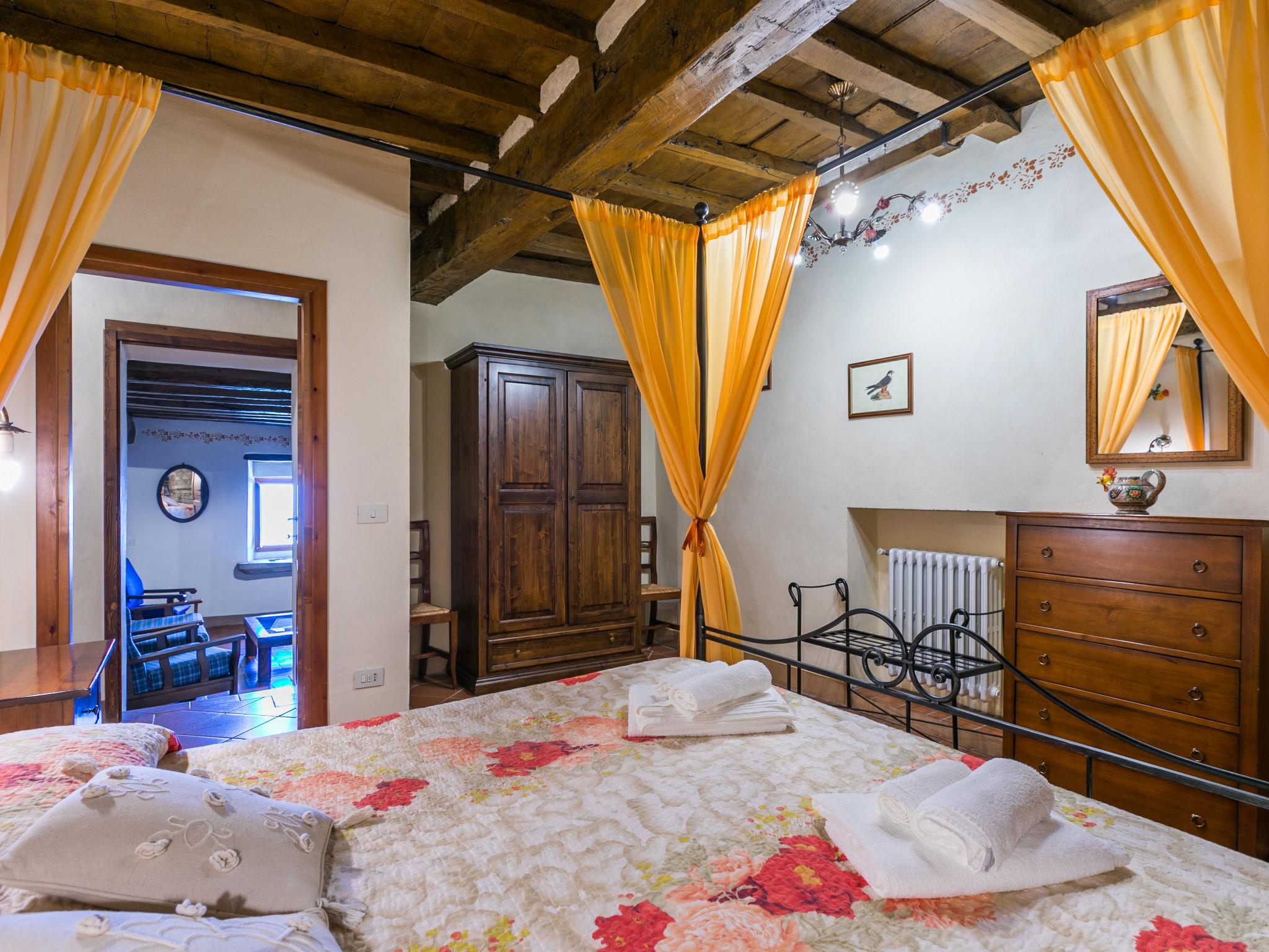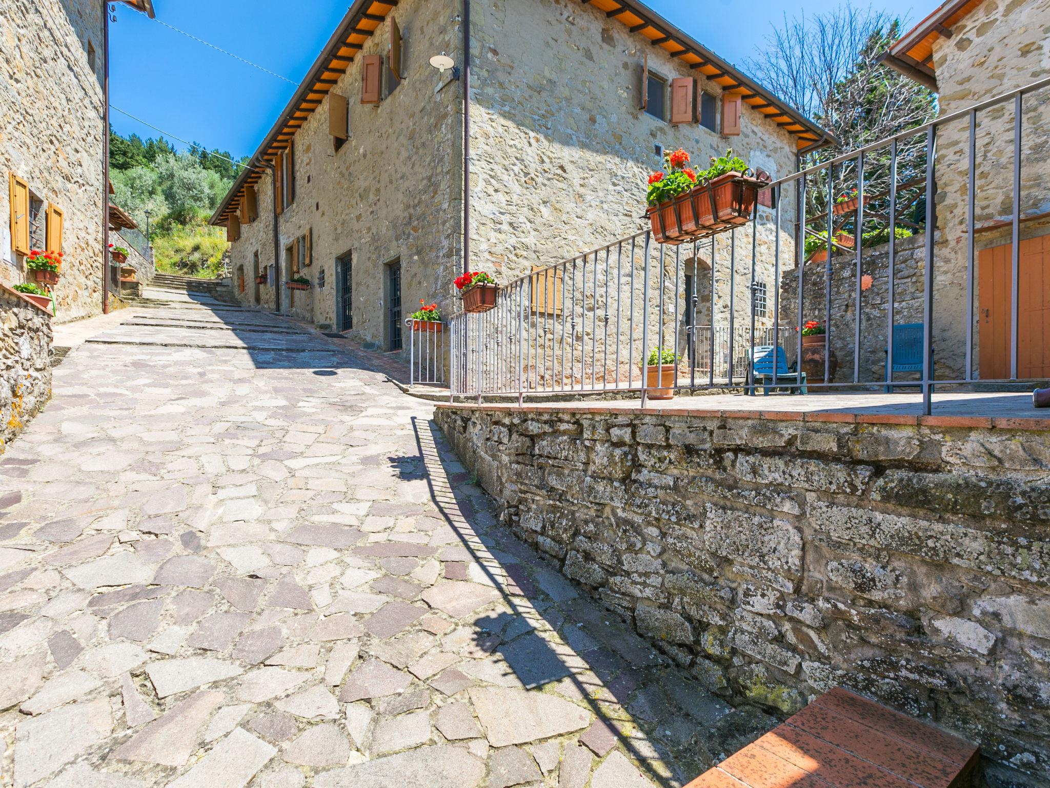 Borgo Stoppi, gelegen auf 600 m ü.M., am Fusse des Castello Poggio alla Regina, war seit dem 11. Jh. im Besitz des Grafen Guidi, ging später an andere Besitzer über und wurde im 14. Jh. zur bedeutendsten Siedlung des mittelalterlichen Gebietes der "Curia del Castiglione" und landwirtschaftliche Hauptstadt der umliegenden Bergregion, mit eigenem Rathaus und grossem Wochenmarkt. Die alten Häuser des Weilers (insgesamt 8 Wohneinheiten) wurden sehr sorgfältig restauriert, was die Schönheit dieses faszinierendes Ortes im Laufe der Jahrhundert auf hervorragende Weise unterstreicht: alte Zypressen, Eichen, Buchen, Pinien und Kastanienbäume sind stille Zeugnisse von der Natur und die Tiere wie Wildschweine, Hasen, Eichhörnchen, Fasane und div. Eulen können in der Umgebung auch beobachtet werden. Von der, mit Olivenbäumen bewachsenen, Terrasse, die eines der besten und unverfälschten Olivenöle der Region hervorbringt, können Sie ein herrliches Panorama über das Arnotal und die Chianti-Hügel geniessen. Residenz "Borgo Stoppi", 600 m.ü.M.. 2.5 km vom Zentrum von Reggello, 30 km vom Zentrum von Firenze, 35 km vom Zentrum von Arezzo, ruhige, sonnige, erhöhte Lage, 70 km vom See, in einer Sackgasse, im Grünen. Zur Mitbenutzung: Grundstück 5'000 m2, Schwimmbad (6 x 12 m, 150 cm tief, saisonale Verfügbarkeit: 22.Mai. - 08.Okt. Öffnungszeiten Schwimmbad: 08:00-21:00). Aussendusche. Heizung vor Ort zu zahlen, Heizung nur verfügbar von 01.Nov. - 07.Apr.. Steile Zufahrt bis zum Haus (800 m Naturweg). Parkplatz auf dem Grundstück. Einkaufsgeschäft 2.5 km, Lebensmittelgeschäft 2.5 km, Supermarkt 2.5 km, Restaurant 2.5 km, Bar 2.5 km, Café 2.5 km, Bushaltestelle 3.5 km, Bahnstation "Figline Valdarno" 10 km, Badesee "Lago di Bilancino" 70 km. Nahe gelegene Sehenswürdigkeiten: Firenze 40 km, Siena 86 km, Arezzo 64 km, Abazzia di Vallombrosa 16 km. Bitte beachten: Fahrzeug empfohlen. Geeignet für Familien. Das Foto ist nur ein Hausbeispiel.