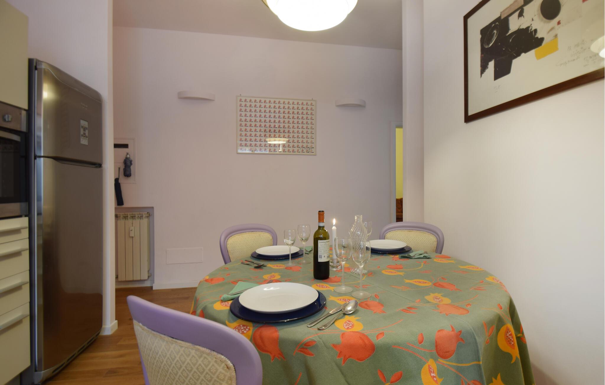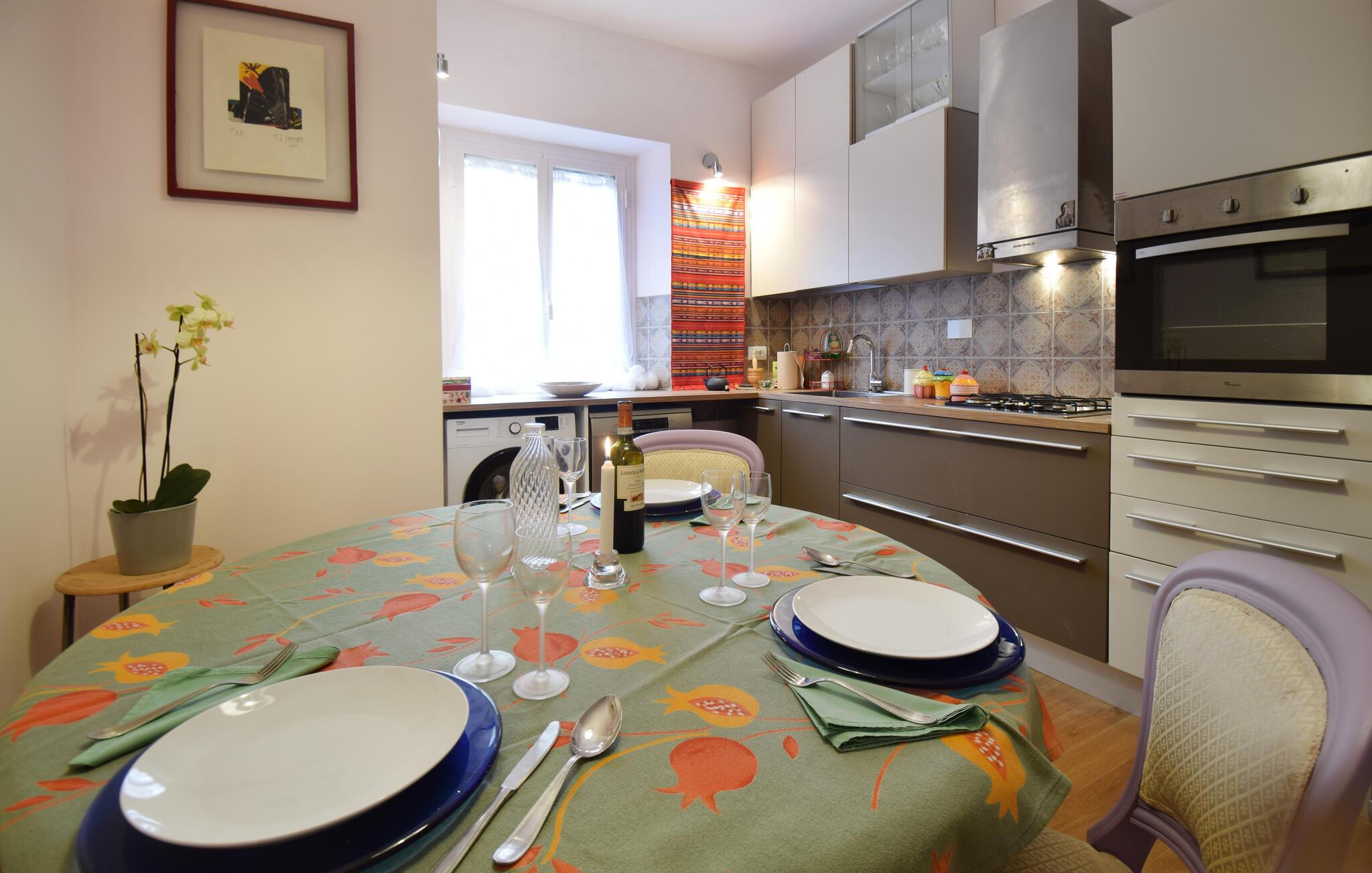 Willkommen in dieser geschmackvoll eingerichteten Ferienwohnung, die Ihnen ein komfortables Refugium während Ihrer Erkundungstouren durch das pulsierende Rom bietet. Testen Sie Ihre Kochkünste mit frischen italienischen Zutaten in der modernen Küche und genießen Sie Ihre Mahlzeiten am einladenden Esstisch. Machen Sie es sich auf dem gemütlichen Sofa bequem und lassen Sie das Erlebte bei einem Glas Wein Revue passieren.