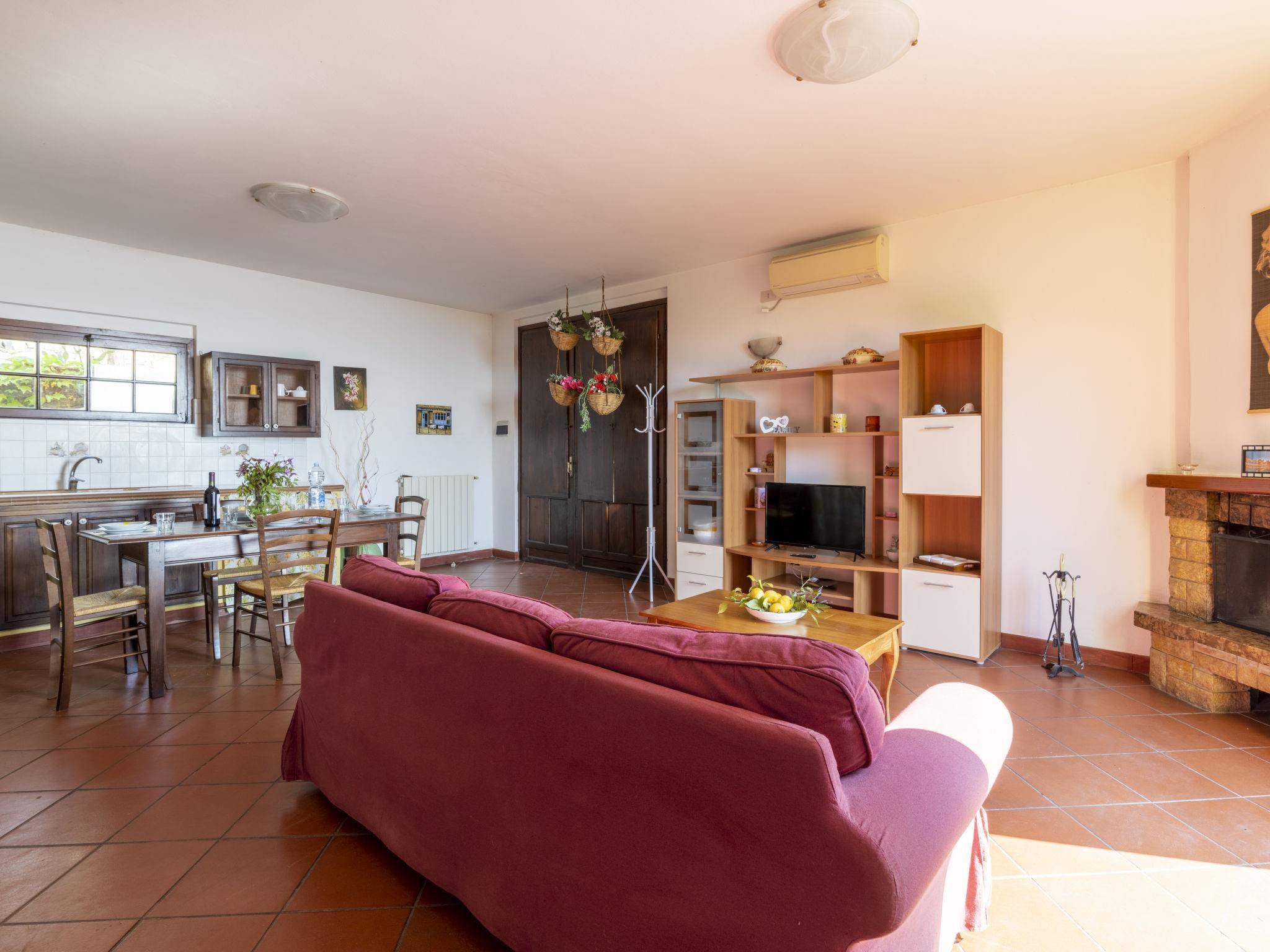 "Nicolò (SLR290)", 3-Zimmer-Haus 90 m2. Rustikal und mit viel Holz eingerichtet: Wohn-/Esszimmer mit offenem Kamin, Esstisch, Sat-TV und Stereoanlage. 1 Zimmer mit 1 Doppelbett (160 cm), Sat-TV. 1 Zimmer mit 2 Betten (80 cm). Offene Küche (Backofen, 4 Flammen, Toaster, Mikrowelle, Tiefkühler, elektrische Kaffeemaschine). Dusche/WC. G-Heizung, Klimaanlage. Terrasse überdacht, Gartensitzplatz. Terrassenmöbel, Gartengrill (mobil), Liegestühle (4). Sicht auf die Landschaft, das Meer und die Bucht. Zur Verfügung: Waschmaschine, Bügeleisen, Kinderhochstuhl, Babybett. Internet (WLAN, gratis). Parkplatz (eingezäunt). Bitte beachten: Maximal 2 Haustiere/Hunde erlaubt. Rauchmelder, Feuerlöscher. IT008054C2D3JWIBBD