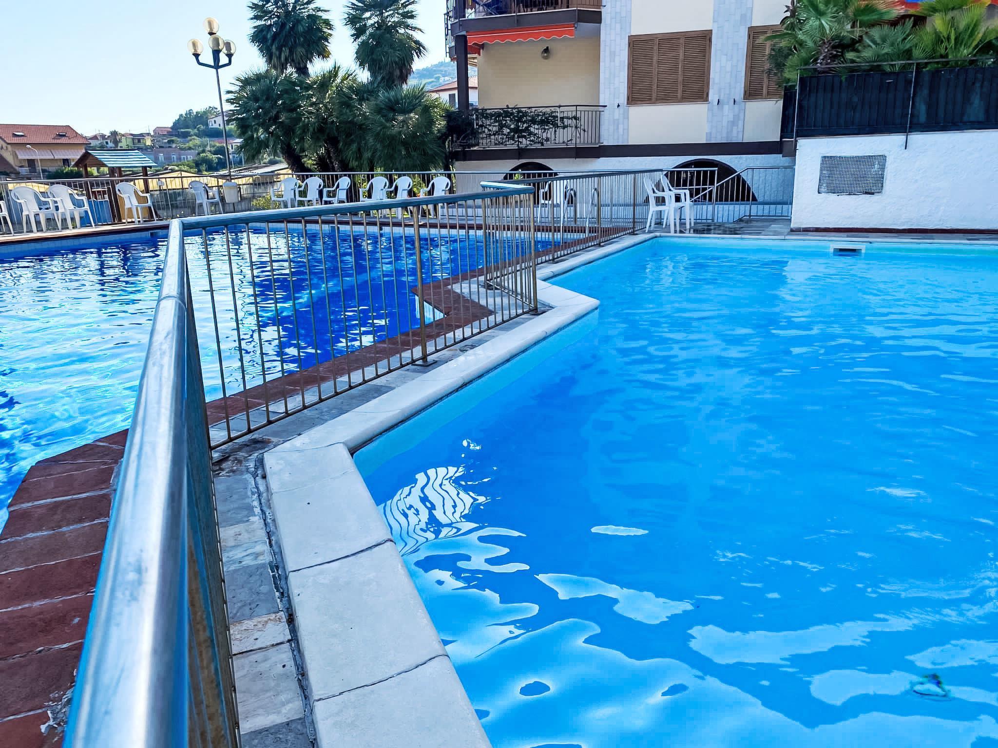 Grosse, schöne Ferienanlage auf 3 Stockwerken, renoviert, umgeben von Bäumen und Wiesen. Am Ortsrand Costarainera, ausserhalb des Ortes, 1.5 km vom Zentrum von San Lorenzo al Mare, sonnige Lage auf einem Hügel, in einem Wohnquartier, verkehrsberuhigte Zone, 400 m vom Meer. Zur Mitbenutzung: naturbelassenes Grundstück, Schwimmbad eingezäunt (30 x 15 m, 200 - 500 cm tief, saisonale Verfügbarkeit: 15.Jun. - 30.Sep. Öffnungszeiten Schwimmbad: 09:00-13:00 und 15:00-19:00) mit Meerwasser und Salzelektrolyse-Reinigungssystem. Kinderbecken, Aussendusche, Tennis (1 x Hartbelag), beleuchtet (extra), Boccia. Im Hause: Fahrstuhl, Einstellraum für Fahrräder. Steile Zufahrt bis 50 m zum Haus. Öffentliche Parkplätze. Lebensmittelgeschäft 2 km, Supermarkt 2 km, Einkaufszentrum 2 km, Restaurant 2 km, Bar 500 m, Bäckerei 2 km, Café 2 km, Fahrradverleih 2 km, Bushaltestelle 4.1 km, Sandstrand "San Lorenzo al Mare" 400 m. Tennis 20 m, Radweg 2 km. Nahe gelegene Sehenswürdigkeiten: Radweg auf der alten Bahnlinie am Meer 400 m. Badekappenpflicht.