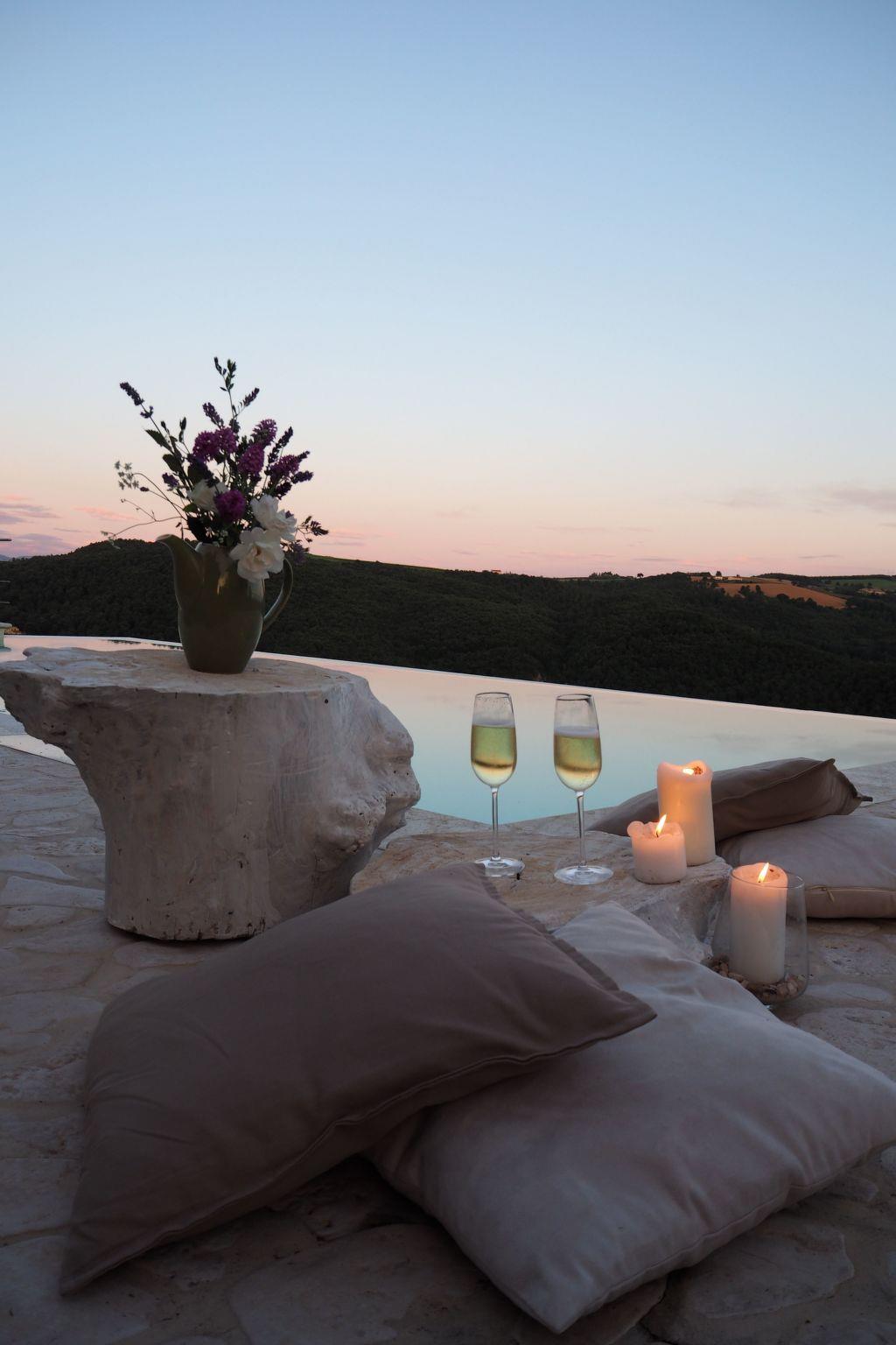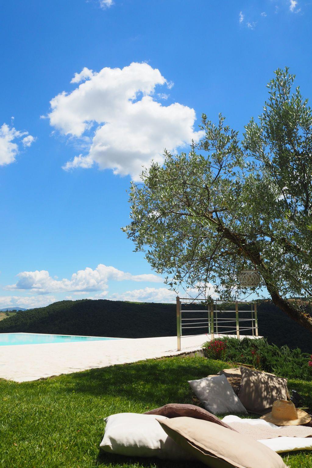 Der äußere Charme der Villa ist nicht weniger beeindruckend. Die Gäste können sich am schönen Infinity-Pool entspannen, ideal um die warmen umbrischen Sommertage zu genießen. L'esterno, attentamente progettato per rispecchiare la bellezza naturale dell'Umbria bietet den perfekten Ort, um sich zu entspannen und die Ruhe zu genießen, die nur die umbrische Landschaft bieten kann.