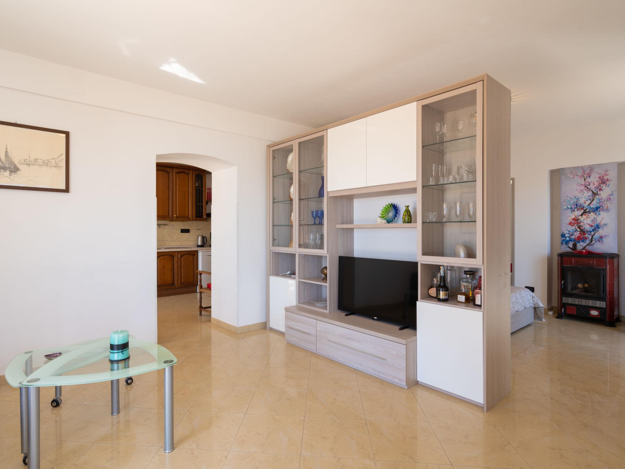 "Relax", 2-Zimmer-Wohnung 70 m2, im Erdgeschoss. Wohn-/Schlafzimmer mit 1 Doppeldiwanbett (140 cm), TV. Ausgang zur Terrasse. 1 offenes Zimmer mit 1 franz. Wandklappbett (160 cm), Schwedenofen. Küche (6 Kochplatten, Backofen, Geschirrspüler, Mikrowelle, Tiefkühler, elektrische Kaffeemaschine) mit Esstisch. Ausgang zur Terrasse. Dusche/Bidet/WC. G-Heizung. 2 grosse Terrassen, Laube. Terrassenmöbel, Gartengrill. Sehr schöne Sicht auf das Meer. Zur Verfügung: Waschmaschine, Fliegengitter, Kinderhochstuhl, Babybett. Internet (WLAN, gratis). Maximal 1 Haustier/Hund erlaubt. IT008055C2HHQOUP8U