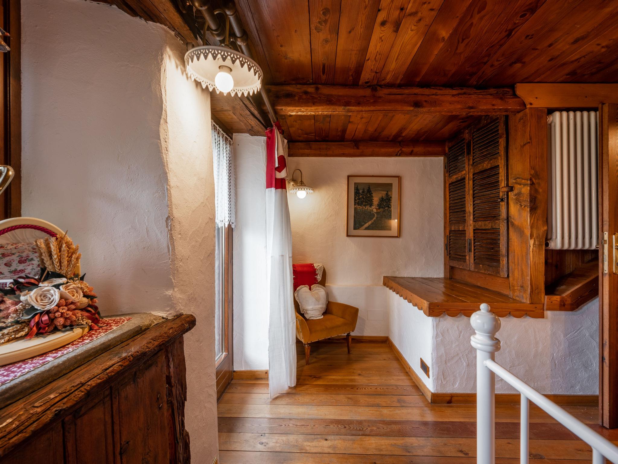 4-Zimmer-Haus 90 m2 auf 4 Stockwerken. Teilweise abgeschrägt, komfortabel und mit viel Holz eingerichtet: Wohn-/Esszimmer mit Esstisch und TV. Ausgang zum Garten. Kochnische (Backofen, Geschirrspüler, 4 Flammen, elektrische Kaffeemaschine). G-Heizung. Heizung nur verfügbar von 01.10. bis 01.05. Unteres Geschoss: kleines Wohnzimmer mit offenem Kamin (nur Deko). Obergeschoss: 1 Doppelzimmer. Ausgang zum Balkon. Dusche/Bidet/WC. 2. Obergeschoss: 1 Zimmer mit 1 Bett und 1 franz. Bett (140 cm), Dusche/WC. Parkettboden. Garten. Terrassenmöbel, Gartengrill, Liegestühle. Panoramasicht auf die Berge und das Tal. Zur Verfügung: Waschmaschine, Bügeleisen, Kinderhochstuhl, Babybett bis 3 Jahre (extra), Haartrockner. Internet (Wireless LAN, gratis). Bitte beachten: Nichtraucher-Unterkunft. Eigener Eingang. IT007066C2N75YBUAJ