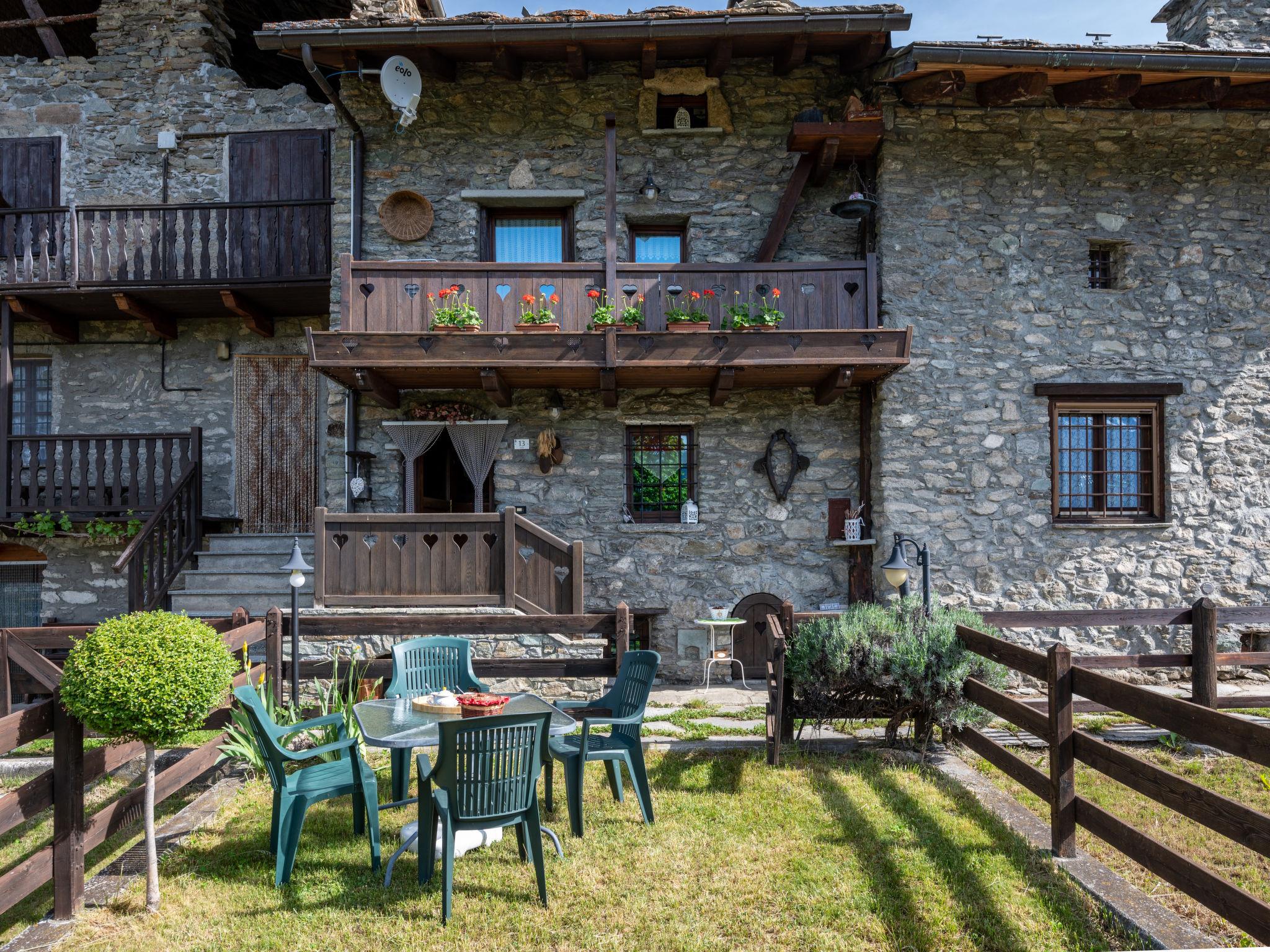 Rustikales, historisches Reihenhaus "Maison Meynet", 1'200 m.ü.M., auf 3 Stockwerken, einseitig angebaut. Im Weiler Ville sur Sarre, 8 km vom Zentrum von Sarre, ruhige Lage, Richtung Südosten. Zur Alleinbenutzung: Garten (eingezäunt) mit Rasen. Gartenmöbel, Grill. Im Hause: Einstellraum für Fahrräder, Skiraum. Im Winter bitte Schneeketten mitbringen. Parkplatz, öffentliche Parkplätze auf der Strasse. Supermarkt 8 km, Restaurant 8 km, Bar 8 km, Bushaltestelle "Sarre" 8 km, Thermalbad "Pre'-Saint-Didier" 36 km. Nahe gelegene Sehenswürdigkeiten: Courmayeur Mont Blanc 36 km, Ovovia Aosta-Pila 12 km, pista di fondo Saint Nicholas 13 km. Bitte beachten: Fahrzeug empfohlen.