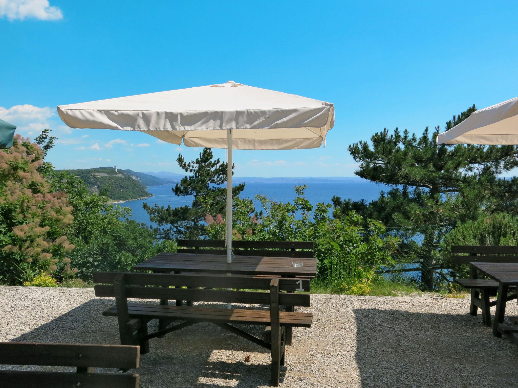 Grosses, kinderfreundliches Feriendorf "Camping Village Mare Pineta". 115 Häuser im Ferienresort. 6 Wohnungen in der Residenz. 1 km vom Zentrum von Sistiana, 18 km vom Zentrum von Trieste, erhöhte Lage am Hang, 1.6 km vom Meer, 1.6 km vom Strand. Zur Mitbenutzung: Grundstück 10 ha (eingezäunt) mit Bäumen, Schwimmbad (30 x 20 m, saisonale Verfügbarkeit: 23.Mai. - 15.Sep.). Kinderbecken, Aussendusche, Tennis (extra), Tischtennis, Basketball (extra), Beachvolleyball, Kinderspielplatz. In der Anlage: Empfang, Bistro, Einkaufsmöglichkeit, Waschmaschine (zur Mitbenutzung, extra). Lebensmittelgeschäft 100 m, Supermarkt 1 km, Bushaltestelle 200 m, Bahnstation "Trieste Centrale" 18 km, Felsstrand "Baia Sistiana" 1.6 km. Nahe gelegene Sehenswürdigkeiten: Castello di Duino 2 km, Castello di Miramare 13 km, Sentiero Rilke 350 m. Bitte beachten: Animation in der Saison. Geeignet für Familien. Badekappenpflicht.