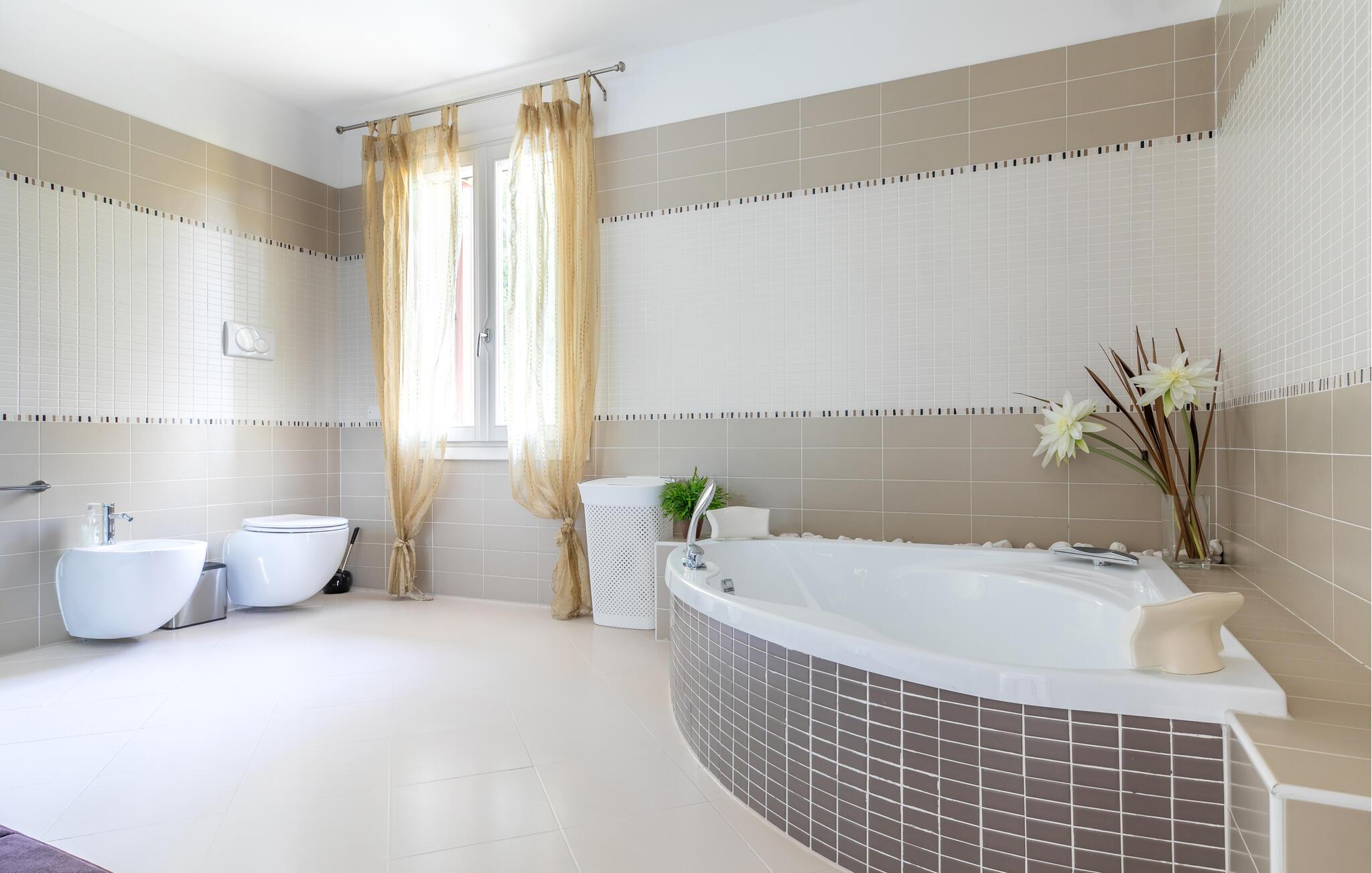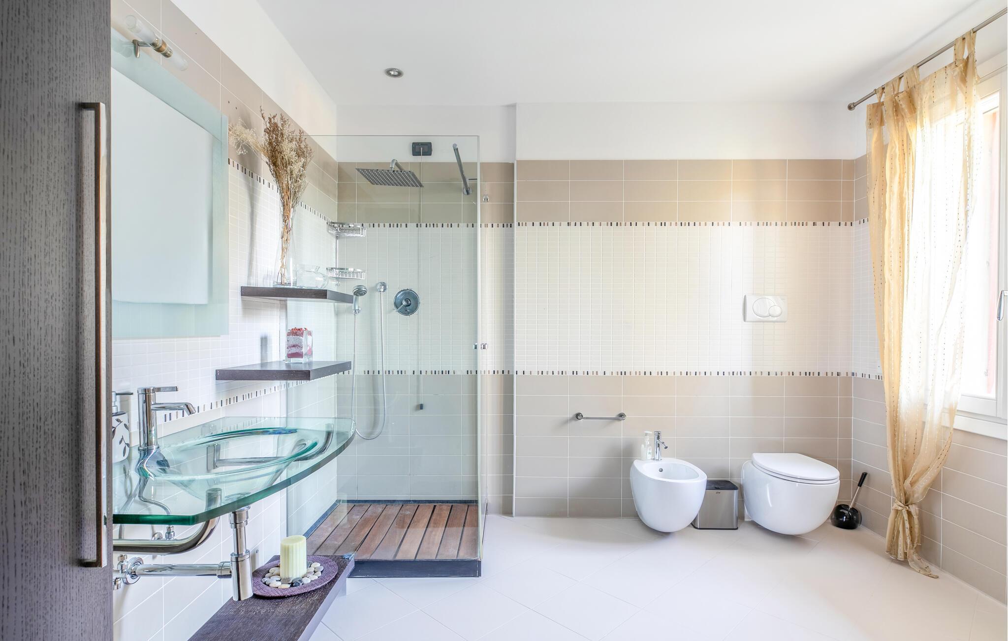 Badezimmer (nr. 2) - WC. Warmes und kaltes Wasser. Dusche und Badewanne