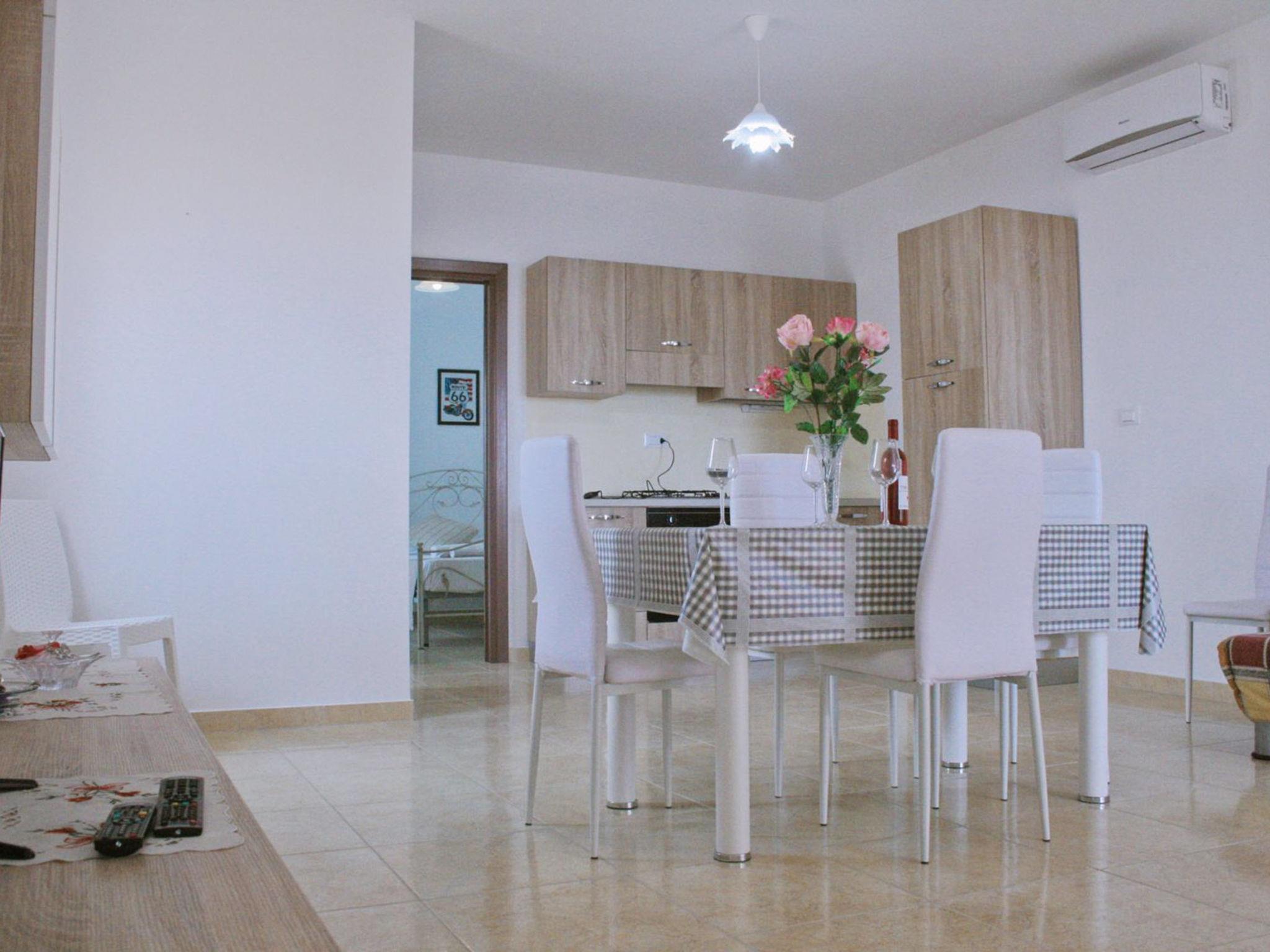 5-Zimmer-Wohnung 100 m2 auf 2 Stockwerken, im erhöhten Erdgeschoss. Objekt geeignet für 8 Erwachsene + 2 Kinder. Hell, renoviert, komfortabel und modern eingerichtet: Wohn-/Schlafzimmer mit 1 Diwanbett, Esstisch, TV, Klimaanlage und Warmluftheizung. Ausgang zur Terrasse. 1 Zimmer mit 1 Doppelbett. Dusche/Bidet/WC. Unteres Geschoss: Durchgangszimmer mit 1 Diwanbett. 1 Zimmer mit 1 Doppelbett. 2 Zimmer, jedes Zimmer mit 2 Betten. Dusche/Bidet/WC. Heizung nicht in allen Räumen. Terrasse überdacht. Terrassenmöbel. Sicht auf das Meer. Zur Verfügung: Waschmaschine. Parkplatz (eingezäunt, 2 Autos). Bitte beachten: Maximal 1 Haustier/Hund erlaubt. Eigener Eingang. IT075050B400054183