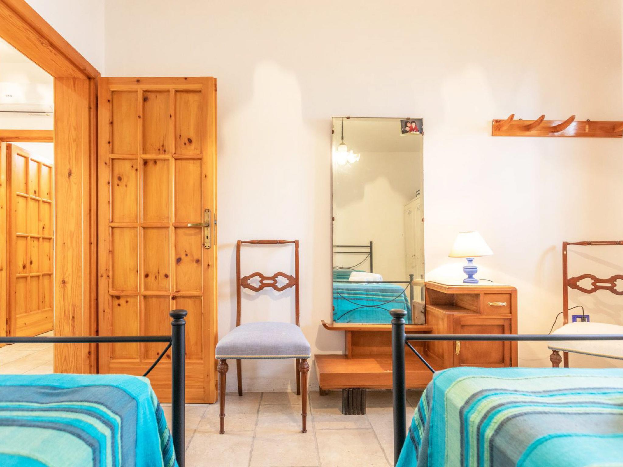 "Azzurro", 3-Zimmer-Wohnung 90 m2, im Erdgeschoss. Komfortabel und antik eingerichtet: grosses Wohn-/Esszimmer mit offenem Kamin (nur Deko), TV, Klimaanlage und Warmluftheizung. Ausgang zur Terrasse. Durchgangszimmer mit Klimaanlage und Warmluftheizung. 1 Doppelzimmer. 1 Zimmer mit 2 Betten. Offene Küche (Backofen, 4 Flammen). Dusche/Bidet/WC. Heizung nicht in allen Räumen. Terrasse. Terrassenmöbel, Gartengrill. Zur Verfügung: Waschmaschine. Internet (WLAN, gratis). Parkplatz (eingezäunt). Bitte beachten: Maximal 1 Haustier/Hund erlaubt. Eigener Eingang. IT075050C200035023