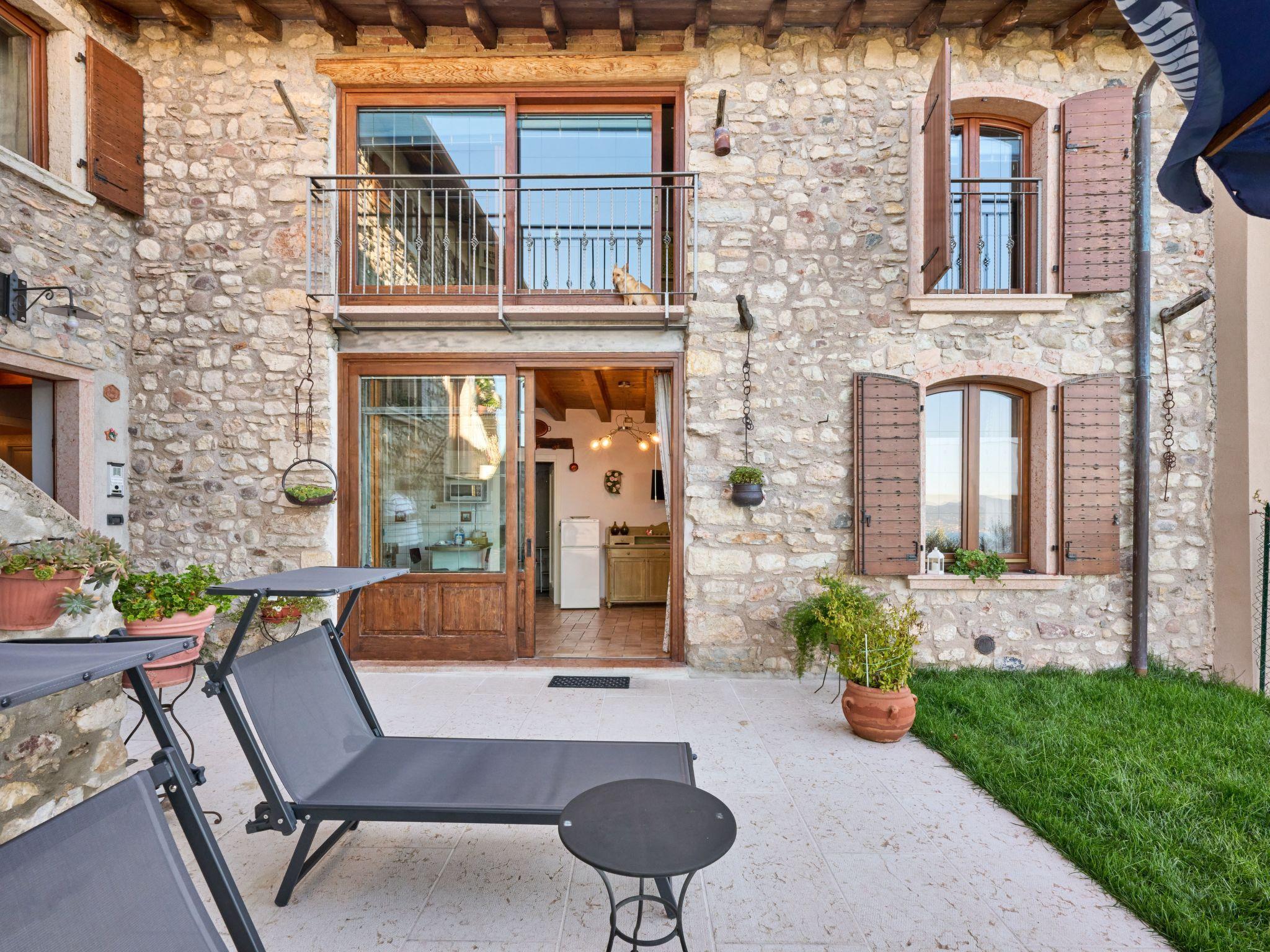 Treten Sie hinaus in den traumhaften privaten Garten, der zur exklusiven Nutzung bereitsteht, und genießen Sie den einzigartigen Ausblick auf den Gardasee. Der Garten ist komplett hundesicher eingezäunt, somit können sich auch vierbeinige Gäste mittlerer Größe frei bewegen. Entspannen Sie auf den Sonnenliegen unter dem Schirm, nutzen Sie den Grill für gesellige Abende oder genießen Sie Ihre Mahlzeiten im Freien an dem bereitgestellten Tisch mit Stühlen – dieser Außenbereich lässt keine Wünsche offen.