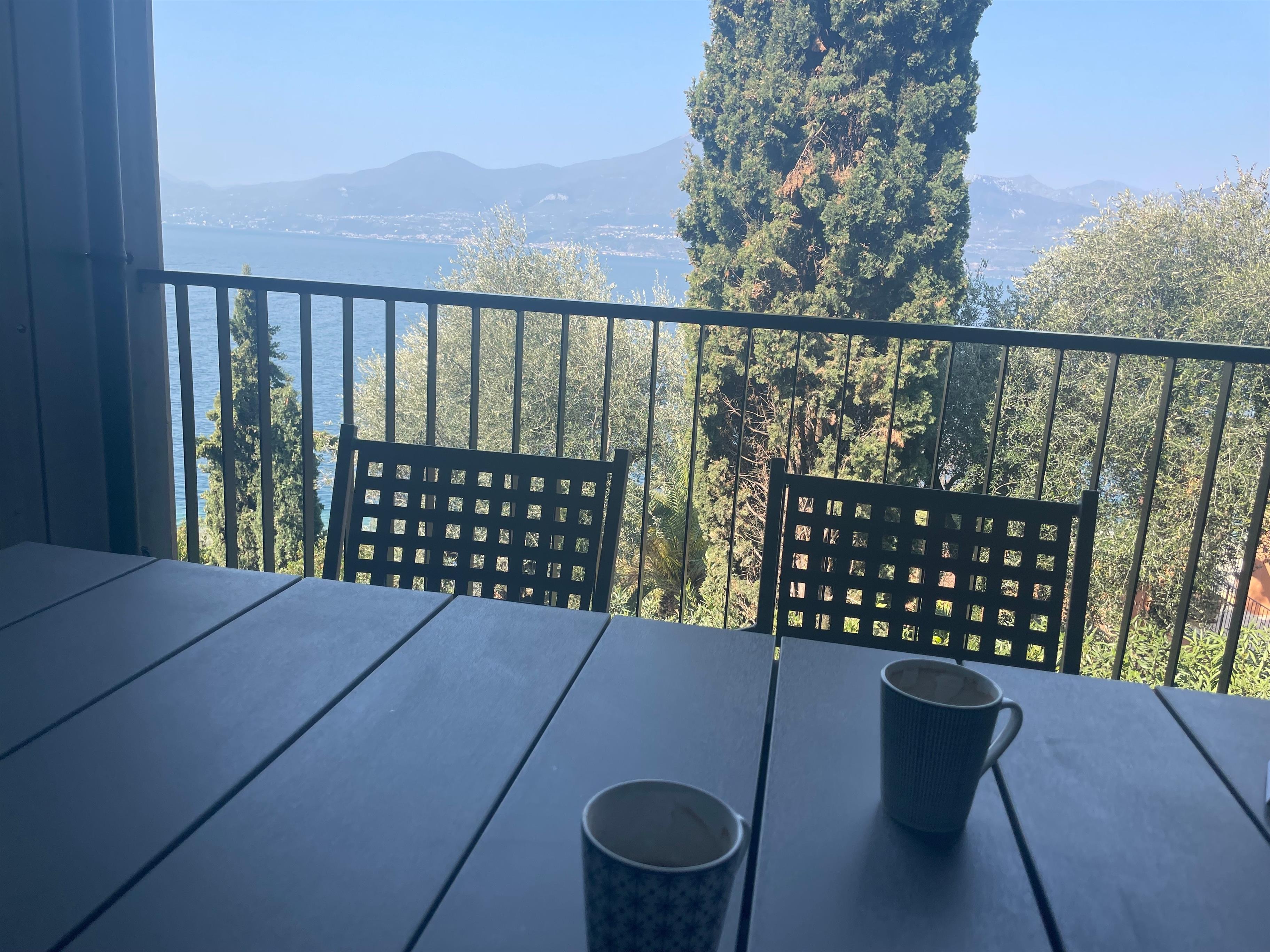 Die von Olivenbäumen und Zypressen umgebenen ruhige Anlage ist sehr naturbezogen, mit ihren traumhaften Seeblick, von allen Fenstern und von der Terrasse zu sehen ist.