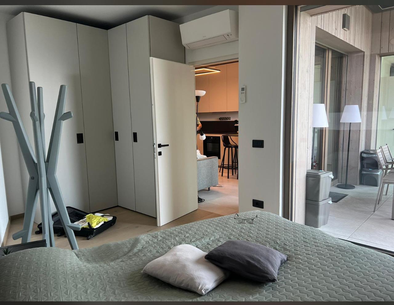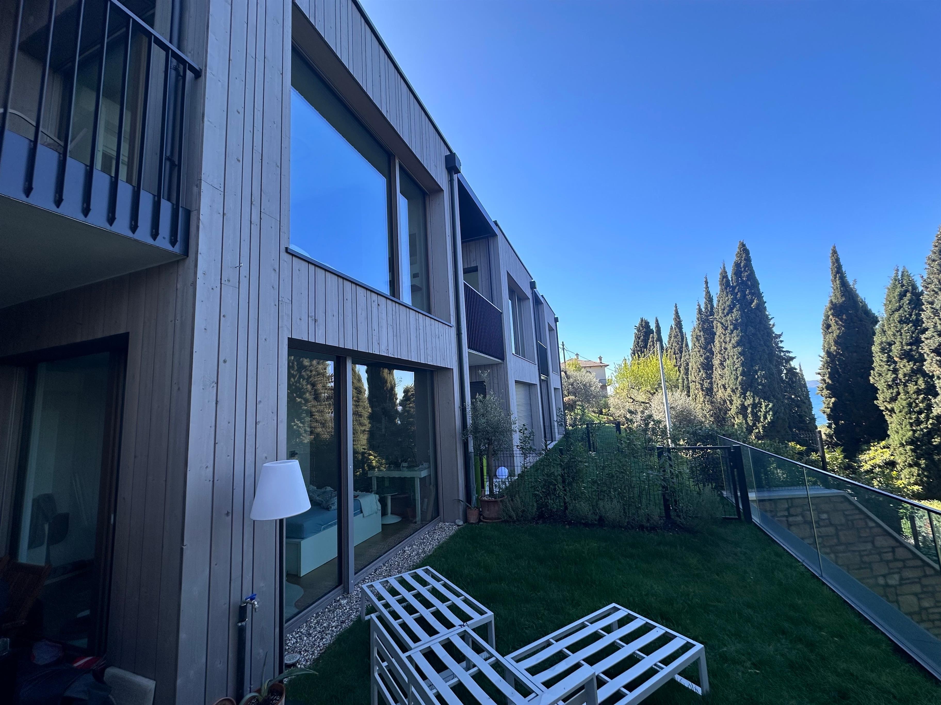 Das luxuriöse Ferienapartment ist eine von 8 Wohnein- heiten der exklusiven Villa Inessa. Sie liegt direkt am Hang und bietet einen majestätischen Panoramablick auf den Gardasee und die umliegenden Berge.