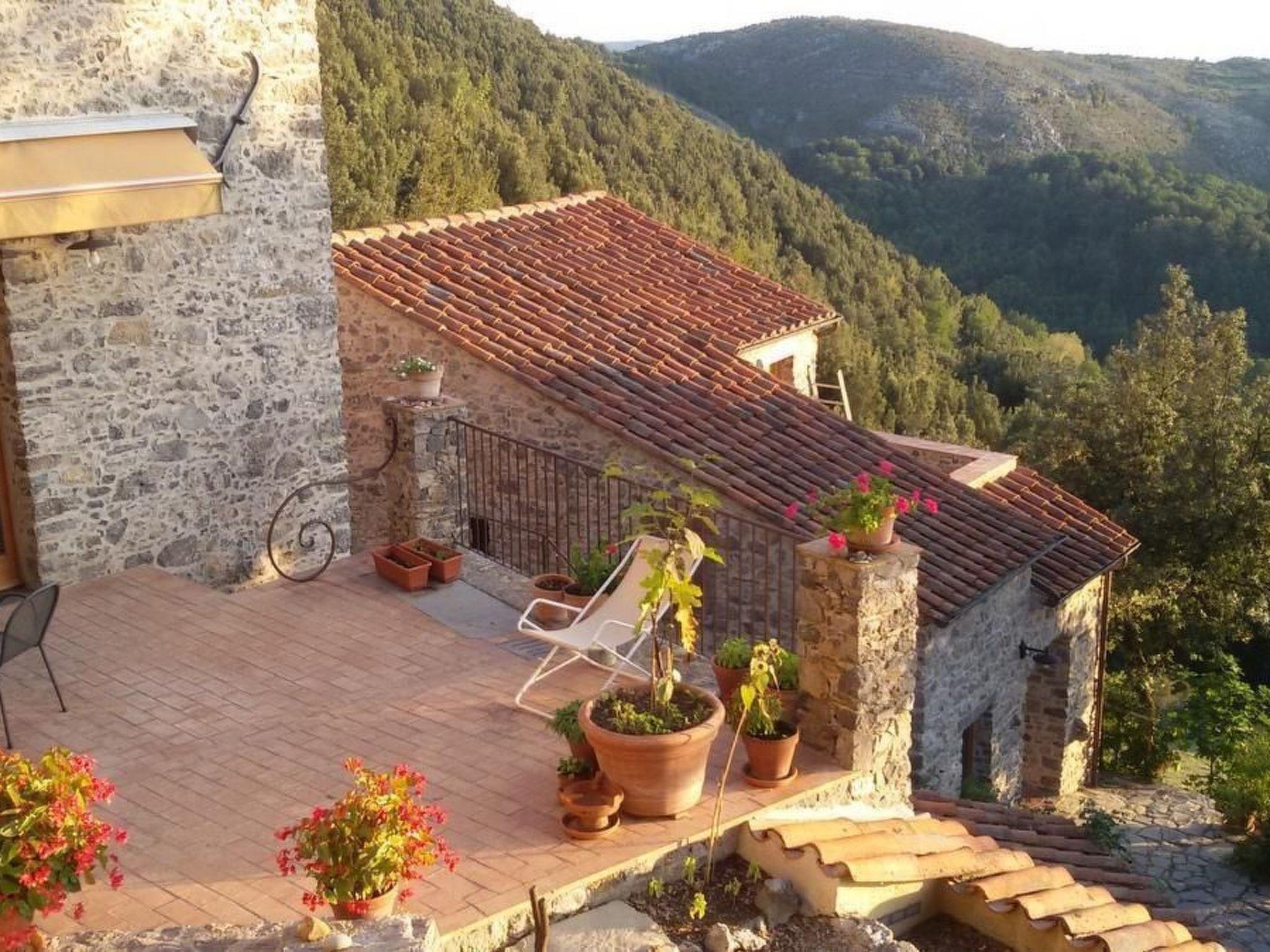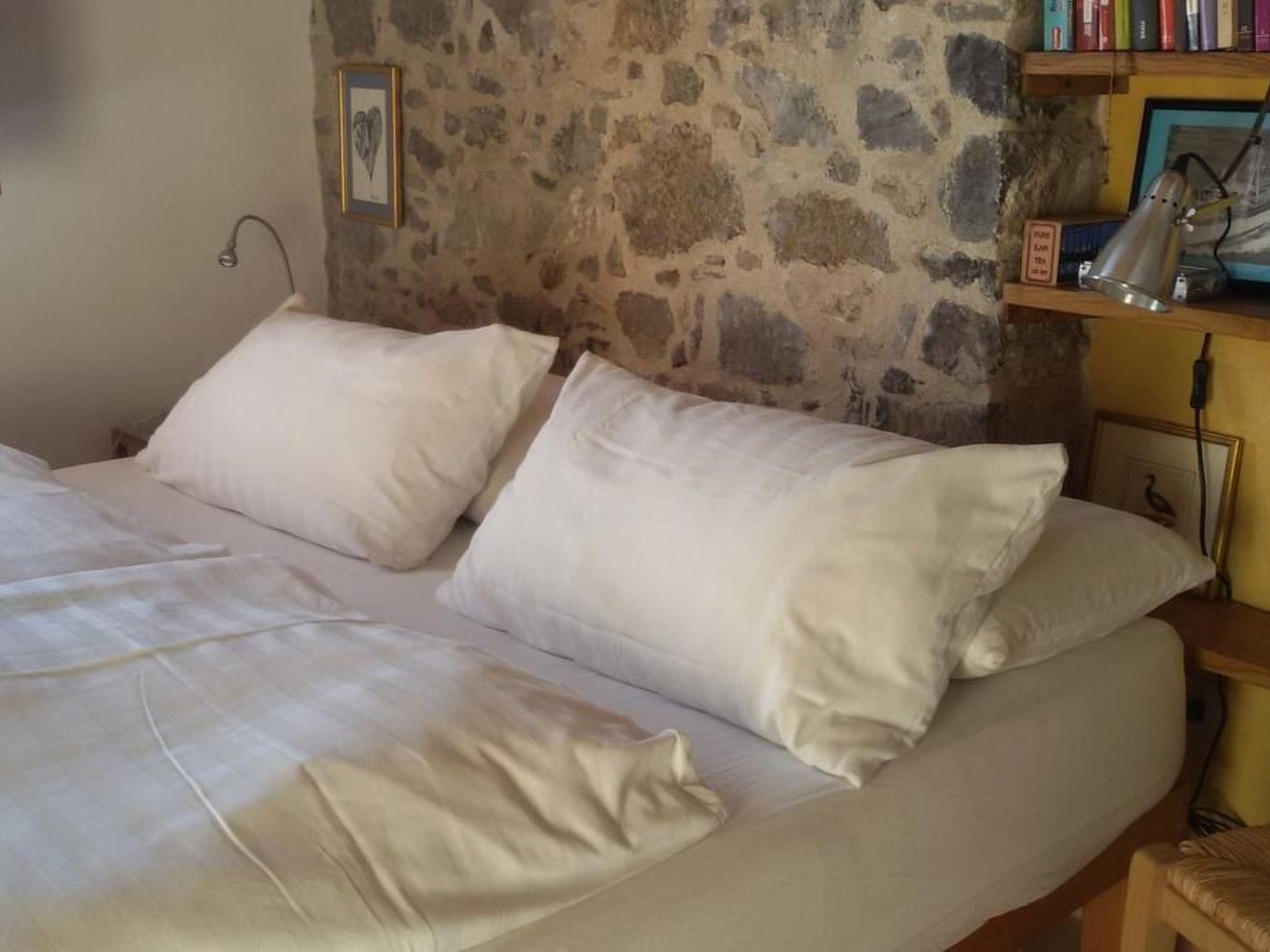 Diese Ferienwohnung befindet sich zusammen mit einer grösseren Ferienwohnung in einem freistehenden Natursteinhaus und bietet mit gut 40 m² Wohnfläche Platz für bis zu drei Personen. Auf dem Grundstück von 6000 qm sind noch zwei weitere Gebäude, die vermietet werden.