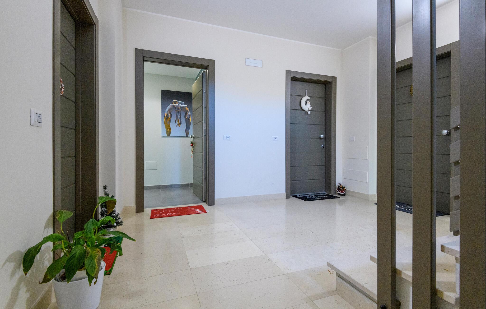 Erleben Sie einen erholsamen Urlaub in dieser modernen Ferienwohnung in Tortoreto Lido. Hier erwartet Sie ein stilvolles Ambiente, das durch liebevolle Details und hochwertige Einrichtung besticht. Die lichtdurchfluteten Räume schaffen eine einladende Atmosphäre, in der Sie die gemeinsamen Stunden mit Ihrer Familie genießen können. Kochen Sie zusammen in der gut ausgestatteten Küche oder lehnen Sie sich nach einem aufregenden Tag entspannt auf dem Sofa zurück.