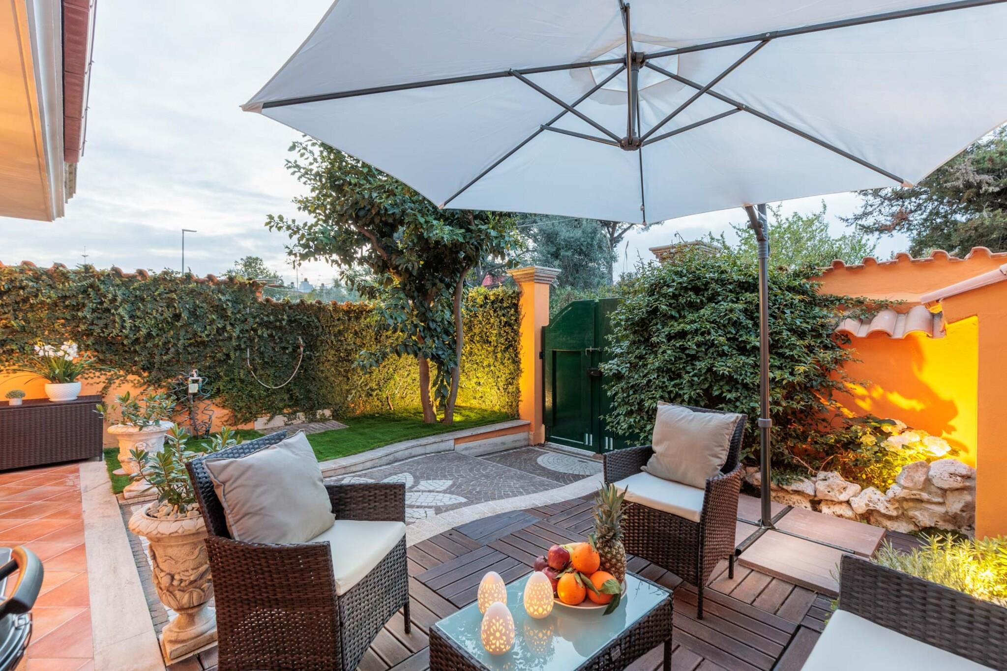 Entdecken Sie einen ruhigen Rückzugsort inmitten üppiger Natur, nur 1 km von wunderschönen Stränden und ruhigen Pinienwäldern entfernt. Dieses charmante Erdgeschoss-Apartment ist ausschließlich für Erwachsene und bietet bequem Platz für bis zu drei Gäste. Es verfügt über einen privaten Garten und Zugang zu einem Whirlpool – ideal für Entspannung und Privatsphäre von Mai bis September. Zu den Annehmlichkeiten gehören eine gemütliche Veranda, ein Grill, eine Lounge im Freien und eine voll ausgestattete Küche für einen angenehmen Aufenthalt. Die Nähe zur Küste bietet zahlreiche Aktivitäten. Verbringen Sie entspannte Tage an Sandstränden mit atemberaubendem Blick auf die Dünen oder besuchen Sie das elegante Marine Village, das für seine Annehmlichkeiten bekannt ist. Shoppingbegeisterte werden das nahegelegene Castel Romano Outlet lieben, das italienische und internationale Top-Marken zu reduzierten Preisen anbietet. Familien können spannende Abenteuer in Cinecittà World erleben, einem von der Filmindustrie inspirierten Themenpark, oder im fünf Minuten entfernten Wasserpark und Zoo planschen. Geschichtsinteressierte können die bemerkenswerten Ausgrabungen von Ostia Antica erkunden und eine faszinierende Reise durch antike Ruinen unternehmen. Die nahegelegenen Städte Nettuno und Anzio bieten Küstencharme, köstliche Meeresfrüchte und Fährverbindungen zu den atemberaubenden Inseln Ponza und Ventotene. Für die Erkundung dieser Sehenswürdigkeiten empfiehlt sich ein Mietwagen. Genießen Sie die Ruhe dieses idyllischen Rückzugsortes und profitieren Sie von der Nähe zu zahlreichen faszinierenden Aktivitäten. Hinweis: Kurtaxe ist vor Ort zu entrichten.