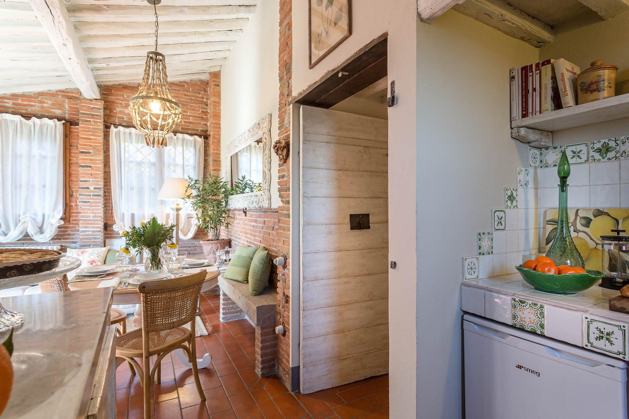 Entdecken Sie Ihren ruhigen Rückzugsort im Herzen der Toskana, nur 800 Meter von Pescia und eine kurze Autofahrt von historischen Städten wie Lucca und Pistoia entfernt. Dieses reizende Cottage, einst Rückzugsort des lokalen Adels, bietet einen idyllischen Rückzugsort inmitten üppiger Vegetation und gepflegter Gärten und lädt zum Entspannen unter der warmen toskanischen Sonne ein. Zwei Fahrräder stehen Ihnen für Ihre Abenteuer zur Verfügung, und die Erkundung der reizvollen Landschaft trägt zu einem authentischen italienischen Erlebnis bei. Das Cottage bietet Platz für bis zu vier Gäste und verfügt über zwei gemütliche Doppelzimmer, ein geräumiges Badezimmer und eine voll ausgestattete Küche. Das Wohnzimmer verbindet traditionellen Luxus mit modernen Annehmlichkeiten, während Klimaanlage und zuverlässiges WLAN für Ihren Komfort während Ihres gesamten Aufenthalts sorgen. Bewundern Sie die bezaubernde Fassade mit ihren roten Ziegeln und Holzakzenten, die an ein Märchenhaus aus Hänsel und Gretel erinnern. Frau Rosa, Ihre freundliche Gastgeberin nebenan, begrüßt Sie gerne mit hausgemachten Leckereien und lädt Sie ein, die Aromen der Toskana bei einem Stück ihres berühmten Kuchens oder frischer Pasta zu genießen. Genießen Sie ein bezauberndes Abendessen im Freien unter einer schattigen Pergola, umgeben von der sorgfältig gepflegten Anlage, die endlose Entspannung verspricht. Sonnen Sie sich bei einem Glas Rotwein aus der Region oder vertiefen Sie sich in ein gutes Buch, während die sanfte Brise durch den Garten weht. Dieses Cottage ist ideal für Familien oder Paare, die Ruhe und ein authentisches toskanisches Lebensgefühl suchen. Es ist ein fantastischer Ausgangspunkt für die Erkundung nahegelegener Sehenswürdigkeiten wie Florenz, Pisa und der malerischen Cinque Terre und macht Ihren Toskana-Urlaub zu einem wahr gewordenen Traum. Hinweis: Kurtaxe ist vor Ort zu entrichten.