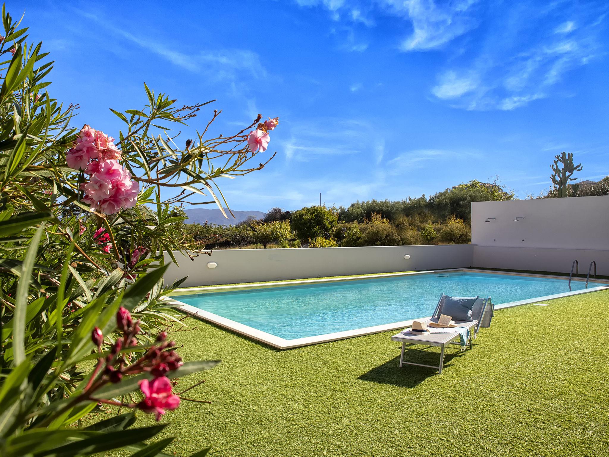 "Acqua Marina", 3-Zimmer-Wohnung 60 m2 im 1. Stock. Komfortabel und modern eingerichtet: Wohn-/Esszimmer mit 1 Doppeldiwanbett und TV (Flachbildschirm). Ausgang zur Terrasse. 1 Doppelzimmer. 1 Zimmer mit 1 Bett. Ausgang zur Terrasse. Kochnische (4 Kochplatten, Backofen, Toaster, Wasserkocher, Mikrowelle, Tiefkühler). Ausgang zur Terrasse. Dusche/Bidet/WC. (extra), Klimaanlage. Grosse Terrasse überdacht. Terrassenmöbel, Gartengrill. Sicht auf das Meer und das Tal. Zur Verfügung: Waschmaschine, Bügeleisen, Haartrockner. Internet (WLAN, gratis). Parkplatz Nr. 6 beim Haus. Das Schwimmbad ist 40 Meter vom Haus entfernt. IT090079C2000R5265