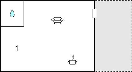 Badezimmer 3m2 (nr. 1) - WC. Warmes und kaltes Wasser. Dusche