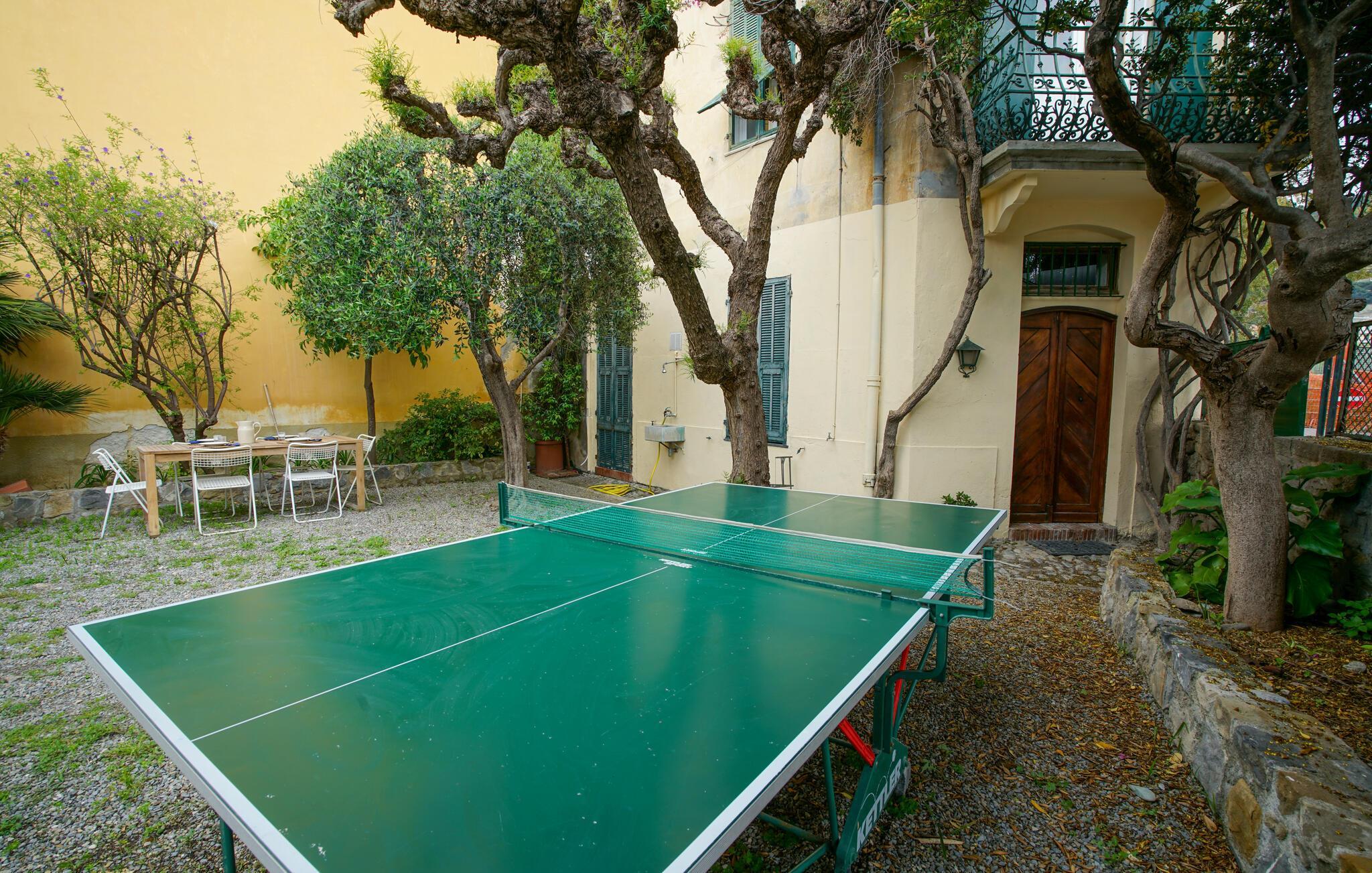 Genießen Sie im Außenbereich die Ruhe und das mediterrane Ambiente im gepflegten Garten mit Palmen und blühenden Pflanzen. Spielen Sie eine Runde Tischtennis oder entspannen Sie bei einem Glas Wein an der frischen Luft. Der Essbereich im Freien lädt dazu ein, Ihre Mahlzeiten unter freiem Himmel zu genießen, während Sie die Meeresbrise spüren.