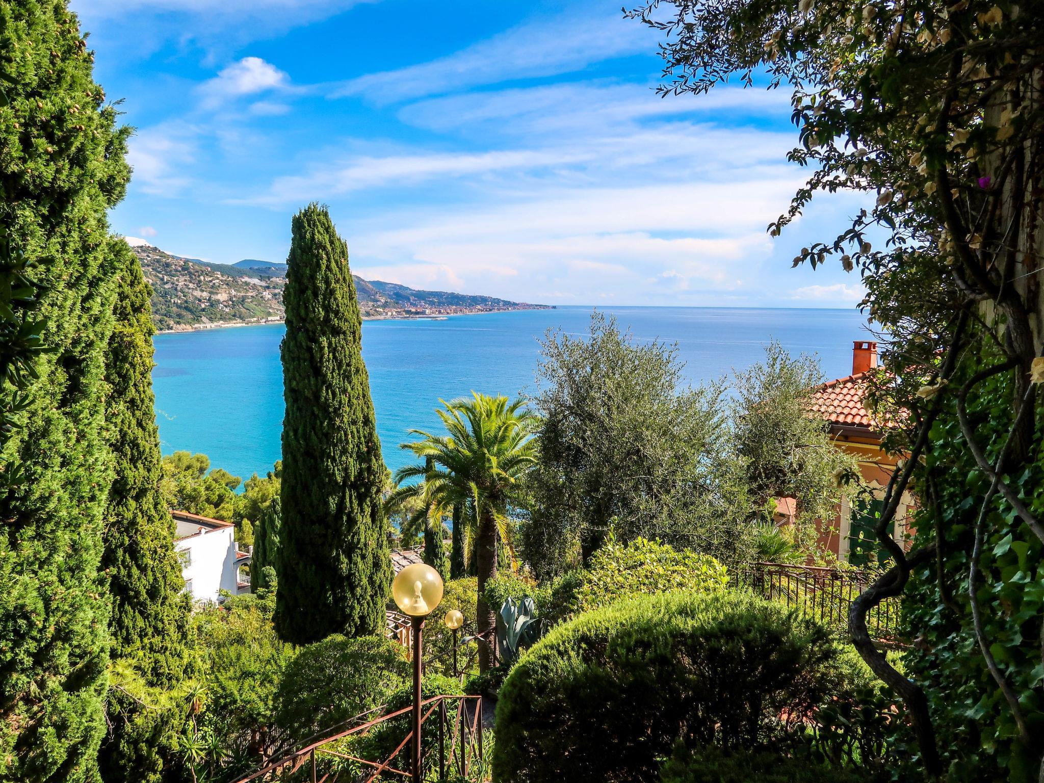 Schönes, rustikales Landhaus "Paradise View". 10 Wohnungen in der Residenz. 1.5 km vom Zentrum von Latte, 6 km vom Zentrum von Ventimiglia, 6 km vom Zentrum von Menton (Côte d'Azur), erhöhte Lage am Hang, 800 m vom Meer, Richtung Südosten. Zur Mitbenutzung: grosser Garten 4'000 m2 (eingezäunt) mit Pflanzen und Bäumen. In der Anlage: Waschmaschine (zur Mitbenutzung). Treppenweg (8 Stufen) bis zum Haus. Parkplatz (beschränkte Anzahl) auf dem Grundstück. Supermarkt 1.5 km, Restaurant 2 km, Bar 2 km, Bushaltestelle "Mortola Inferiore" 300 m, Bahnstation "Ventimiglia" 6 km, Kieselstrand 800 m (klein). Golfplatz (18 Loch) 25 km. Nahe gelegene Sehenswürdigkeiten: Giardini Botanici Hanbury 300 m, Balzi Rossi 3 km.