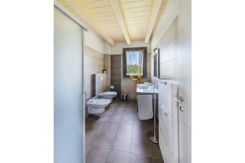 In einer Residenz mit Pool, nur wenige Schritte von der Stadt Lazise entfernt, Wohnung mit 2 Schlafzimmern im ersten Stock für einen Familien- oder Gruppenurlaub bis zu 5 Personen! Die Wohnung, die mit Wi-Fi-Internetverbindung ausgestattet ist, empfängt die Gäste mit dem Wohnzimmer mit Esstisch und Stühlen, Sofa, Flachbildfernseher, Küche mit Induktionsherd, Kühlschrank, Gefrierfach, Geschirrspüler, Mikrowelle, Backofen, Wasserkocher, Zitruspresse, Kaffeemaschine und Toaster. Vom Wohnzimmer aus geht man auf die private überdachte Terrasse mit Esstisch und Stühlen und einen schönen Blick auf den Pool und den See. Die Wohnung, die in allen Zimmern mit Klimaanlage ausgestattet ist, setzt sich fort mit dem Schlafzimmer mit komfortablem Doppelbett, TV, Kleiderschrank und Zugang zum privaten Balkon auf der Rückseite. Auf dem Stock befindet sich ein Badezimmer mit Dusche, Waschbecken, Bidet und WC. Die Wohnung setzt sich im Dachgeschoss fort, das mit zwei Einzelbetten, einer Schlafcouch, einem Tisch mit Stühlen und einem zweiten Badezimmer mit Dusche, Waschbecken, Bidet und WC ausgestattet ist; vom Dachgeschoss aus geht man auf die schöne Sonnenterrasse mit herrlichem Panoramablick auf den See. Den Gästen stehen Waschmaschine, Bügeleisen und Bügelbrett zur Verfügung. Die Gäste können ihr Auto in der Privatgarage der Wohnanlage parken. Die Wohnung genießt das schöne Schwimmbad der Residenz von 10x15 Metern mit Sonnenliegen ausgestattet und ist von 01. Mai bis 30. September geöffnet. Badekappe ist erforderlich. Gegen einen kleinen Aufpreis besteht die Möglichkeit, ein Kinderbett und ein Hochstuhl zur Verfügung zu stellen. Haustiere sind nicht erlaubt. Die Wohnung ist vom nahe gelegenen Flughafen Verona Villafranca, der nur 15 Autominuten entfernt ist, leicht zu erreichen.