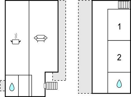 Schlafzimmer (nr. 2) - 1 Schlafmöglichkeit. (Einzelbett(en)). 2 Schlafmöglichkeiten. (Doppelbett(en)).