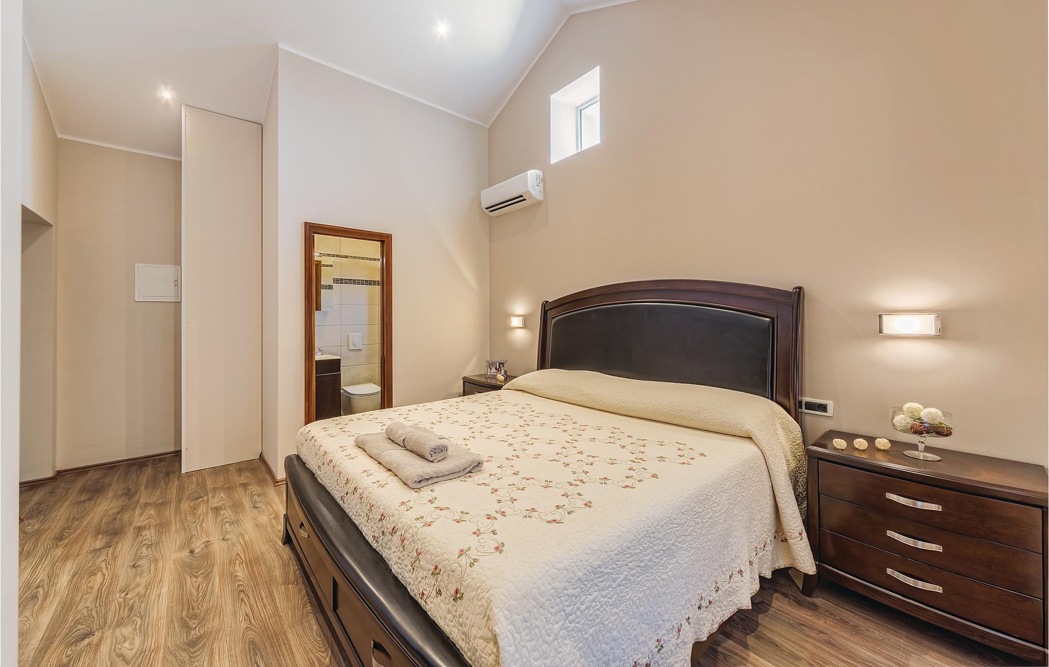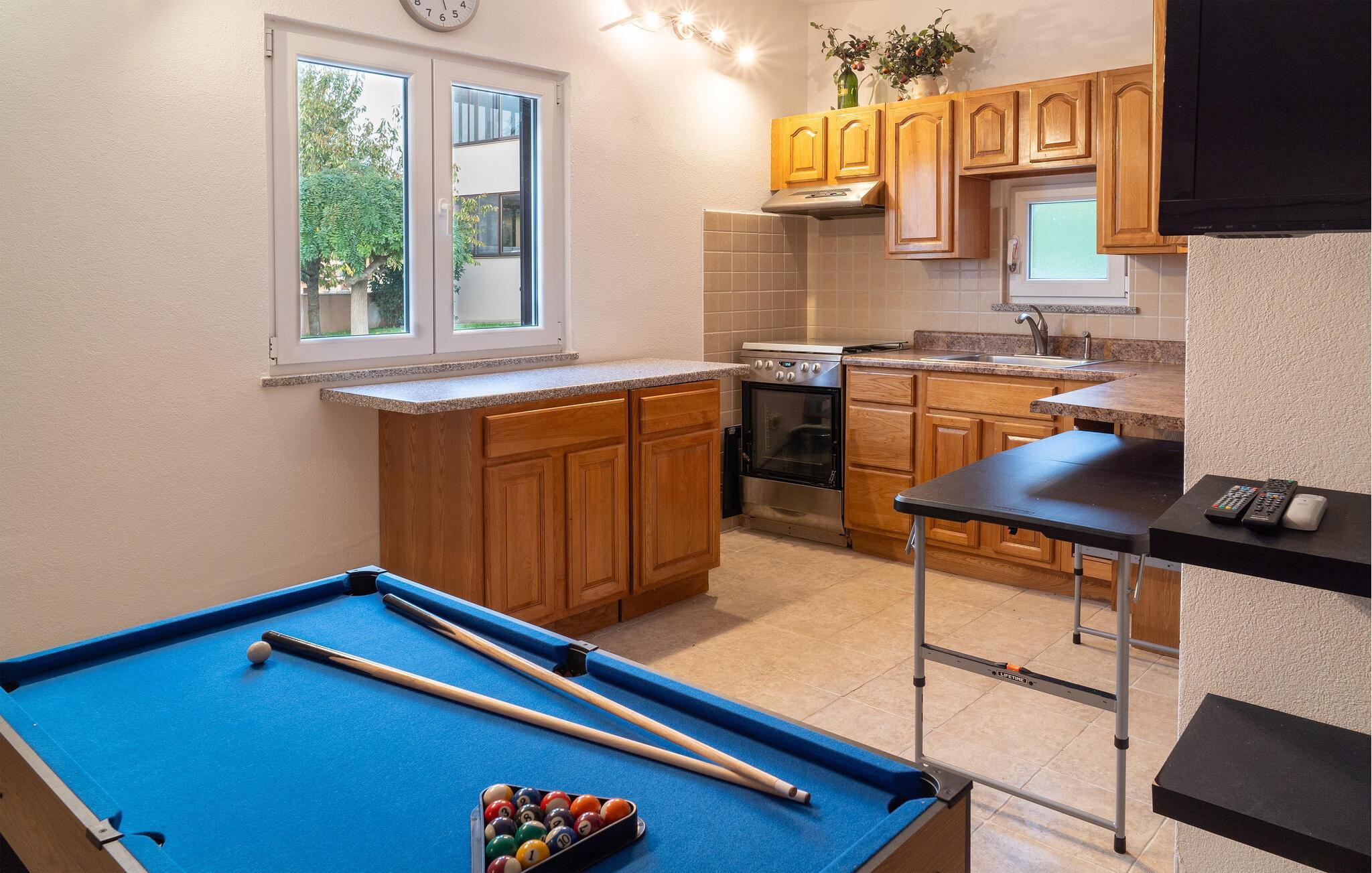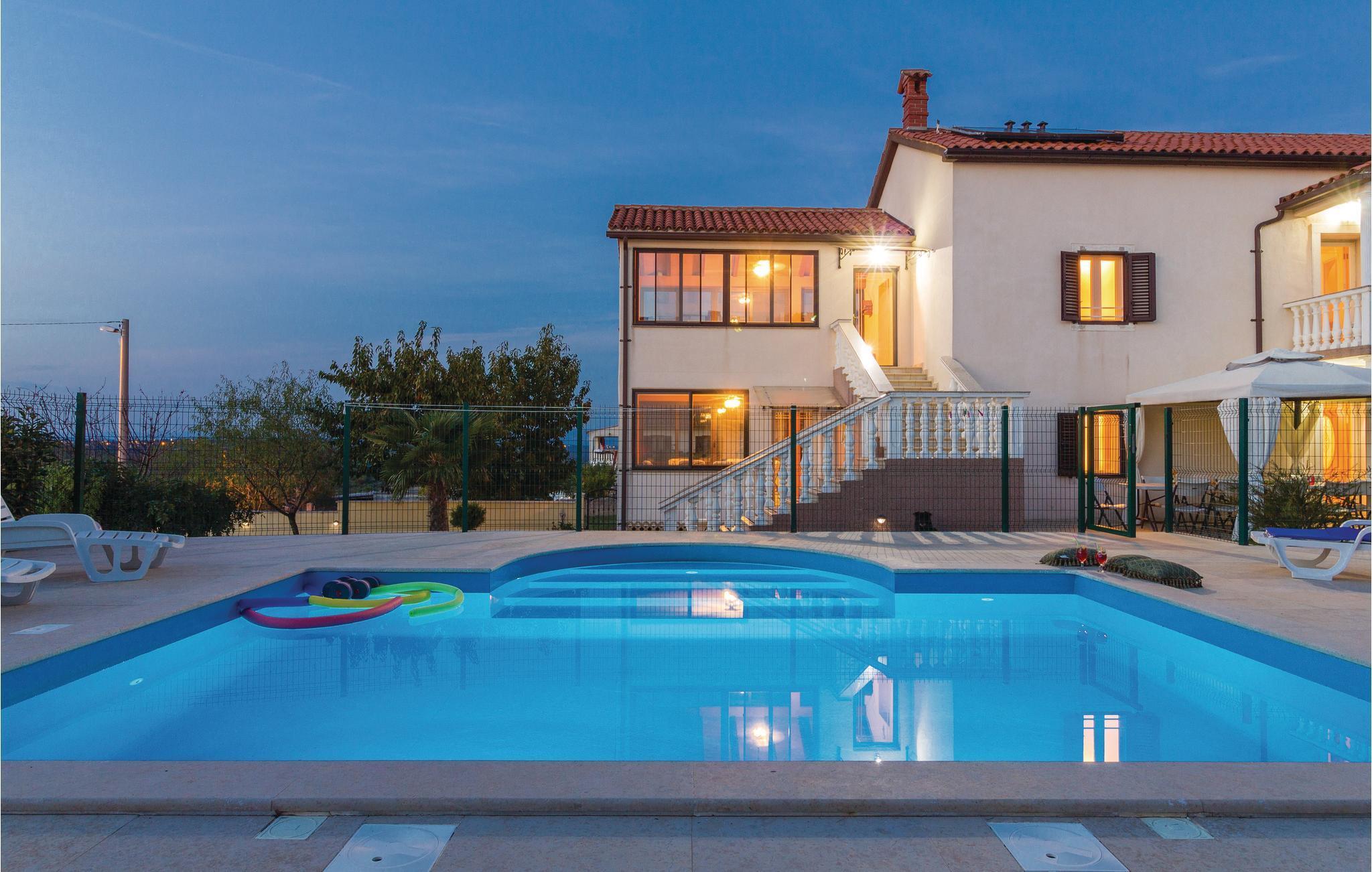 Im kleinen Ort Hrboki steht dieses Haus mit zwei hellen Wohneinheiten, die durch eine Außentreppe miteinander verbunden sind. Die Einrichtung ist stilvoll und komfortabel. Das Haus ist ideal für zwei Familien oder Gruppen von Freunden die zusammen Urlaub machen und dennoch ihre Privatsphäre haben möchten. Weit ab von der Hektik der Stadt können Sie hier richtig entspannen und verschiedene Sportarten wie zum Beispiel Boccia, Fußball, Wandern und Rad fahren betreiben. An heißen Sommertagen bietet der Swimmingpool mit Sonnenliegen willkommene Abkühlung.