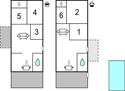 Badezimmer (nr. 3) - WC. Warmes und kaltes Wasser. Dusche