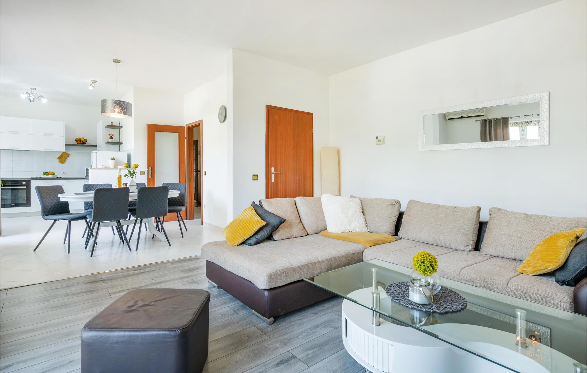 Dieses schöne Ferienhaus liegt in einem kleinen Dorf in der Nähe von Barban. Die zwei Wohneinheiten sind komplett ausgestattet sind und erfüllen alle Bedürfnisse für einen angenehmen Aufenthalt. Verbringen Sie Ihre Freizeit auf der Terrasse bei der Zubereitung leckerer Grillspezialitäten oder erfrischen Sie sich an heißen Sommertagen im Pool. Der Garten ist umzäunt und mit viel Grün bepflanzt. Es ist ideal für ein unbeschwertes Spielen Ihrer Kinder geeignet. Besuchen Sie den Adrenalin Park, der sich im nahegelegenen Ort Glavani befindet oder schauen Sie sich die Ranch Barba Tone in Ort Manjadvorci an. Abends können Sie im mittelalterlichen Städtchen Svetvincenat spazieren gehen, es ist für seine schöne Burg Grimani berühmt. Besichtigen Sie auch die sehenswerte Stadt Pula mit ihrem Amphitheater und besuchen Sie die zahlreichen Partys und Events, die während der Sommermonate stattfinden.