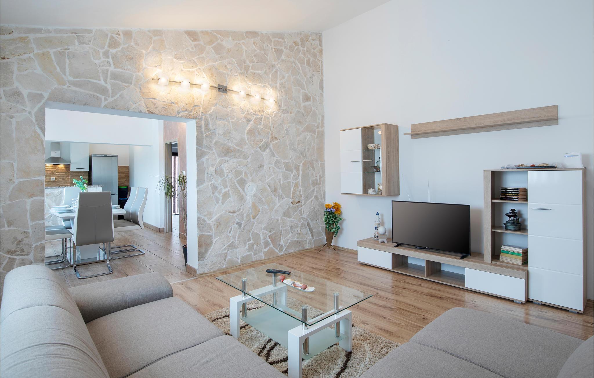 Auf einem gemeinschaftlich genutzten Grundstück in Skitaca, in der Nähe von Barban, wohnen Sie in einem praktischen Apartment mit klassischer Einrichtung. Das geschmackvoll und modern eingerichtete Interieur sichert Ihnen einen schönen Start in Ihre Urlaubszeit. Das schöne Naturgrundstück ist besonders für ein unbeschwertes Herumtoben der Kinder geeignet.